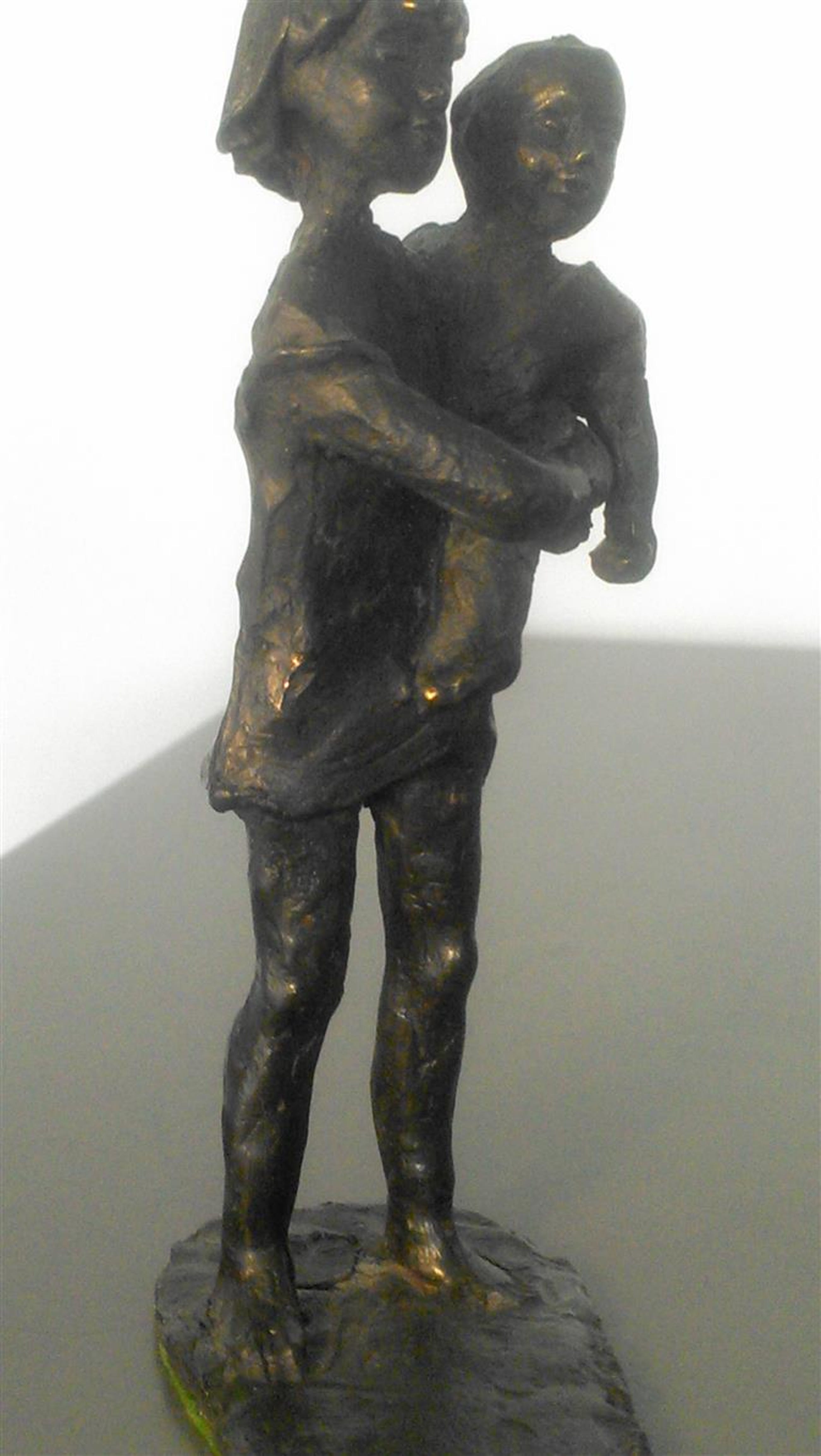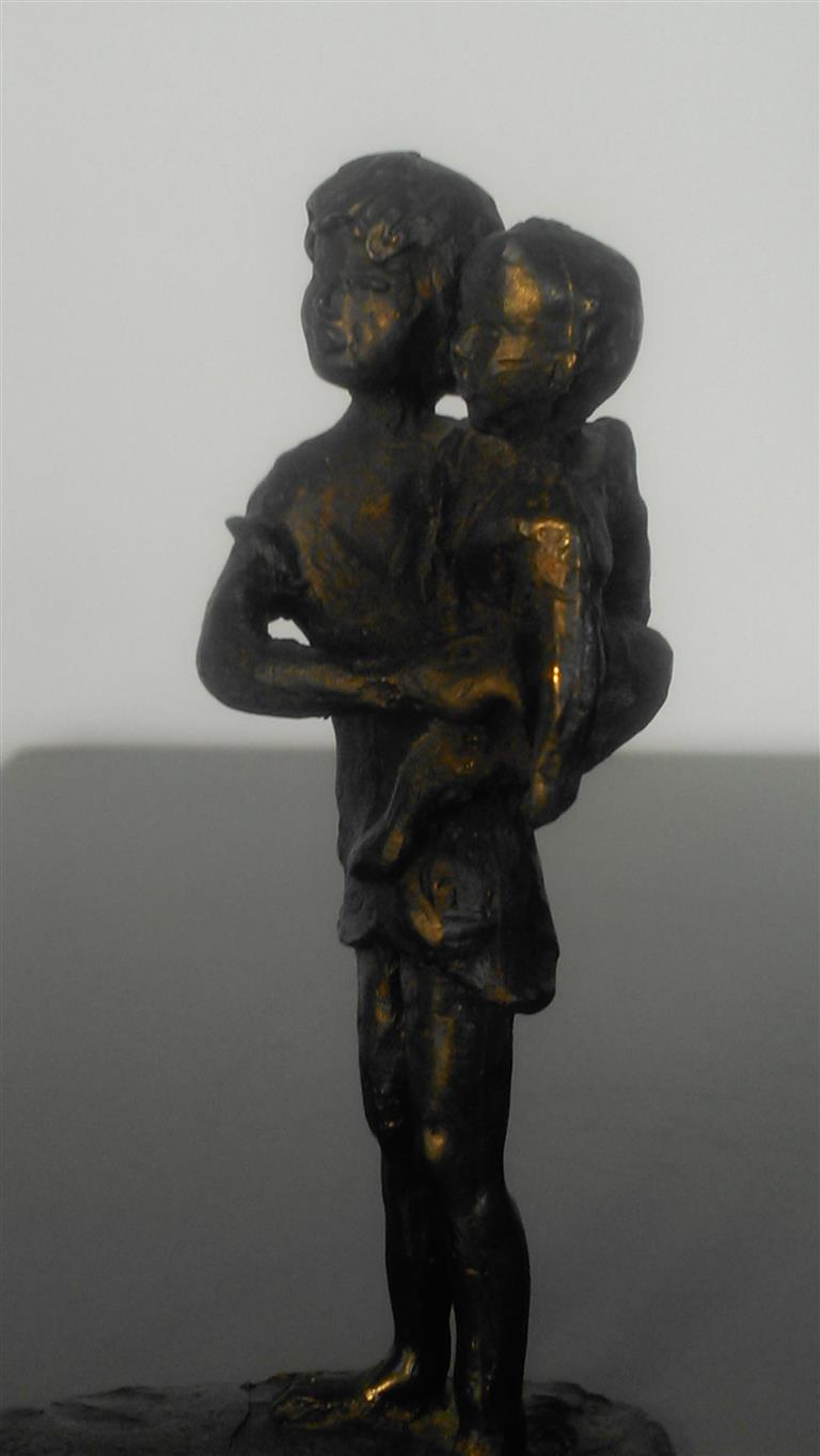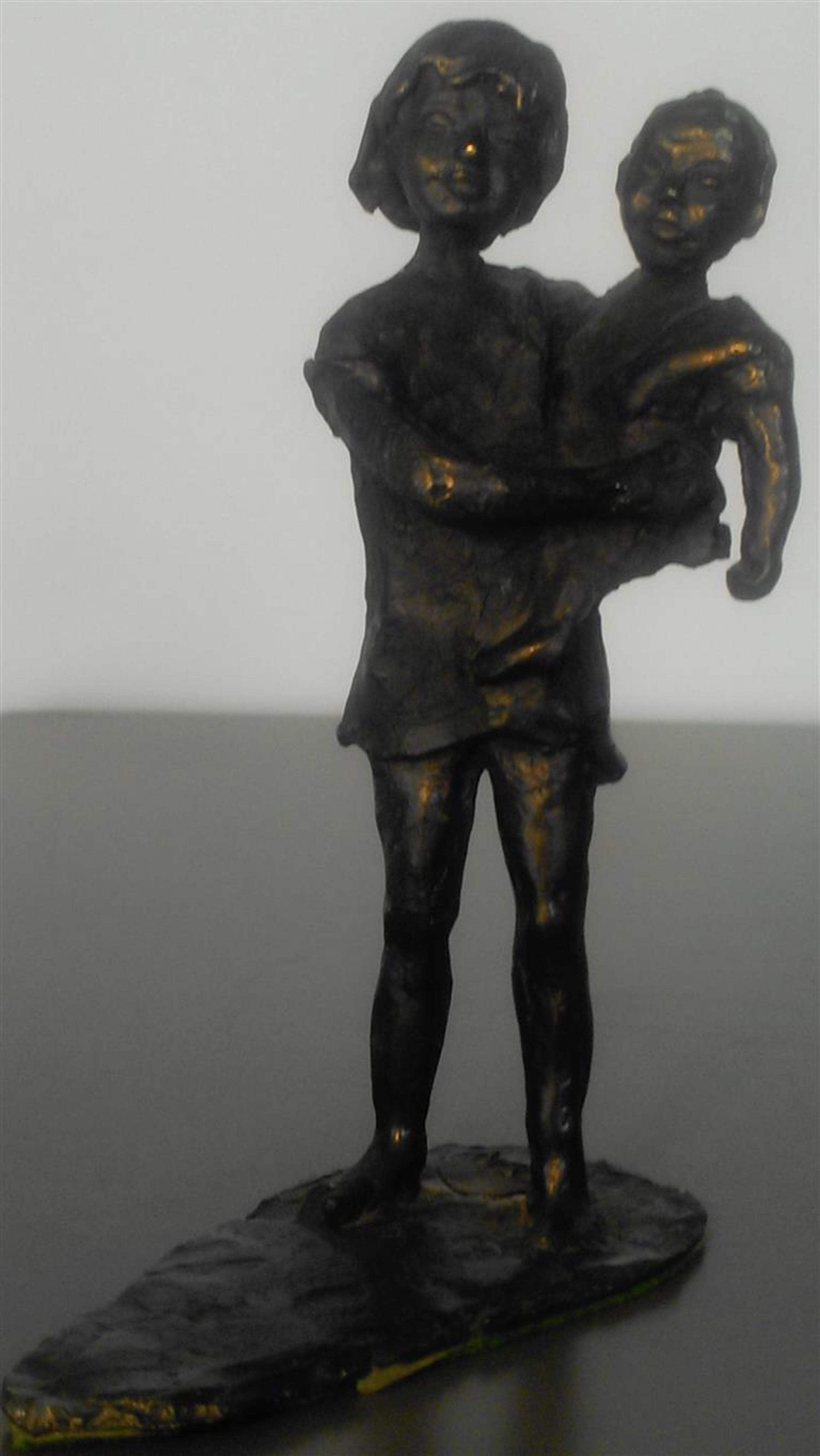 Meisje met jongere broertje op de arm op plateau gesigneerd CAN Corry Ammerlaan van Niekerk