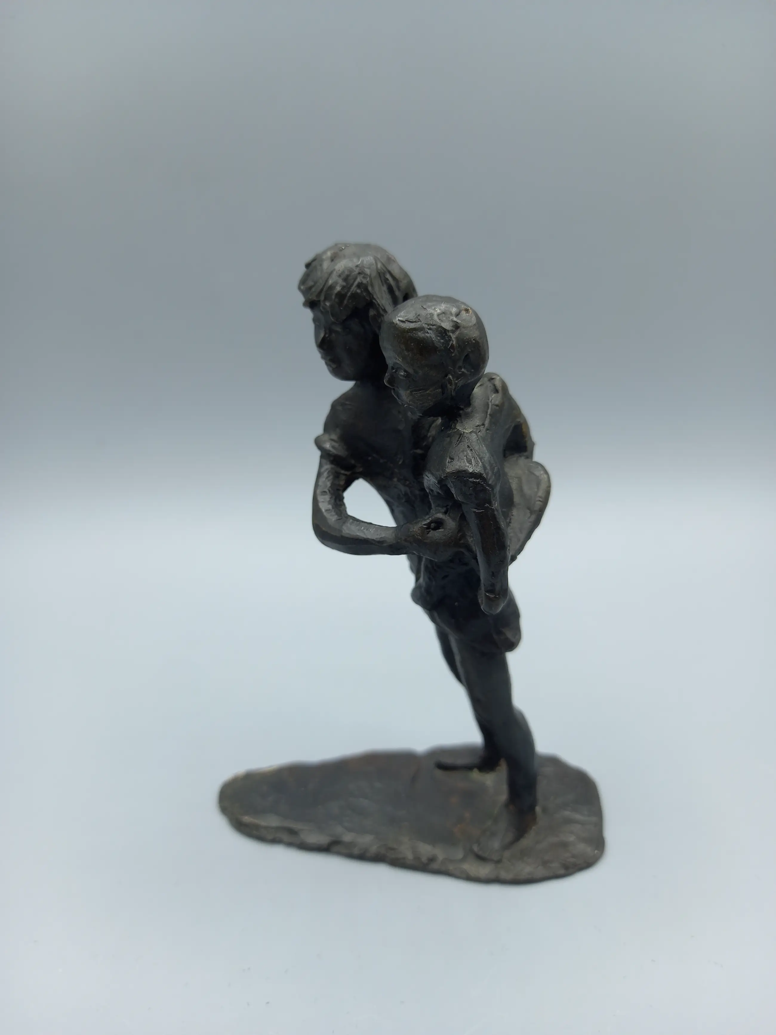 Mooi beeldje van kunstenares Corry Ammerlaan. "Meisje met kind" 12,5 x 4 x8 cm