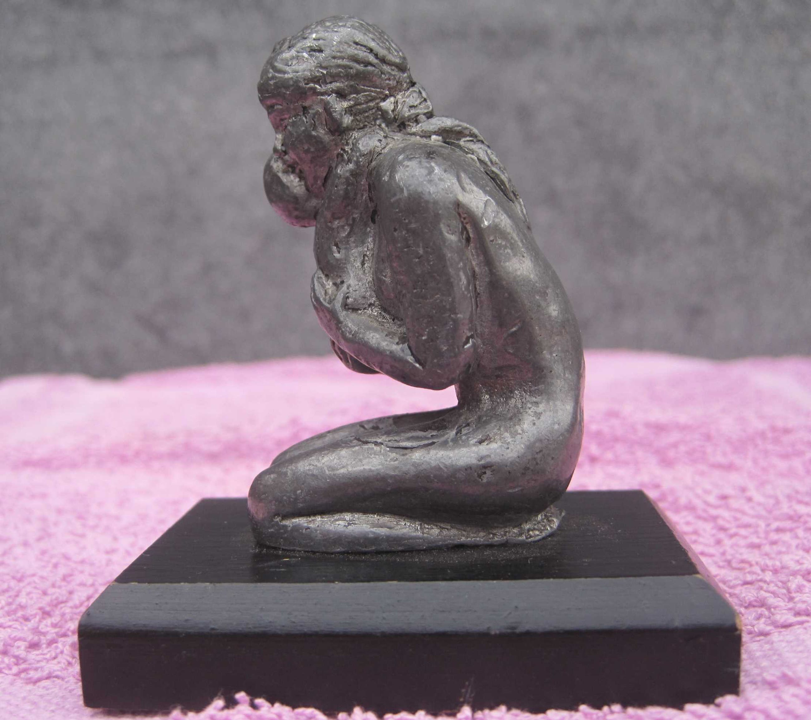 Symbolisch sculptuur van de bekende kunstenares Corry Ammerlaan in opdracht van de Stichting "moeders voor moeders" De afmetingen zijn zonder het houten sokkeltje.