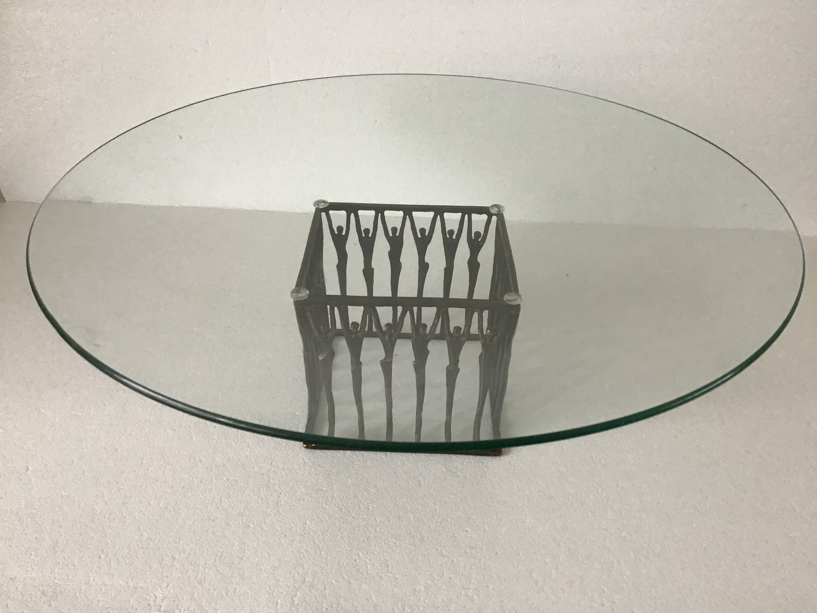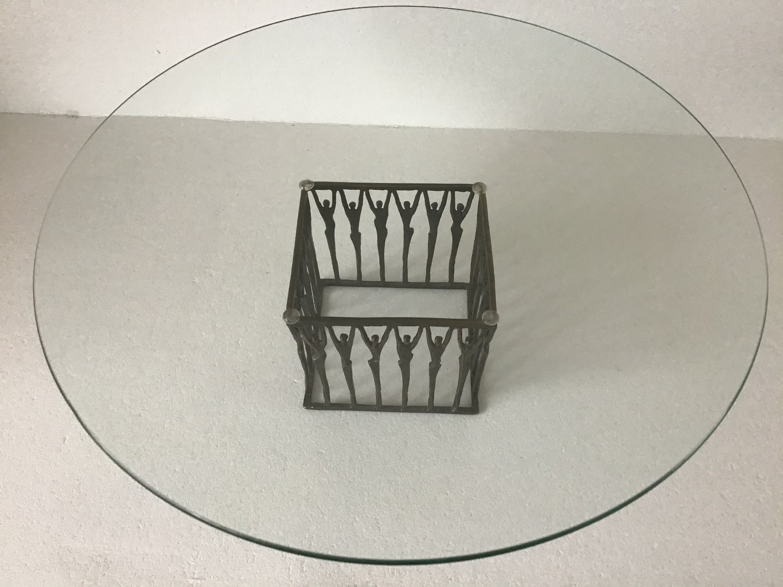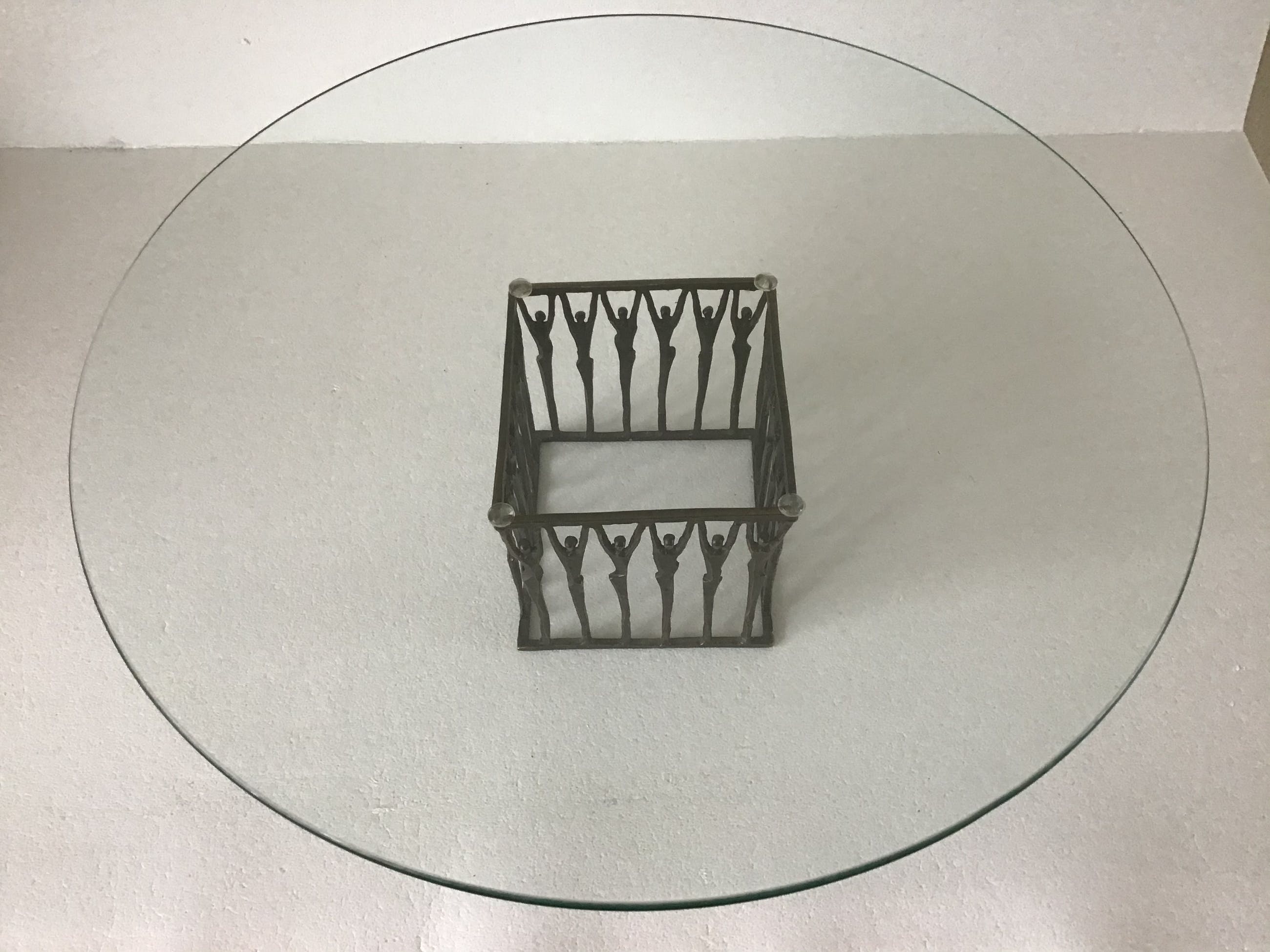 Mooie glazen schaal op een sculptuur van brons of verbronsd. Diameter schaal 41.5 cm.