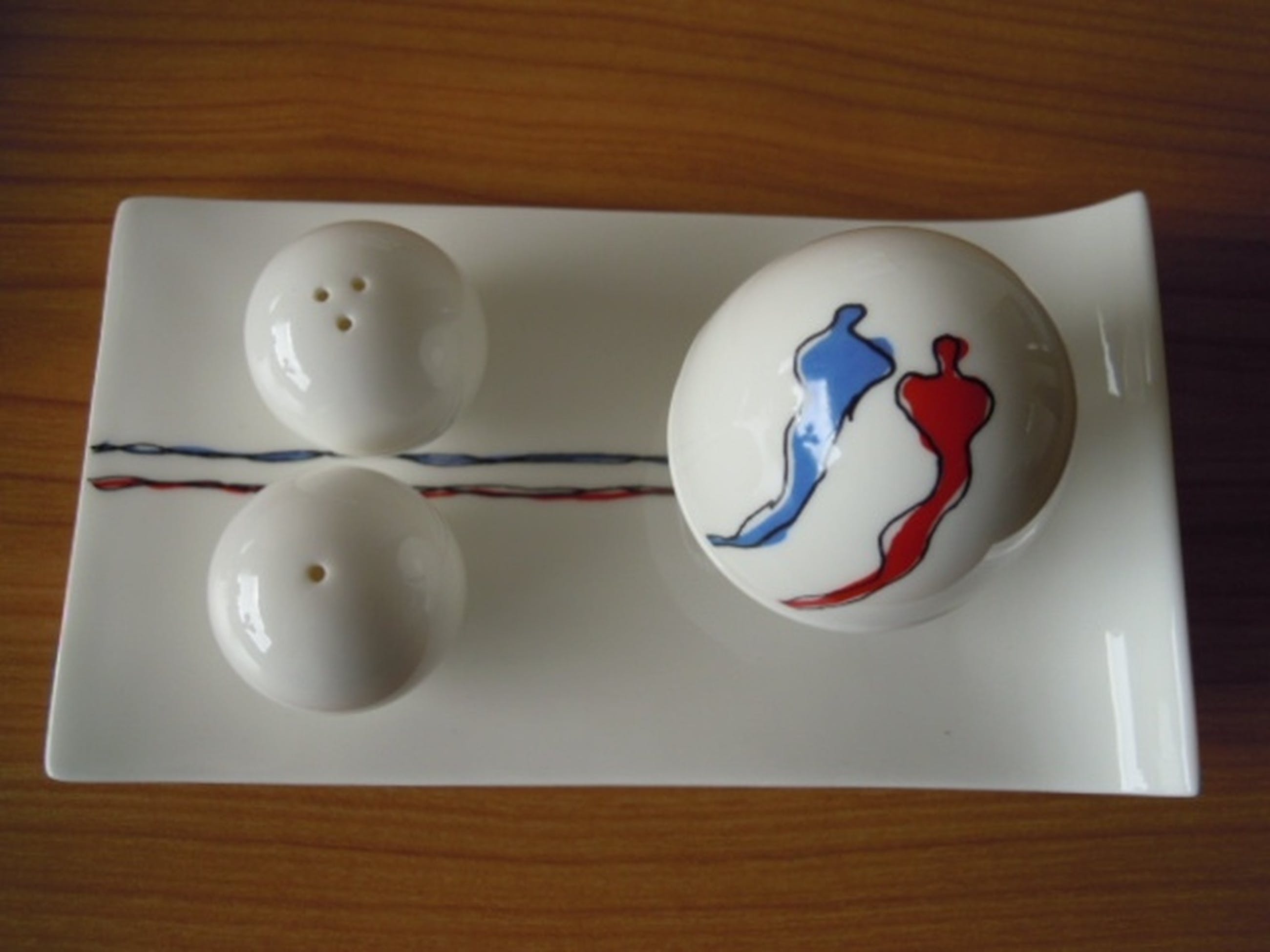CORRY AMMERLAAN ontbijtset - bord - eierdop - peper en zout set.