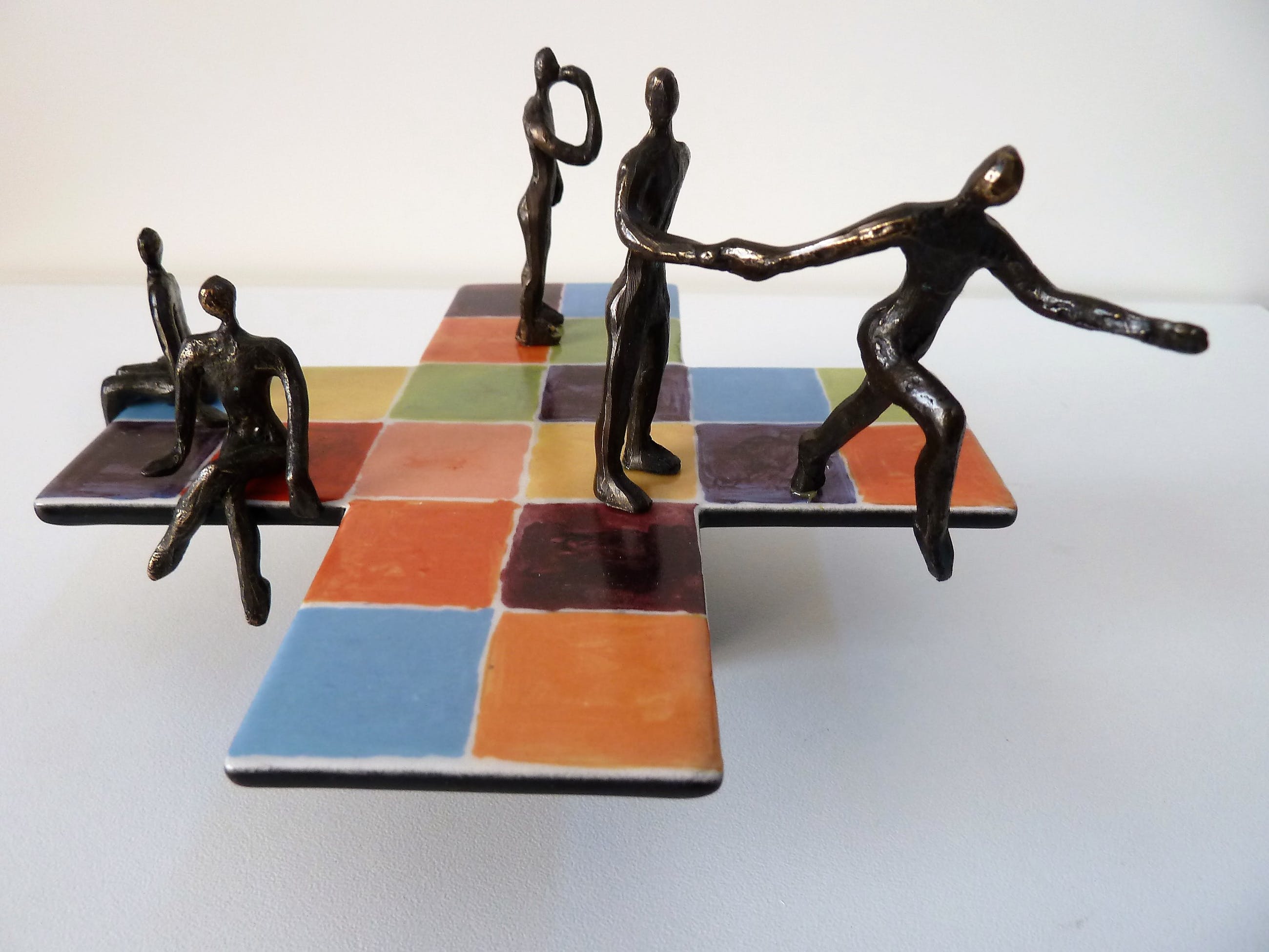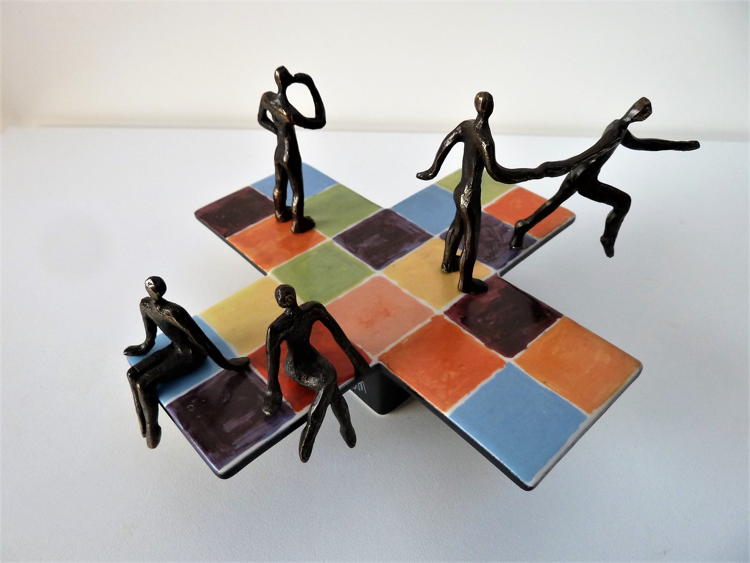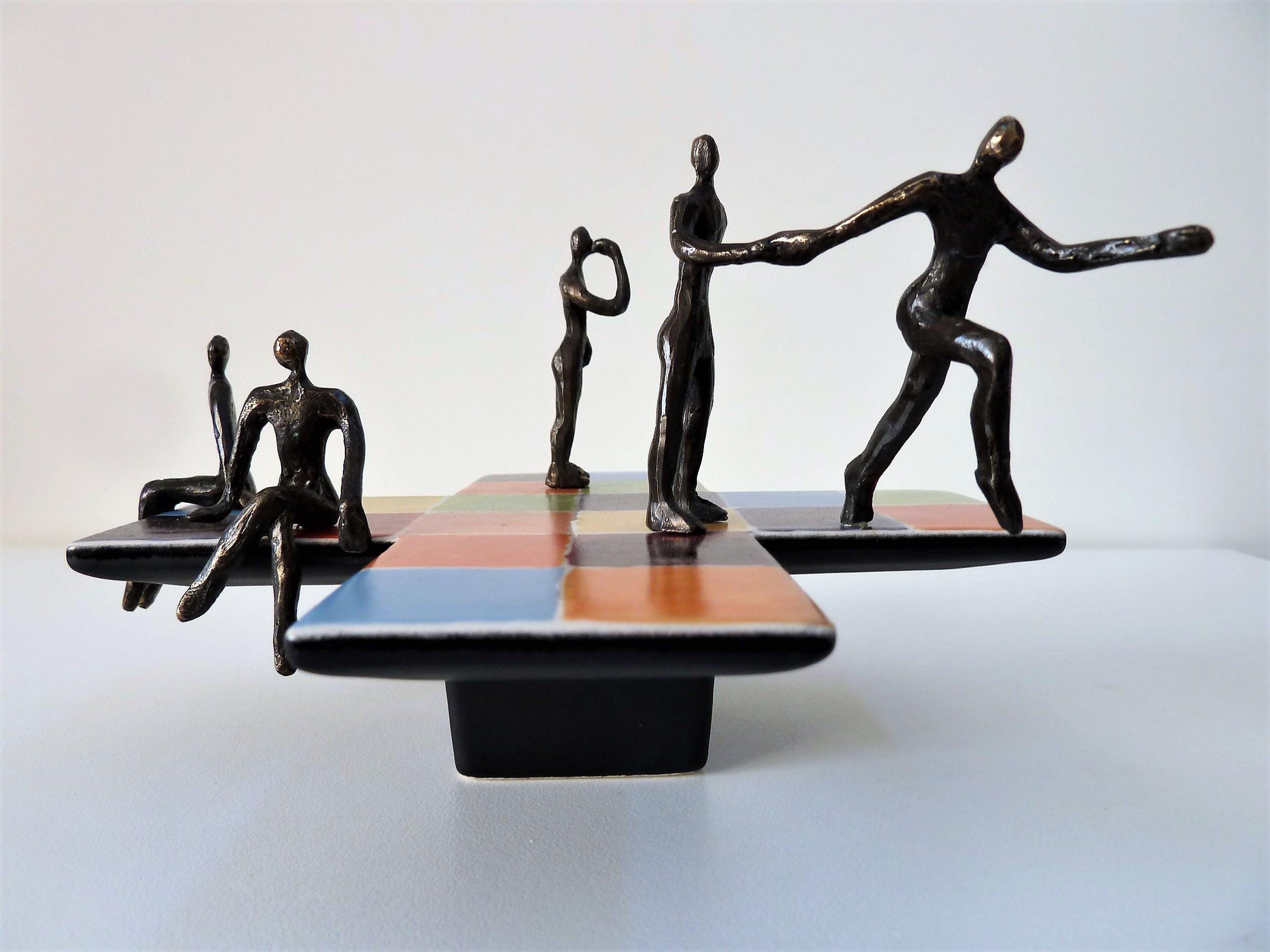 Schitterend sculptuur van keramiek + verbronsd. van Kunstenares Corry Ammerlaan van Nieuwkerk. Gesigneerd met CAN