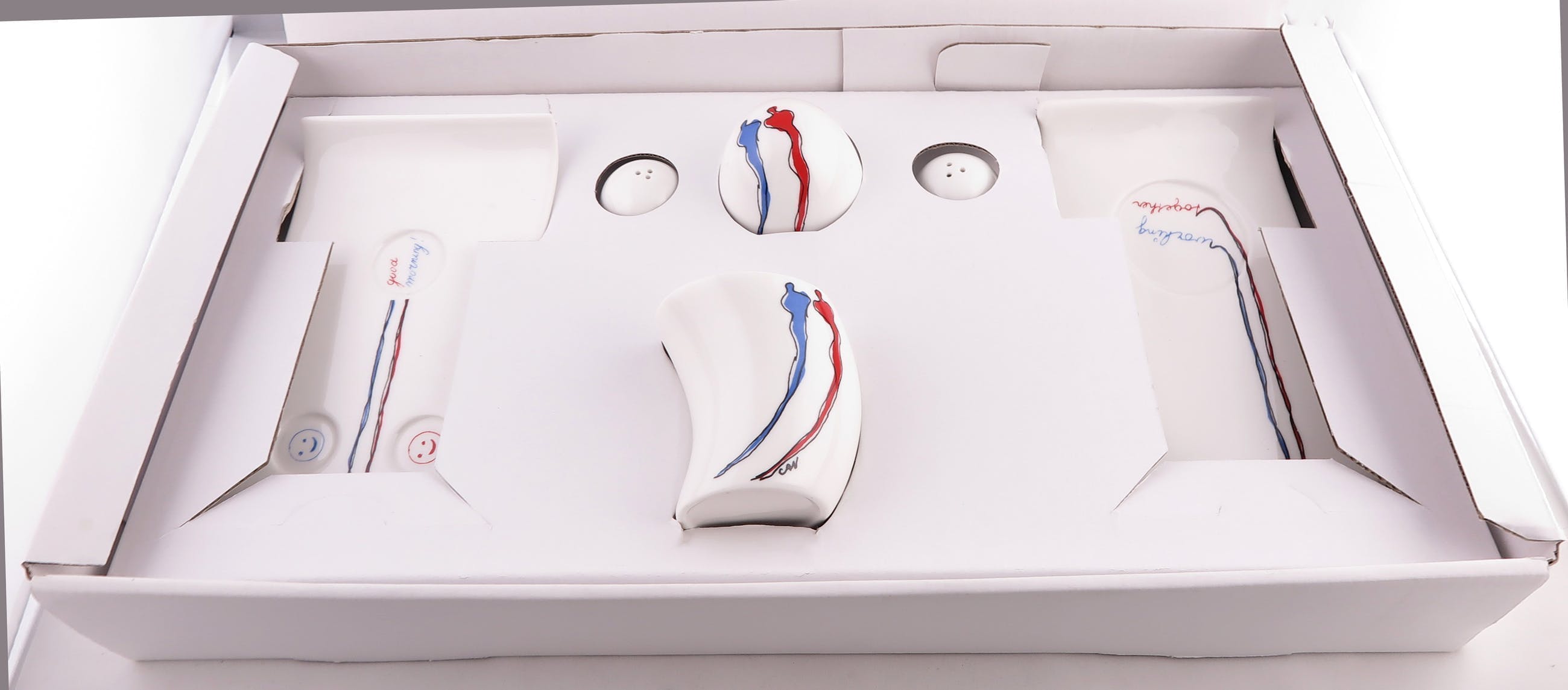 Dit lot bevat zeven keer het ontbijtset gemaakt door Corry Ammerlaan. Eén ontbijtset bevat: