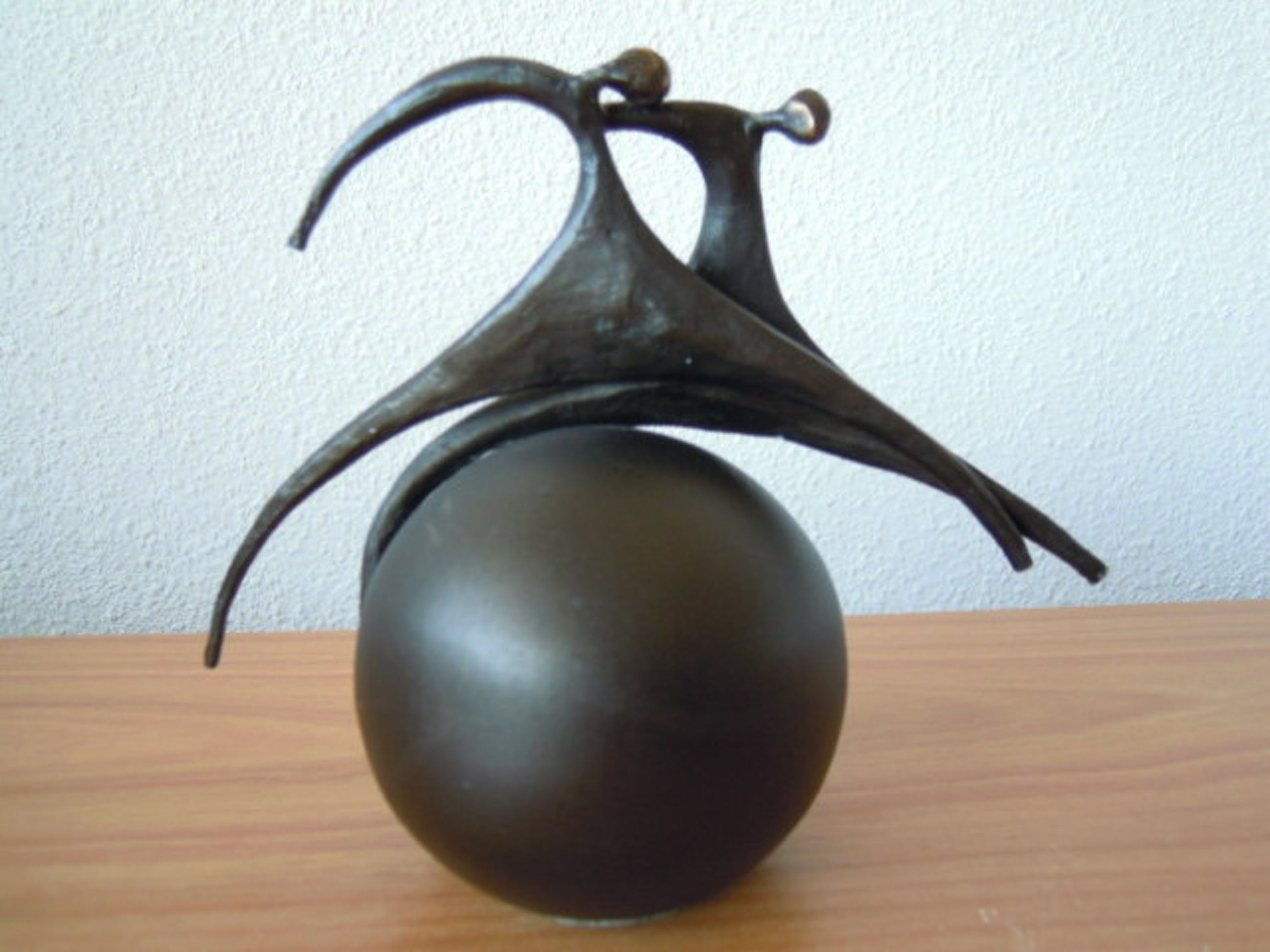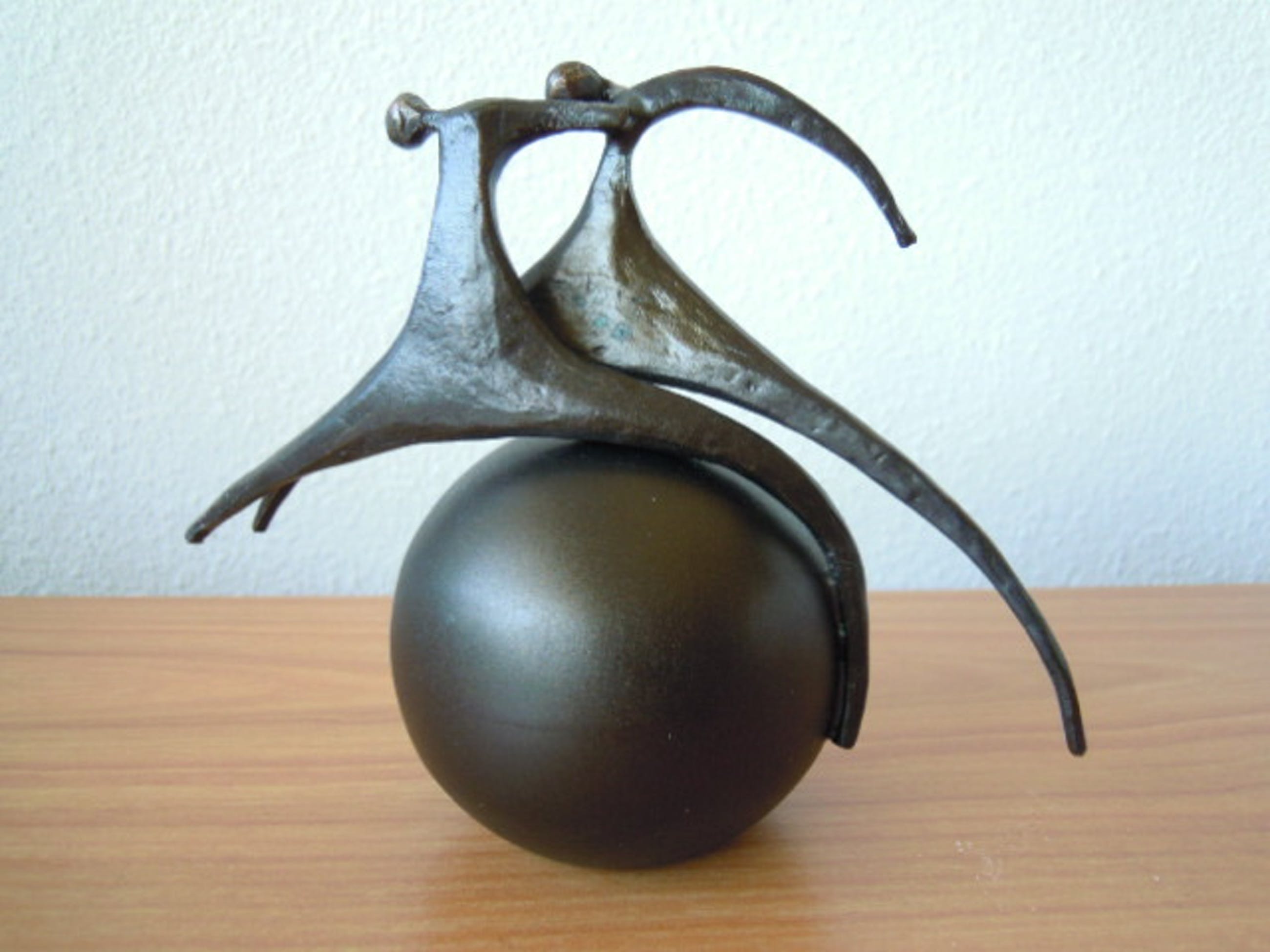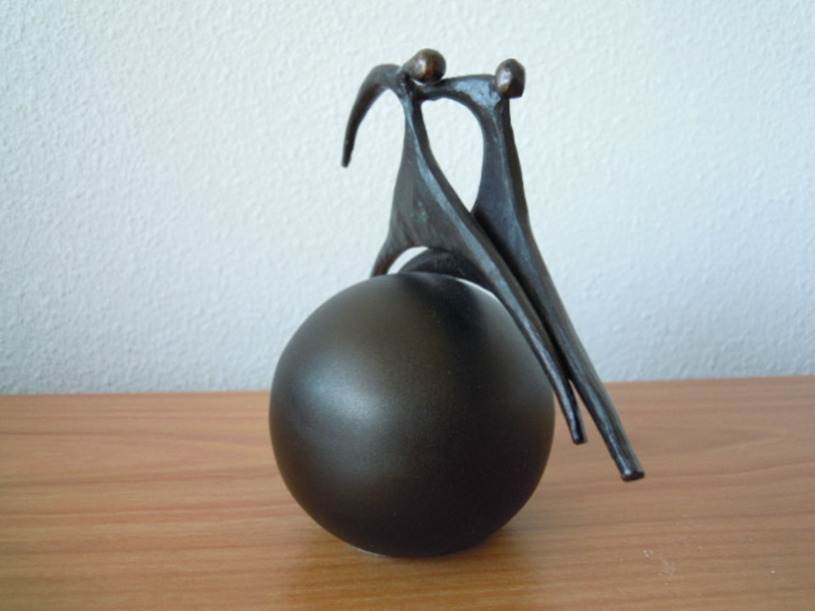 Corry Ammerlaan - Prachtig beeldje 2 mensen op [ wereld ] bol. - Verkocht