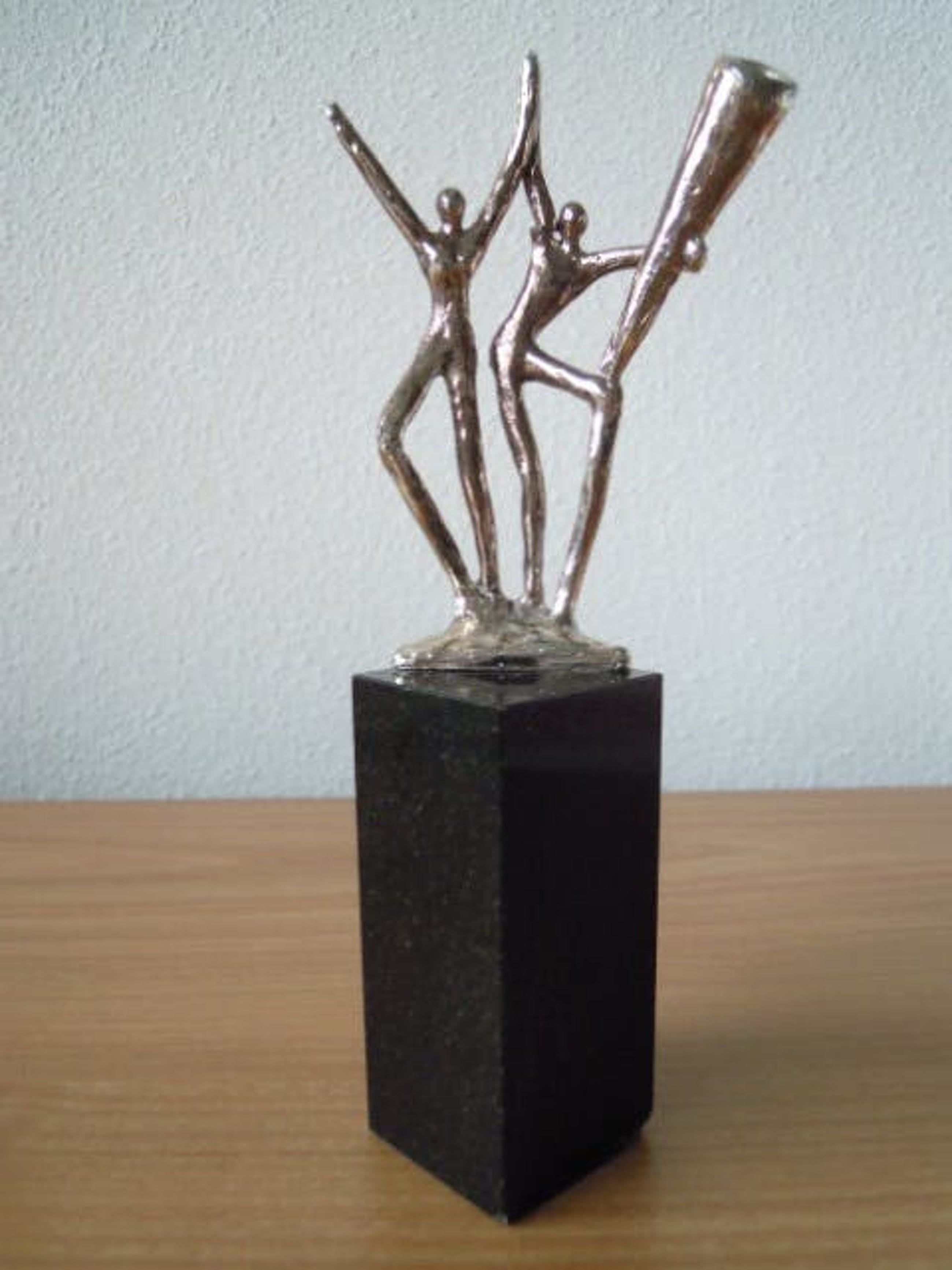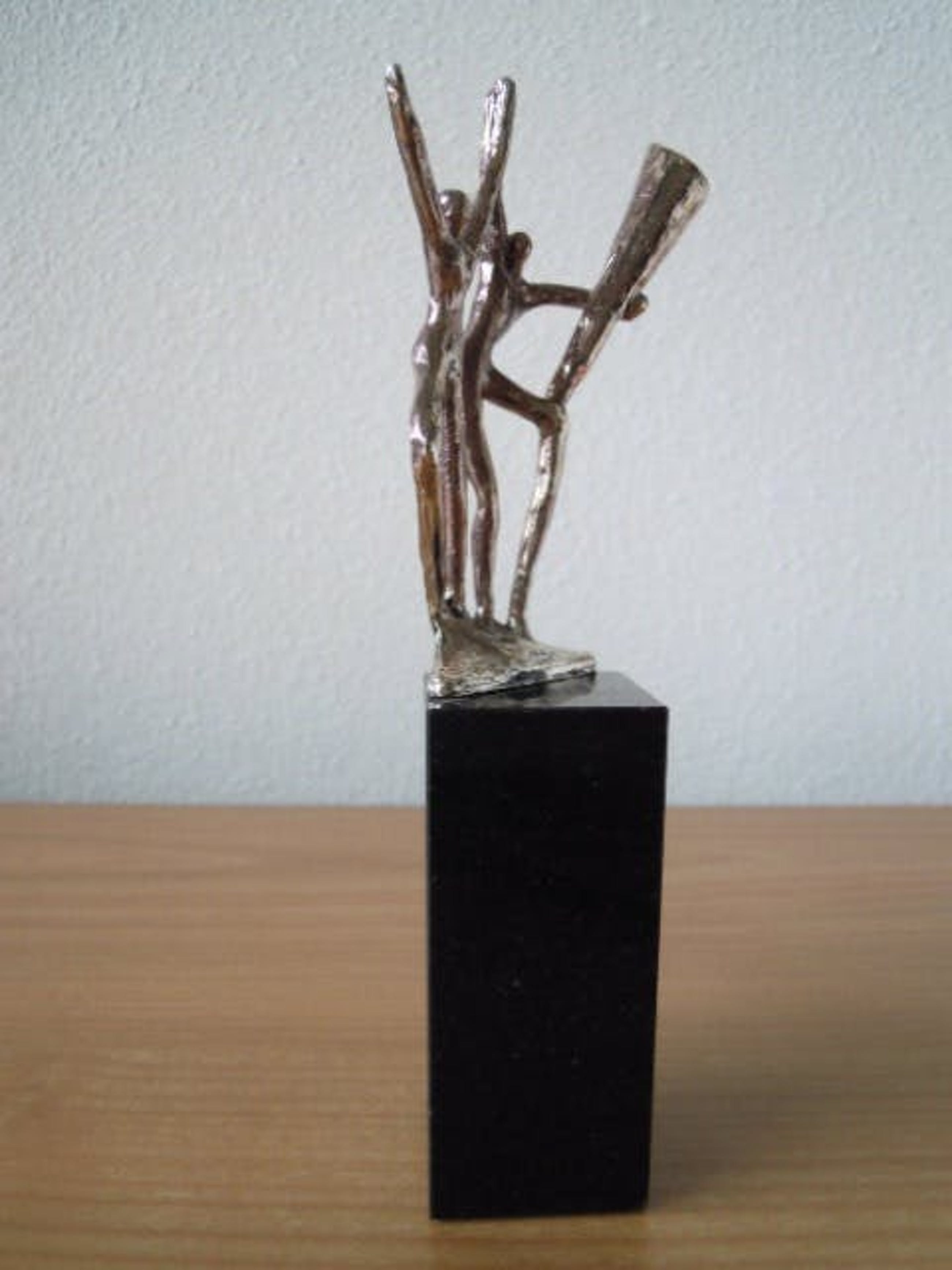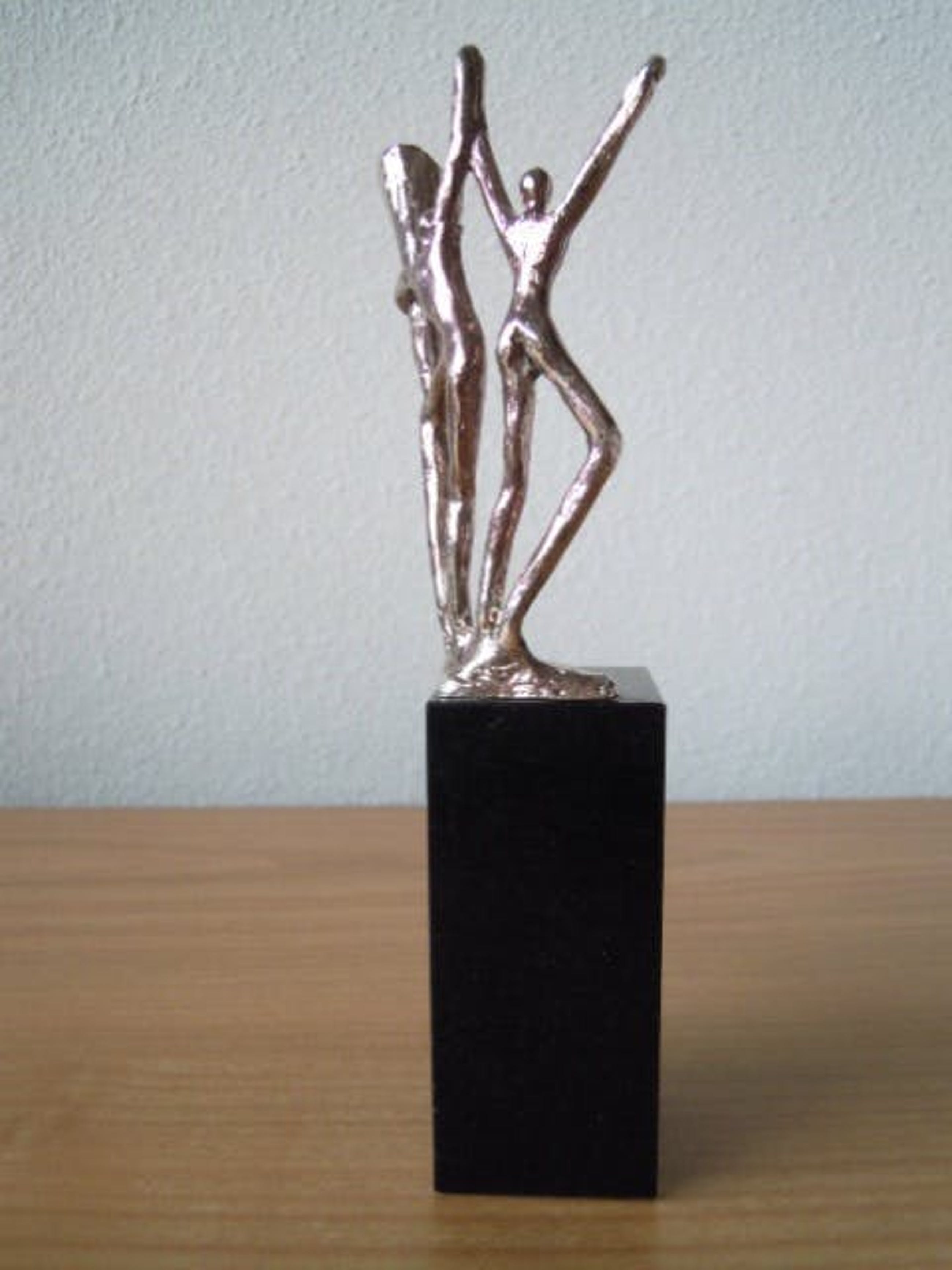 Het betreft een schitterend beeld op zwart marmeren sokkel waar een heel klein stukje vanaf is - heb er een foto van bij gezet - maar valt absoluut niet op. Het beeld is inclusief de sokkel 18 cm hoog.