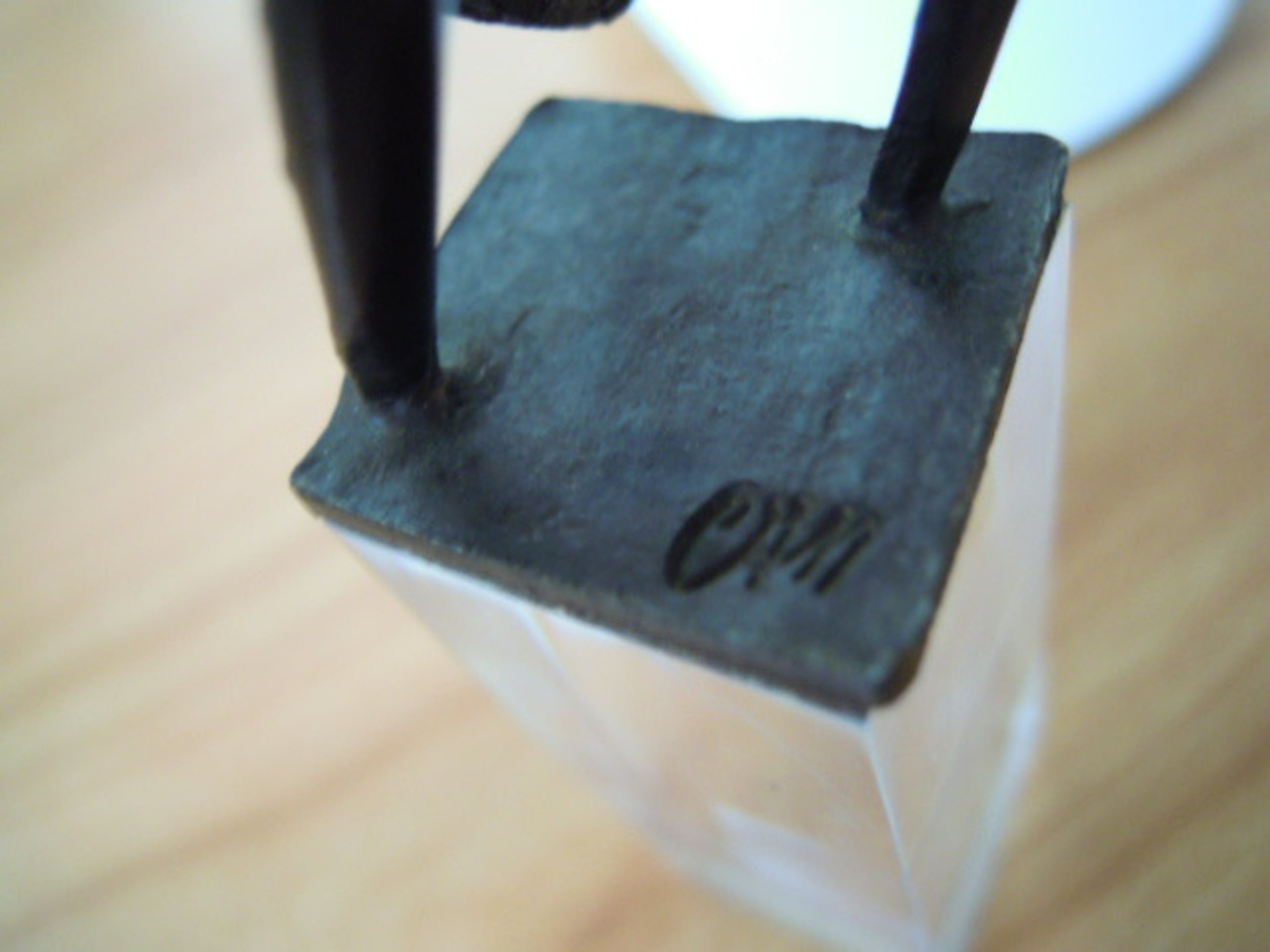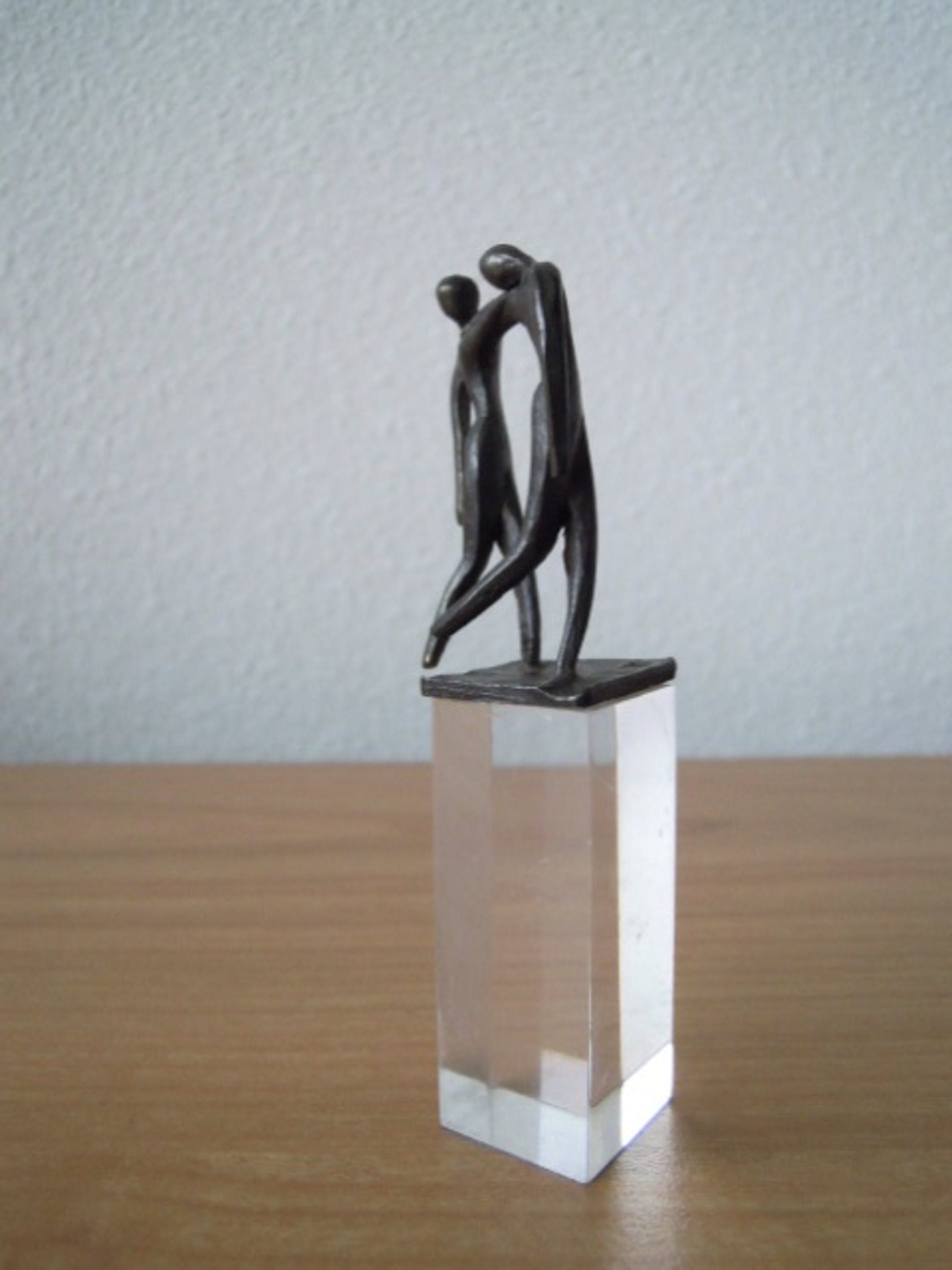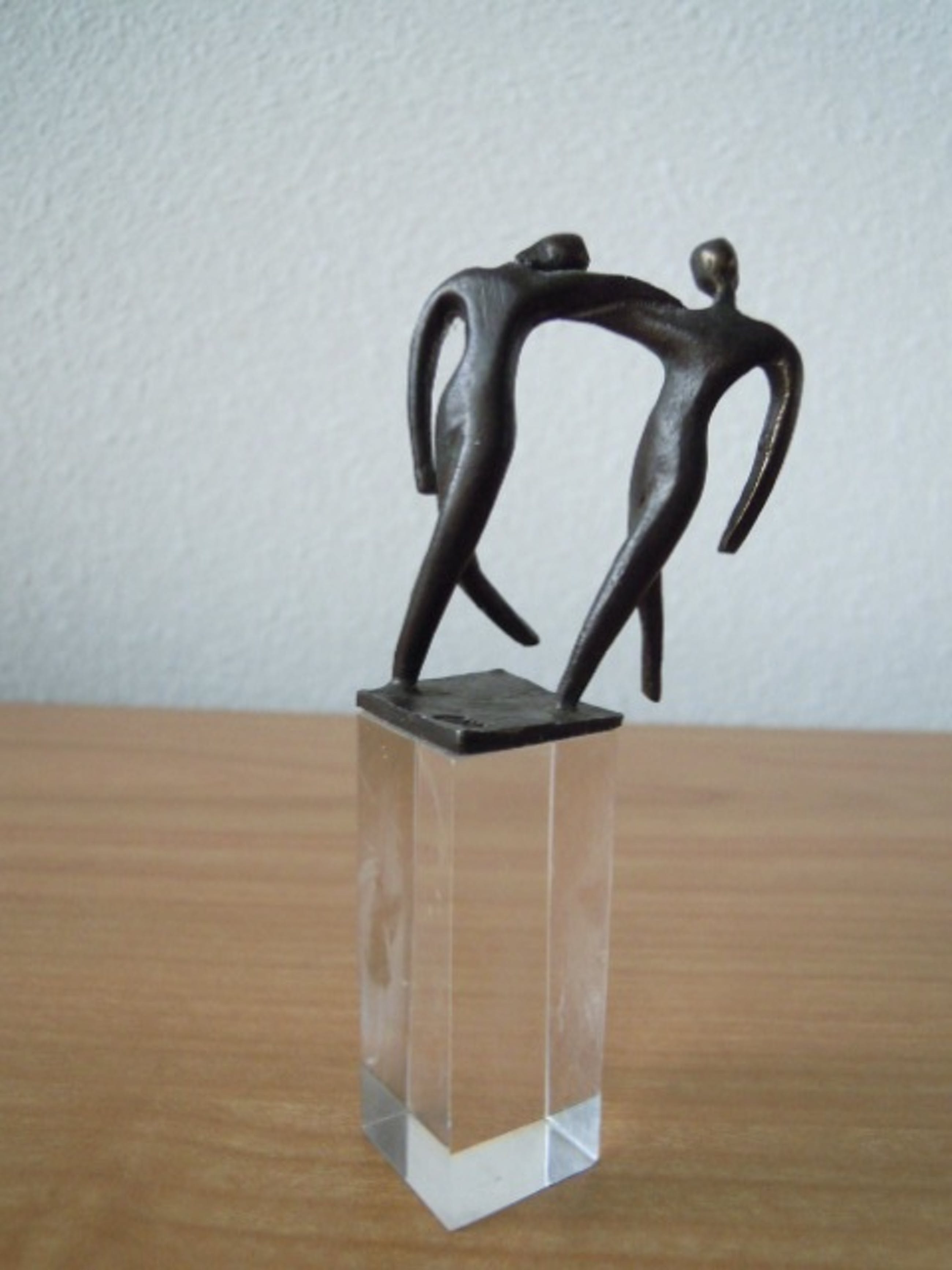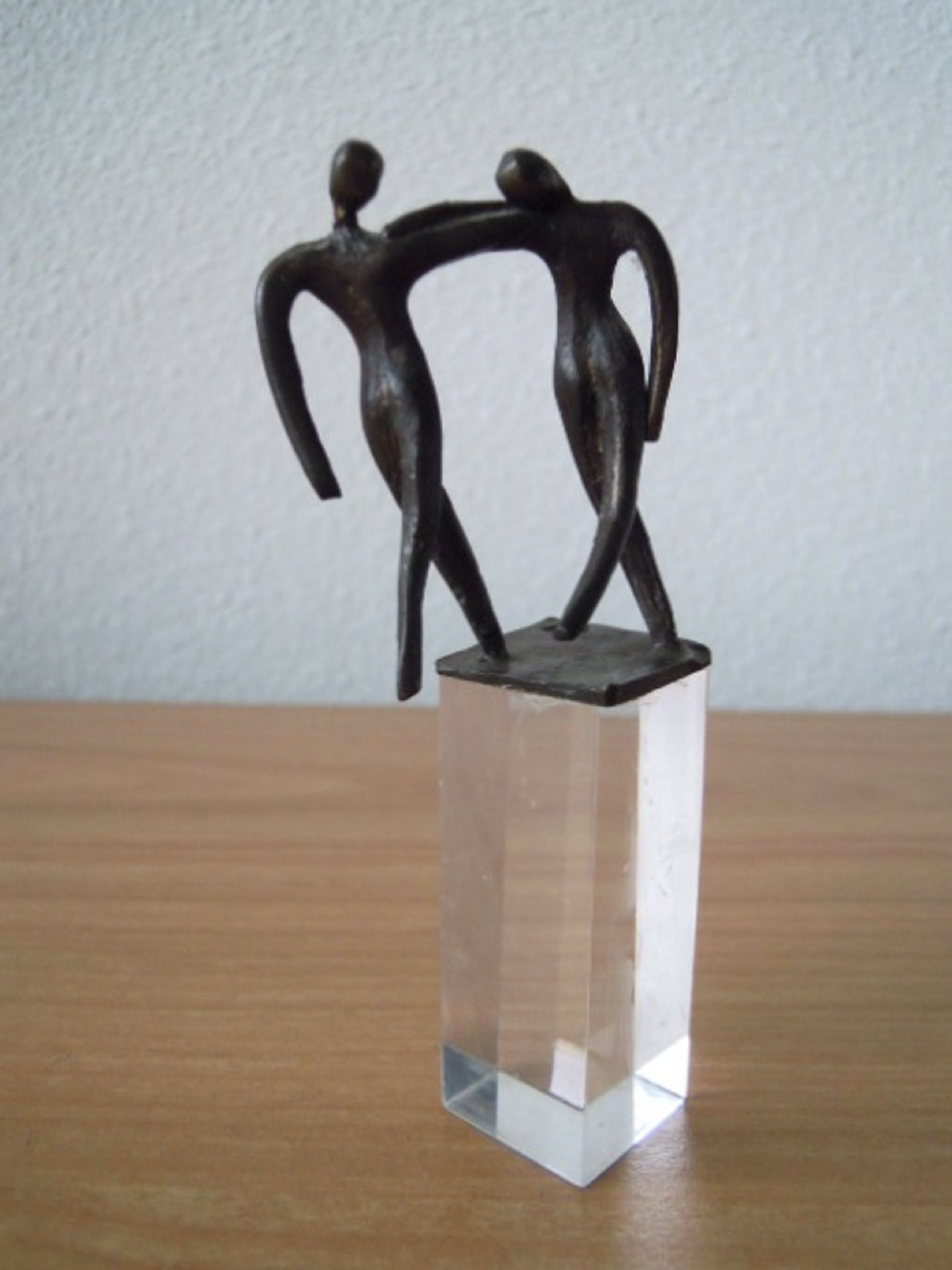 Zeer mooi beeldje op plexiglas voetje. Het geheel is 10 cm hoog. Verkeerd in uitstekende staat. Is gesigneerd op het voetje- zie foto.