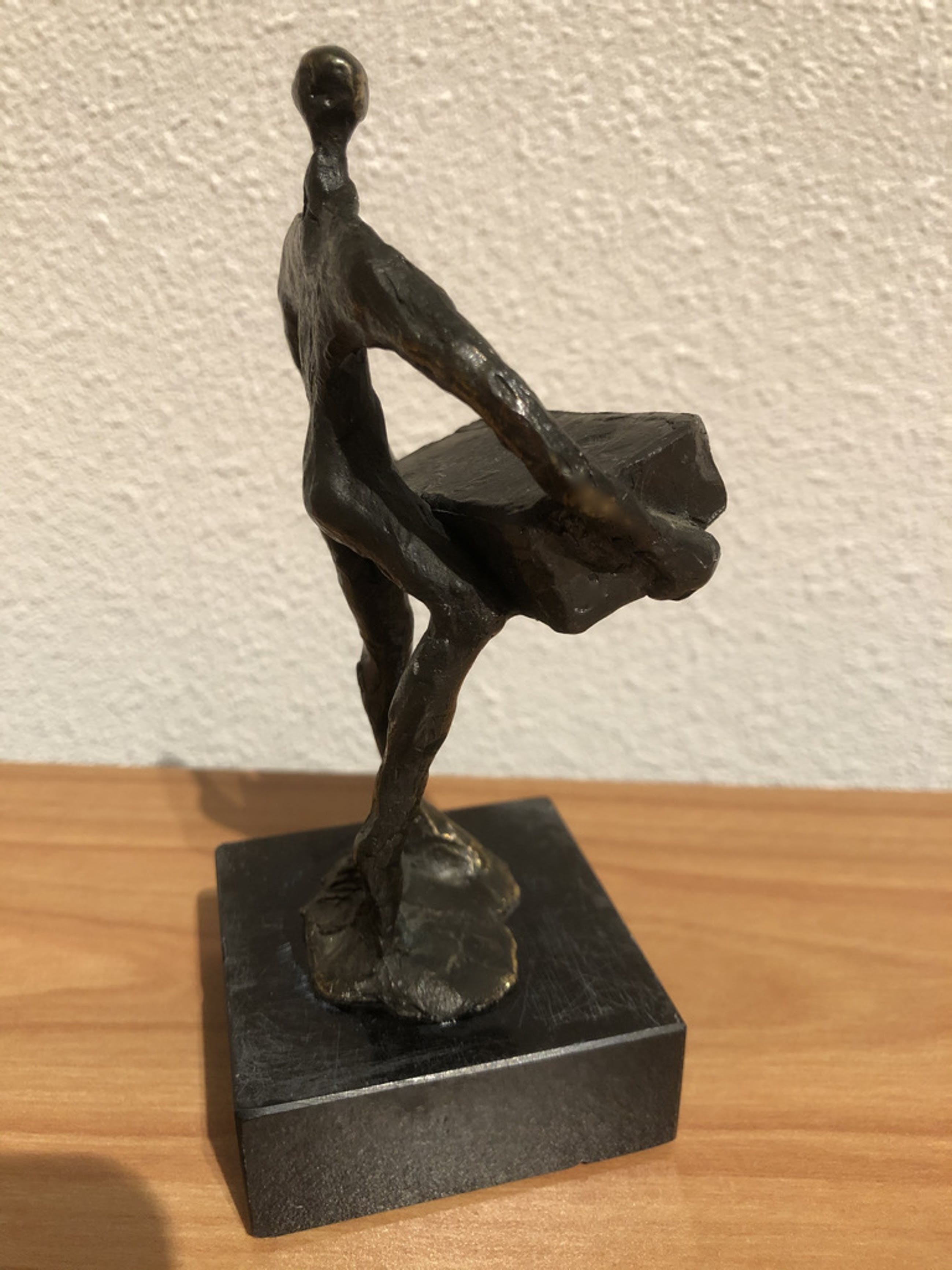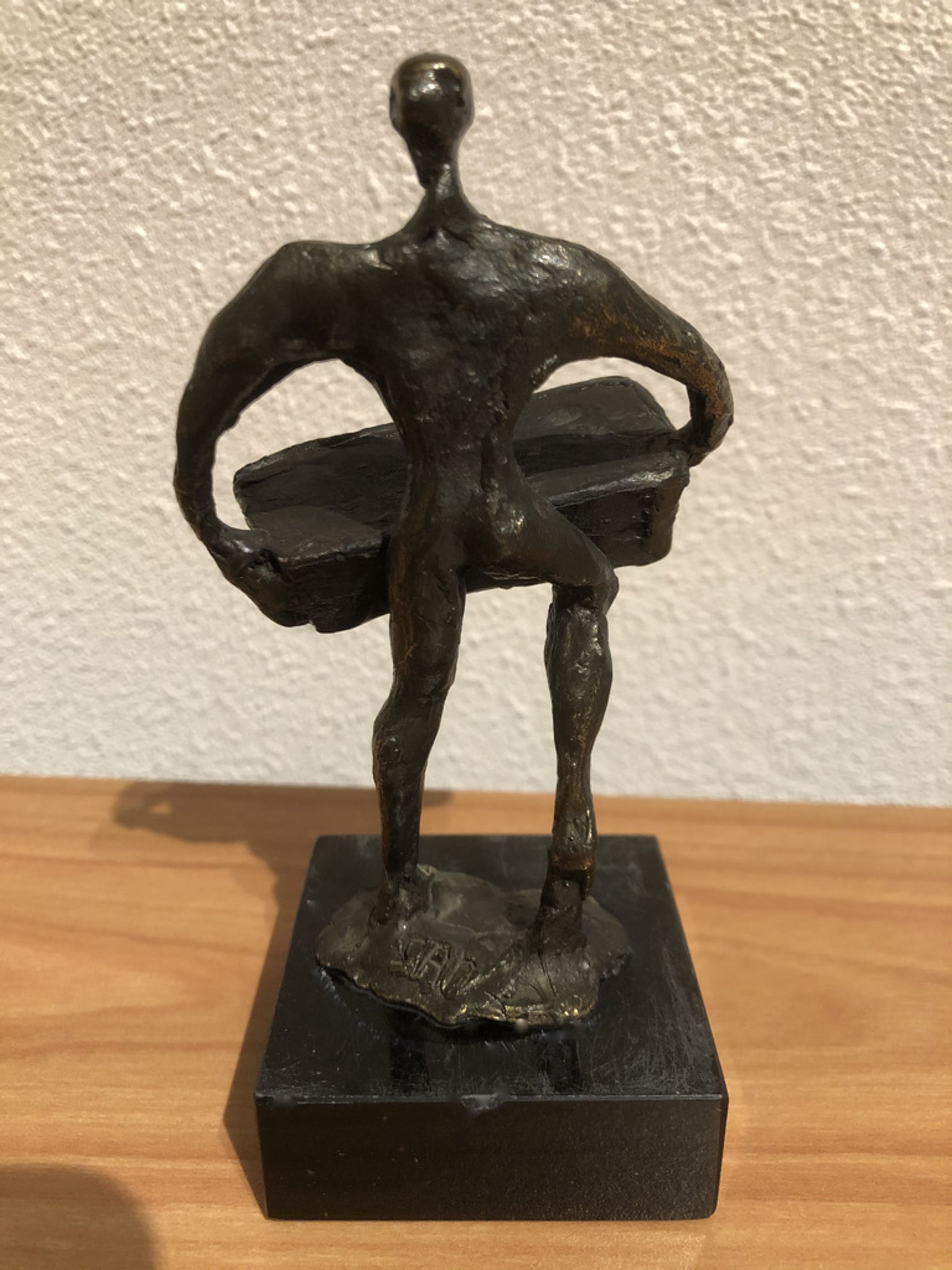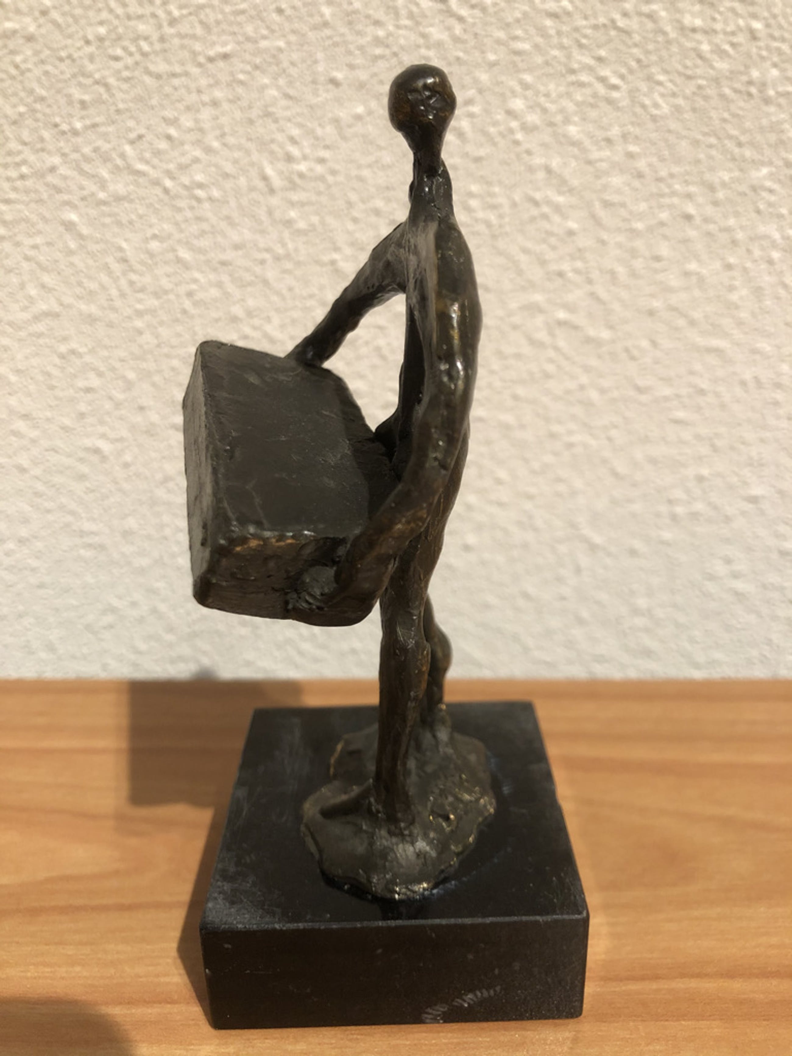 Het betreft een schitterend beeldje met de titel " Een zware last dragen "