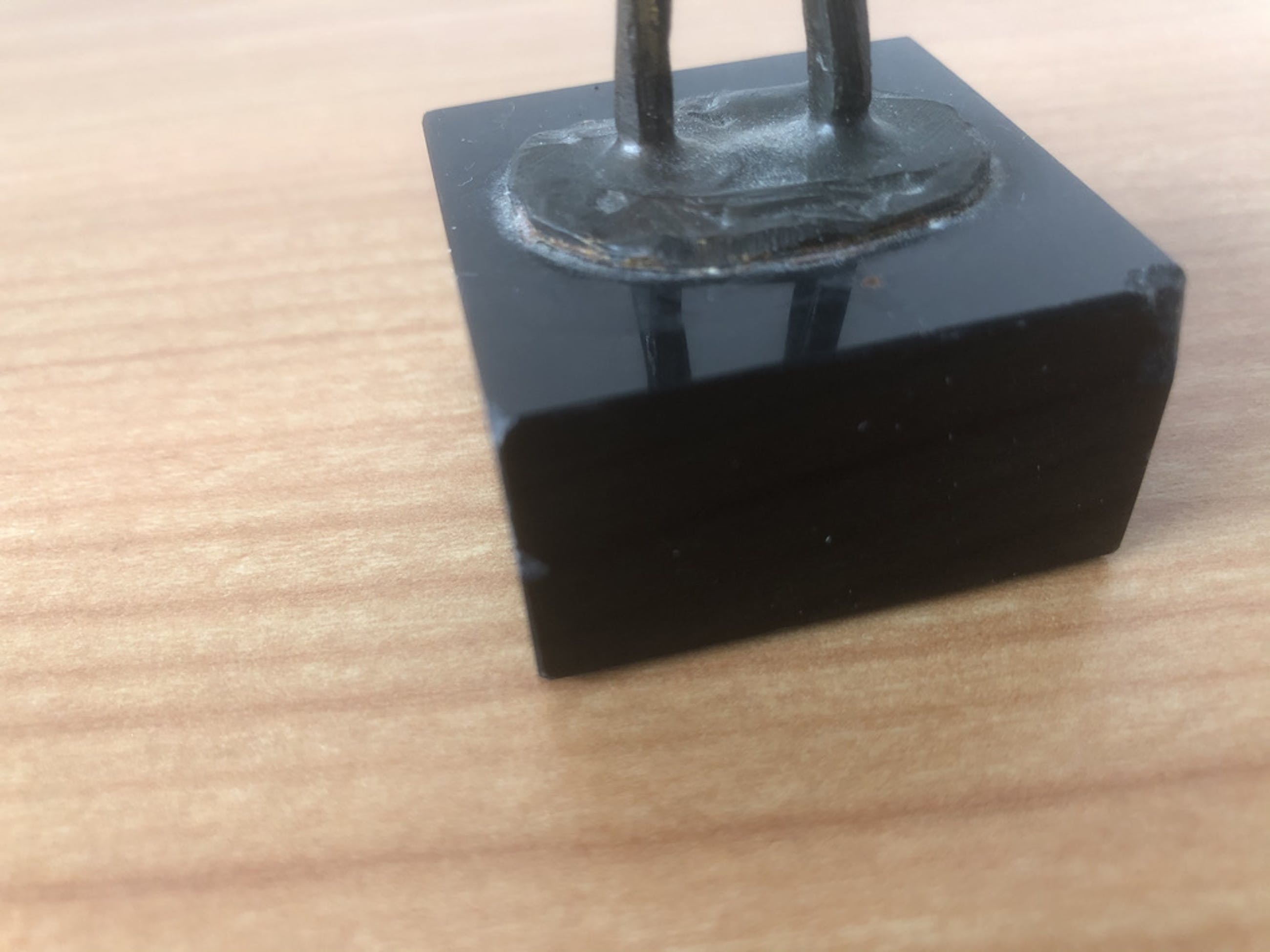 Staat op een zwart marmeren sokkel waar enkele stukjes vanaf zijn.- zie foto. Het geheel is 17 cm hoog.