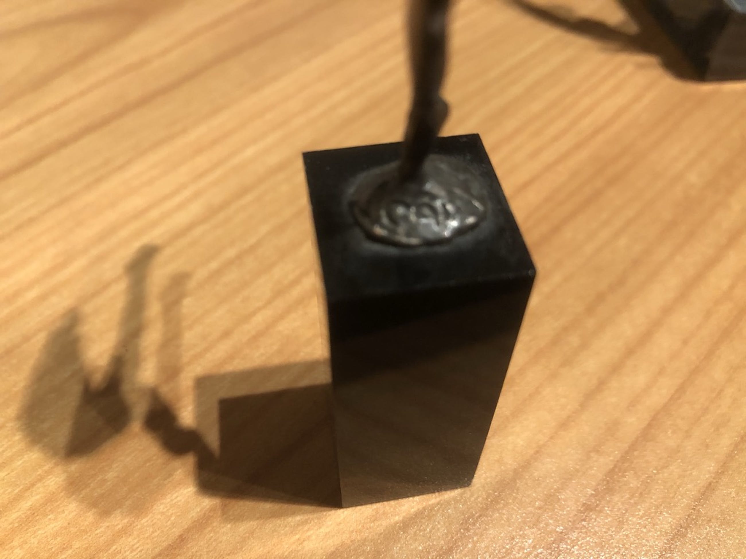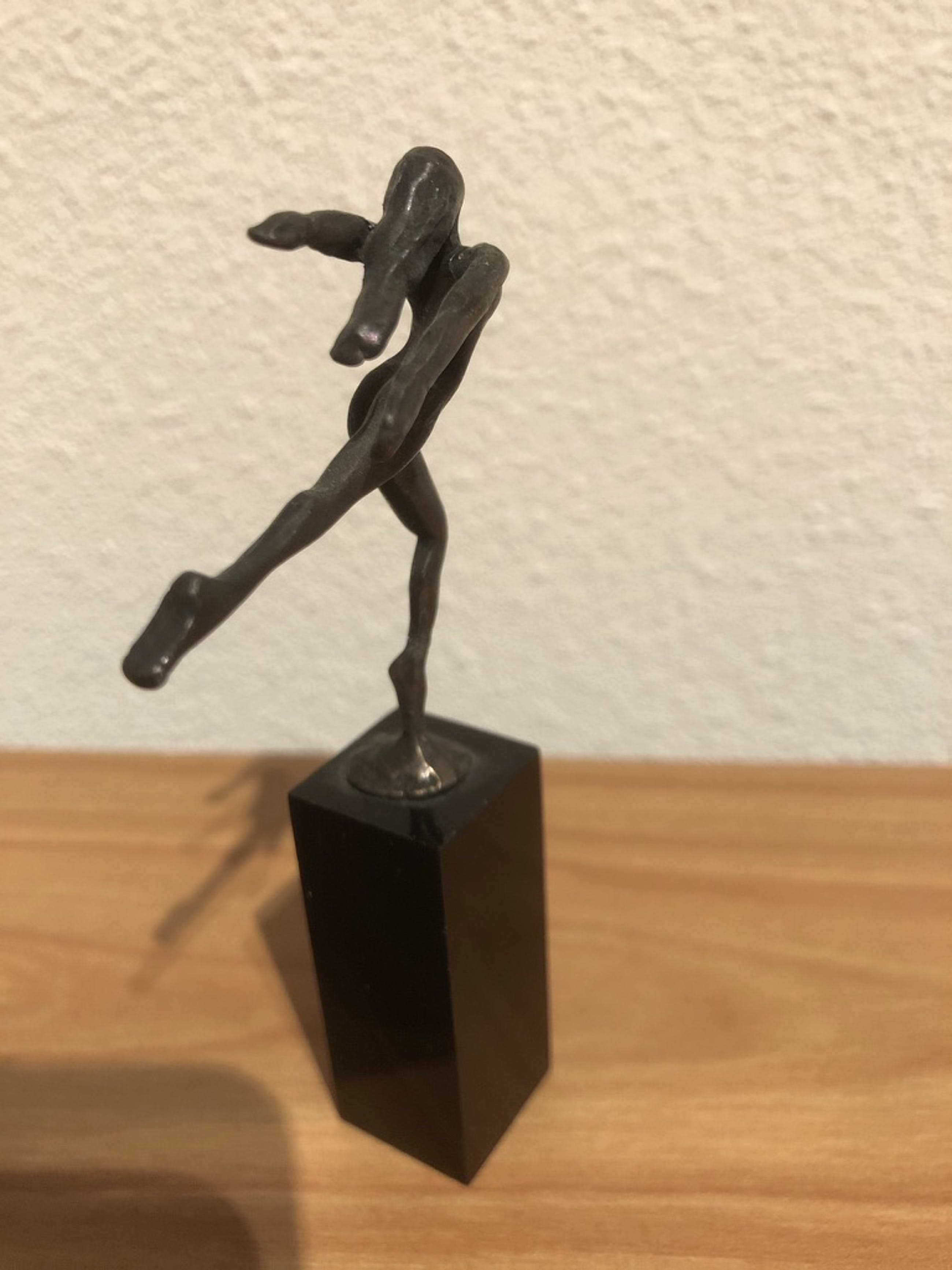Staat op een zwart marmeren sokkel - het geheel is 11 cm hoog.