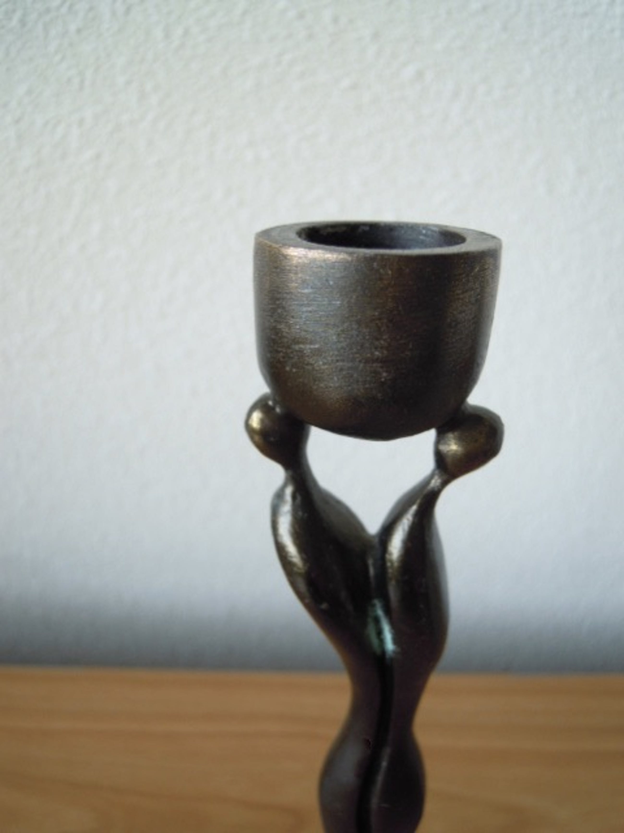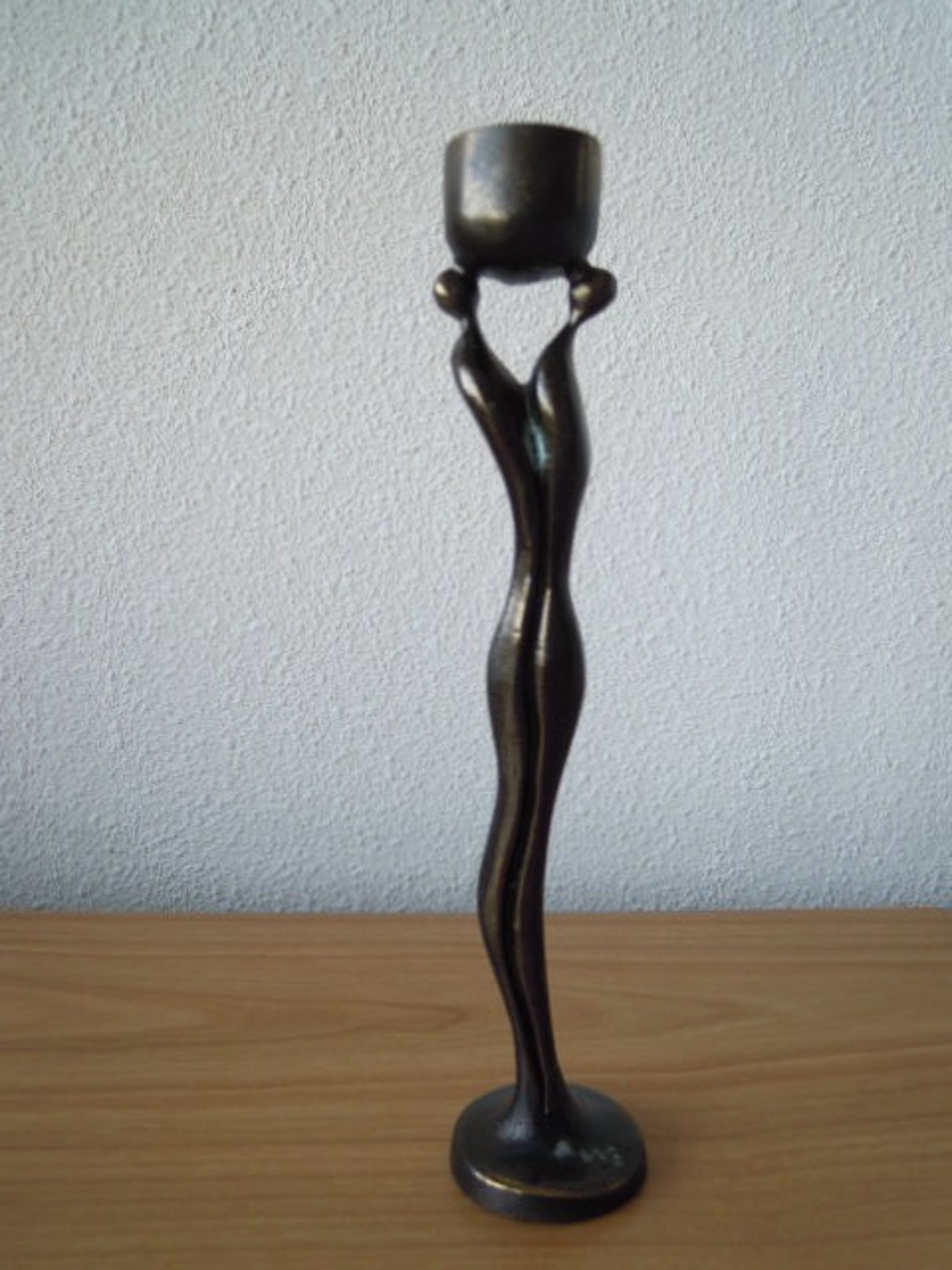 Het betreft een schitterend beeld/ kandelaar die in zeer mooie staat verkeert. 2 Slanke figuren op een voet - voor 1 kaars.