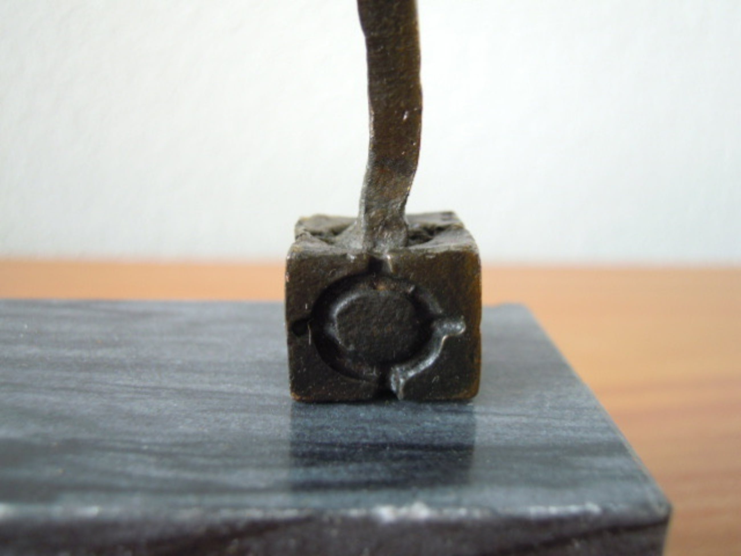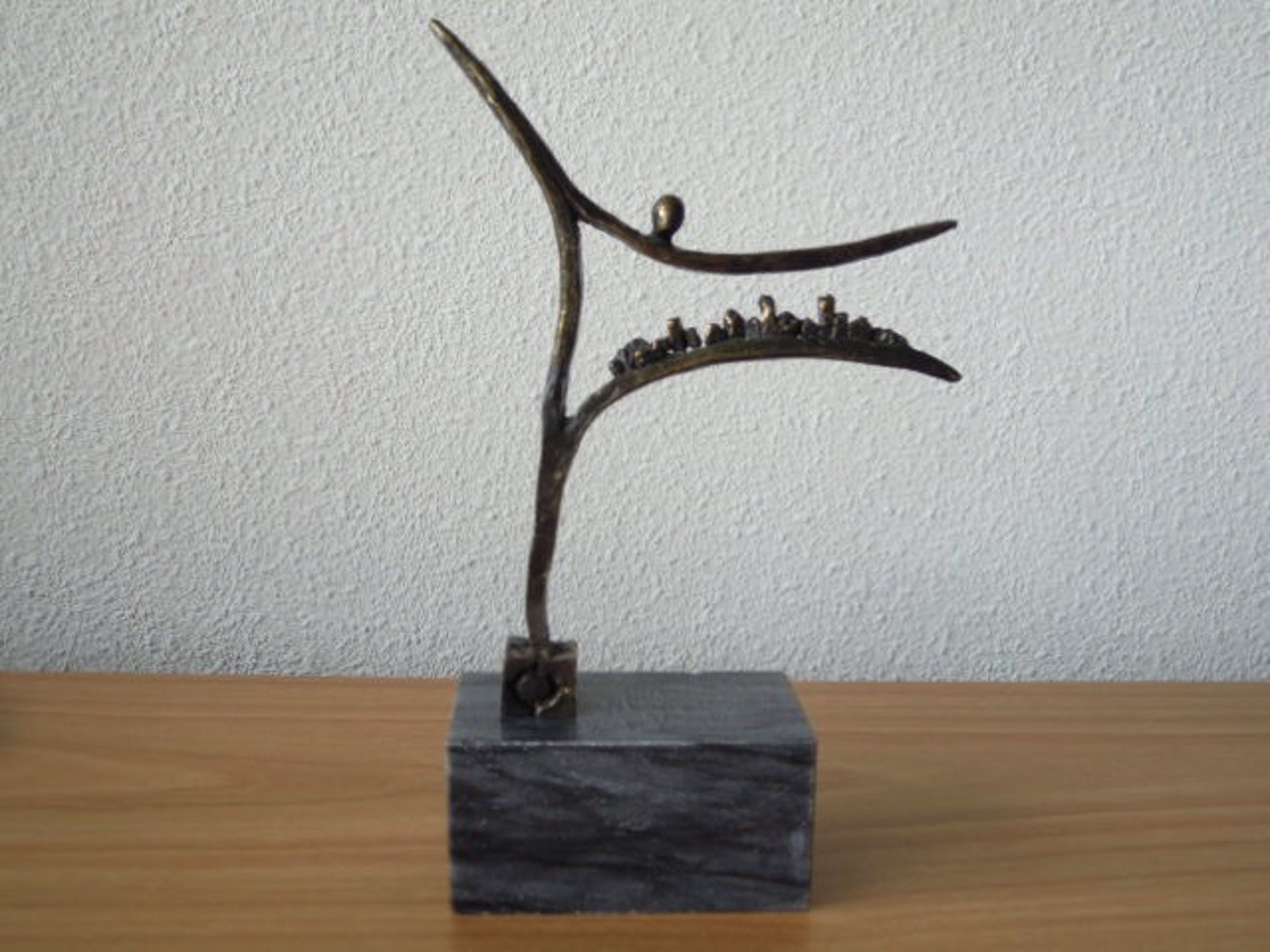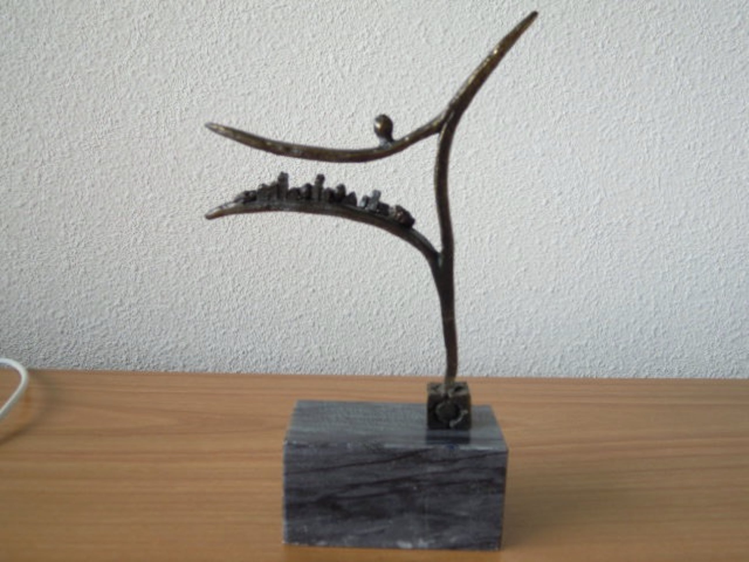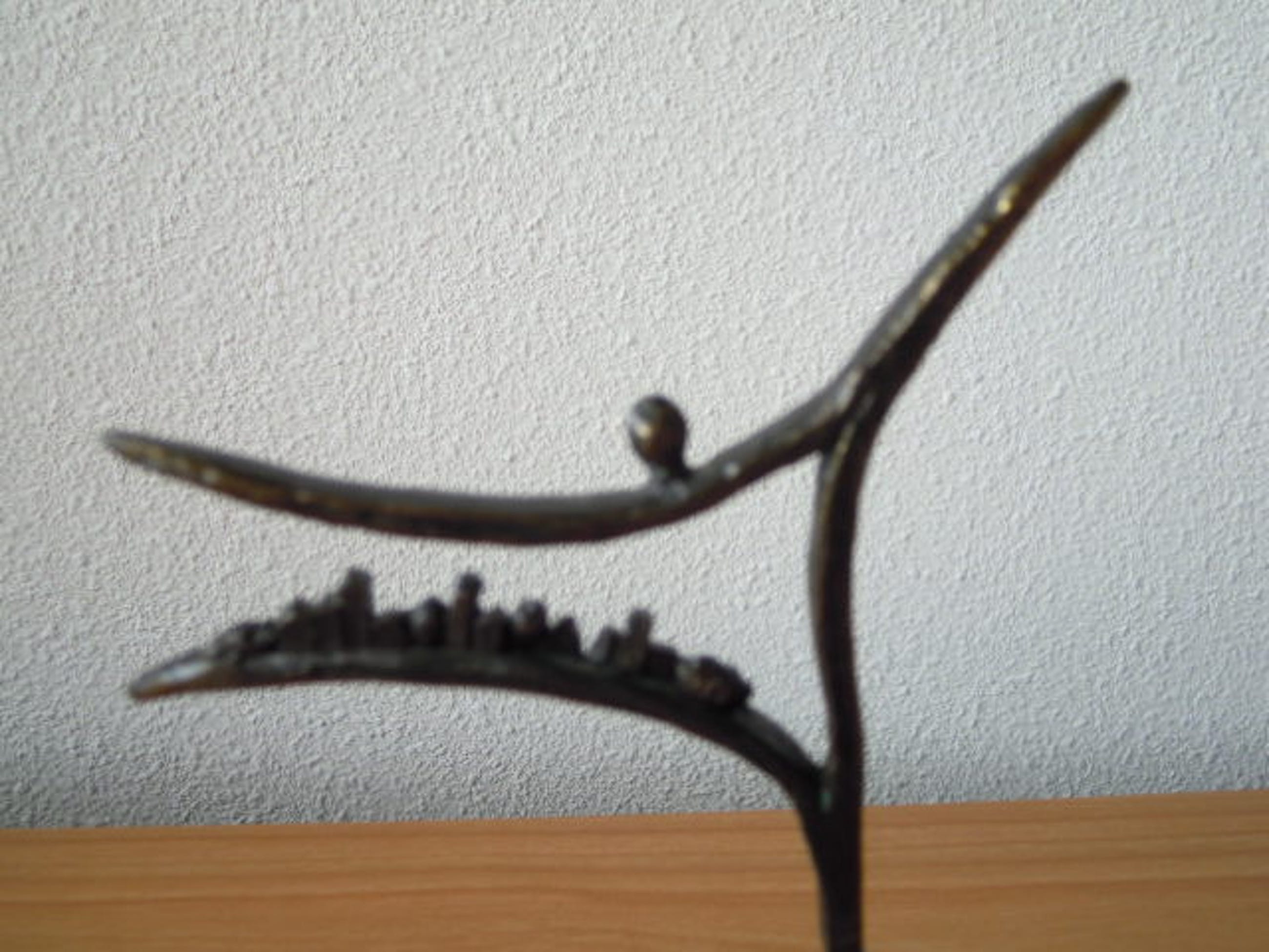 Prachtig bronzen beeldje van persoon die waakt over de stad.