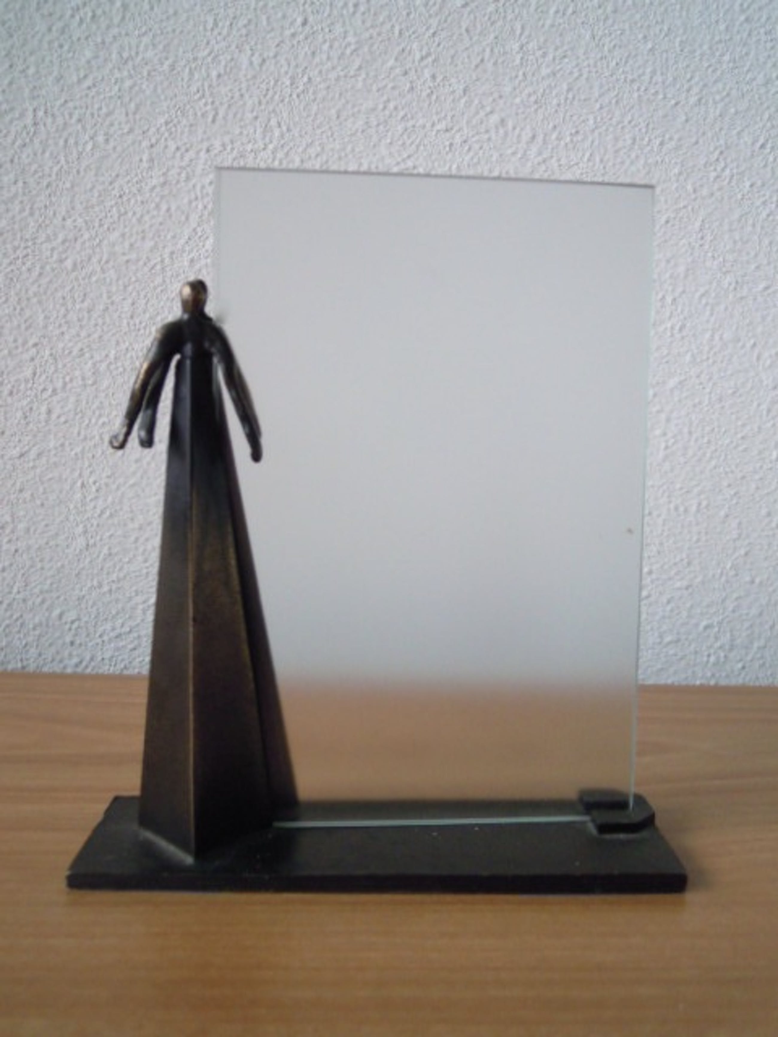 Het betreft een schitterend lijstje met dubbel glas waar foto tussen kan van 15 x 10 cm. Het geheel verkeert in perfecte staat. Voorstelling van 2 figuren.
