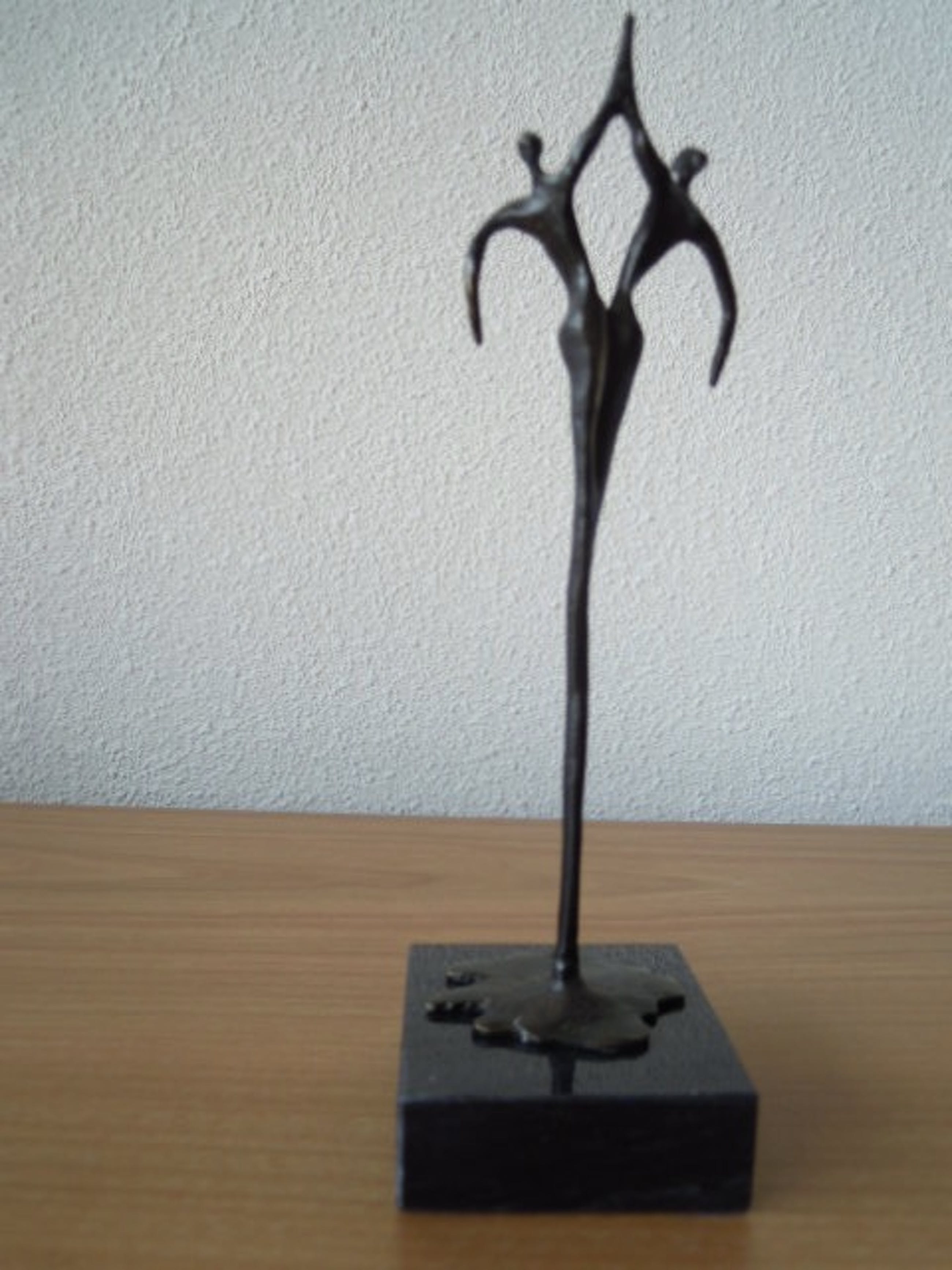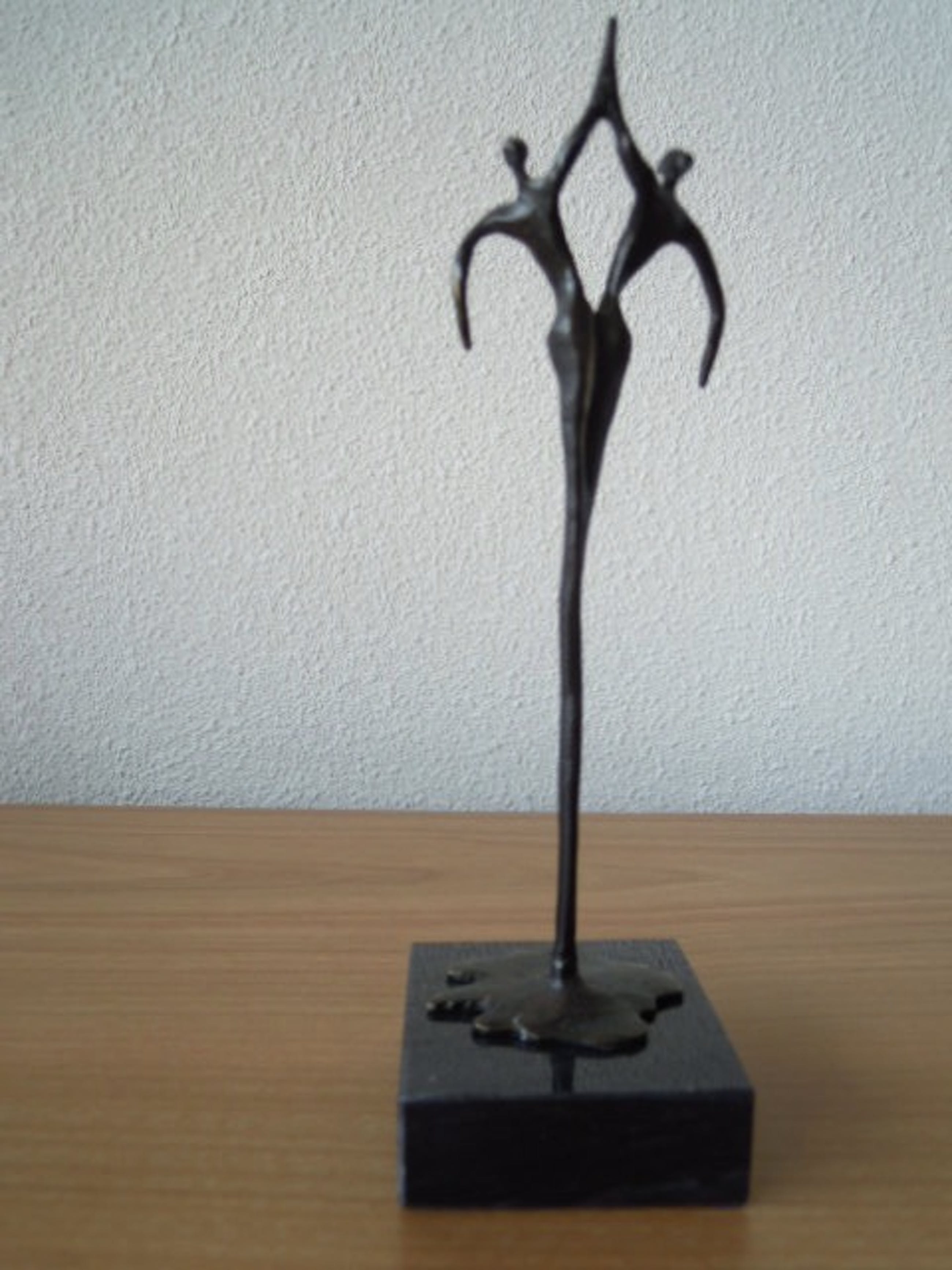 Het staat op een zwart marmeren sokkel en de totale hoogte is 18 cm.