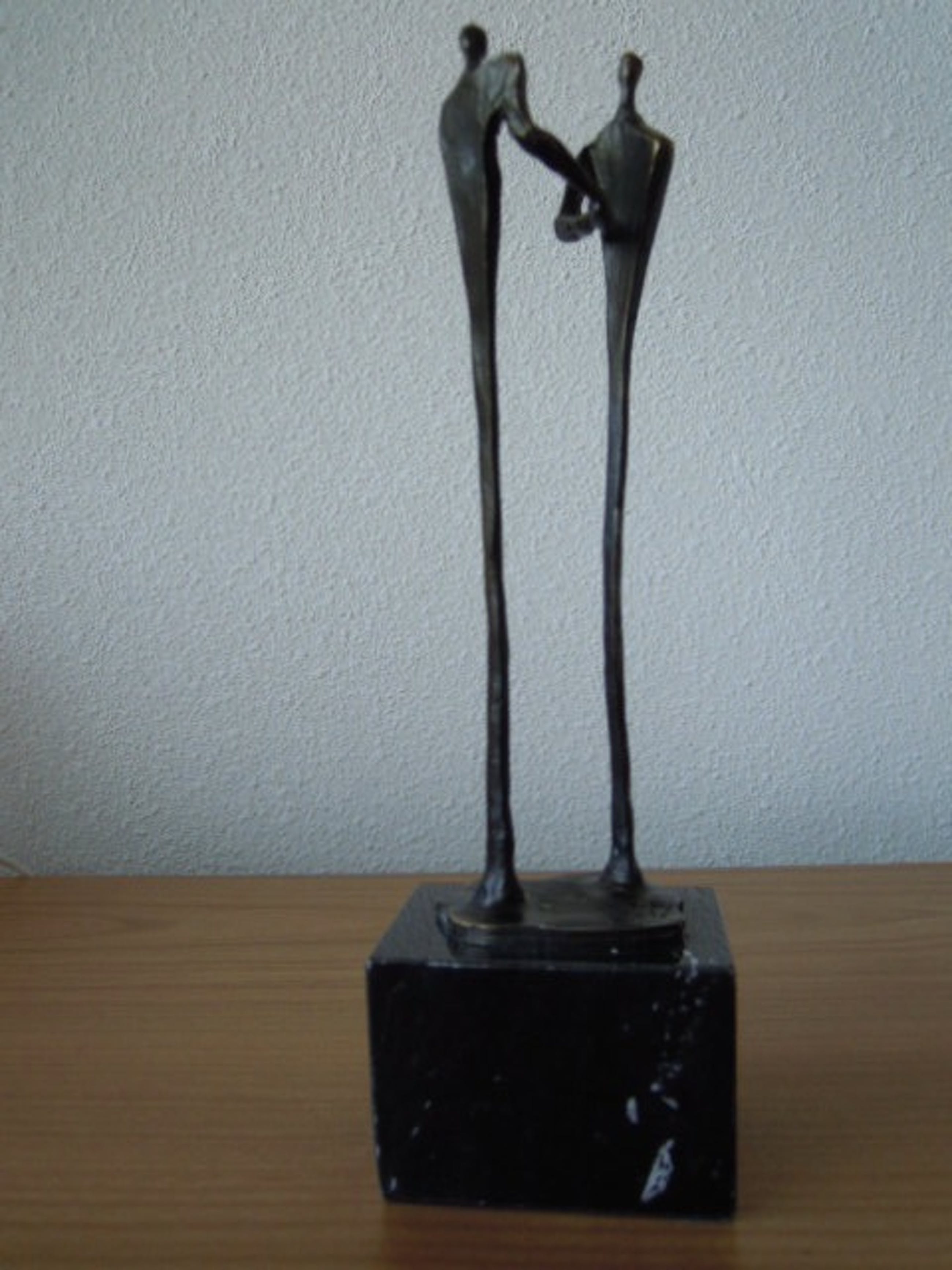 Het betreft een zeer mooi modern beeldje dat inclusief het zwart marmeren voetje een hoogte heeft van 24 cm. Het beeldje is gesigneerd op het voetje.