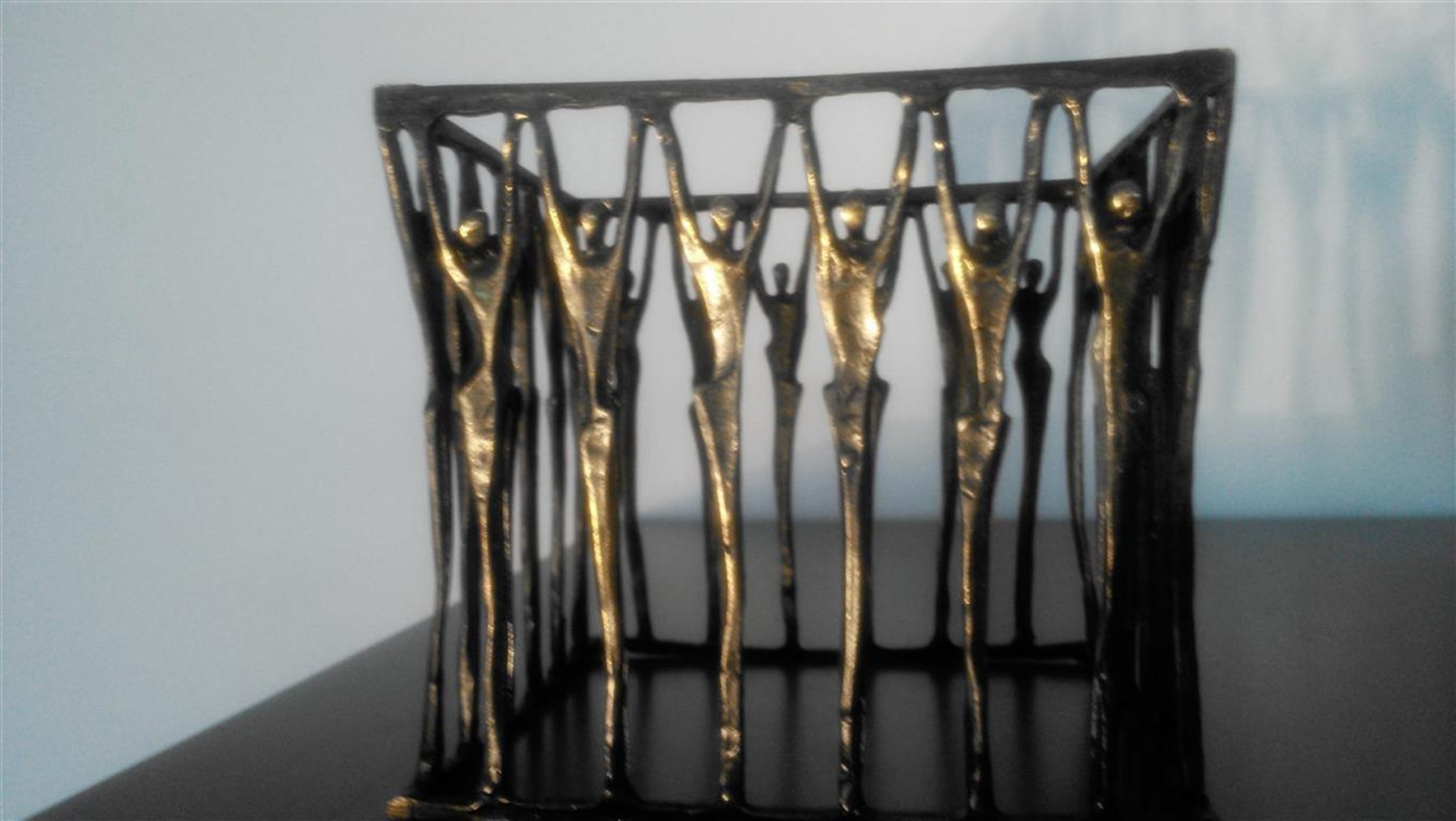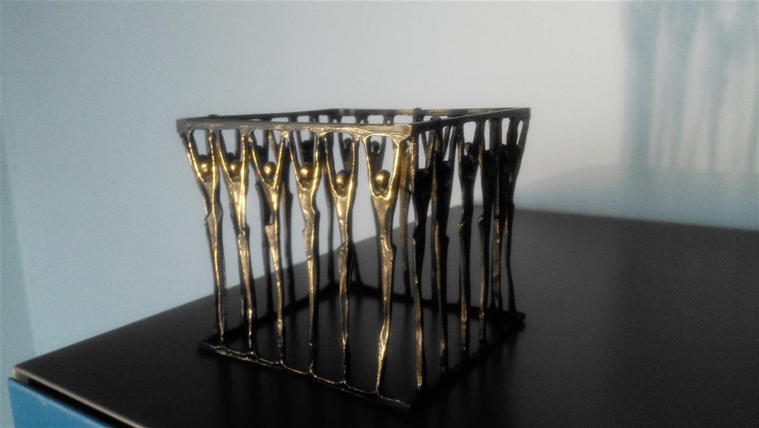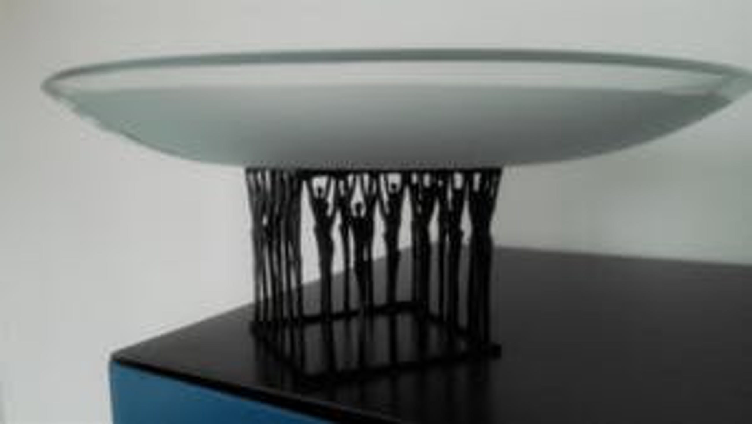 Dit ontwerp straalt eensgezindheid en harmonie uit. Vierkante staander van personen die de grote schaal dragen
