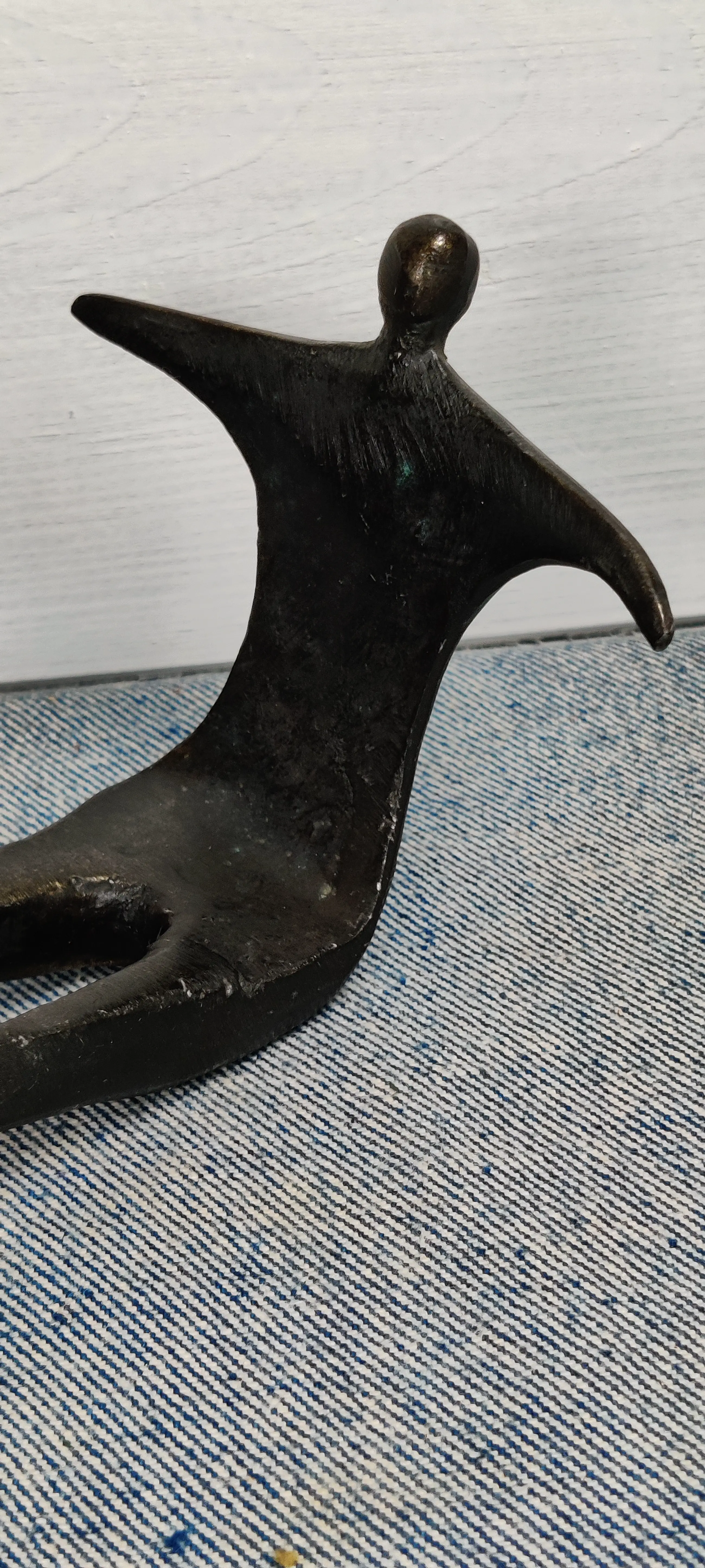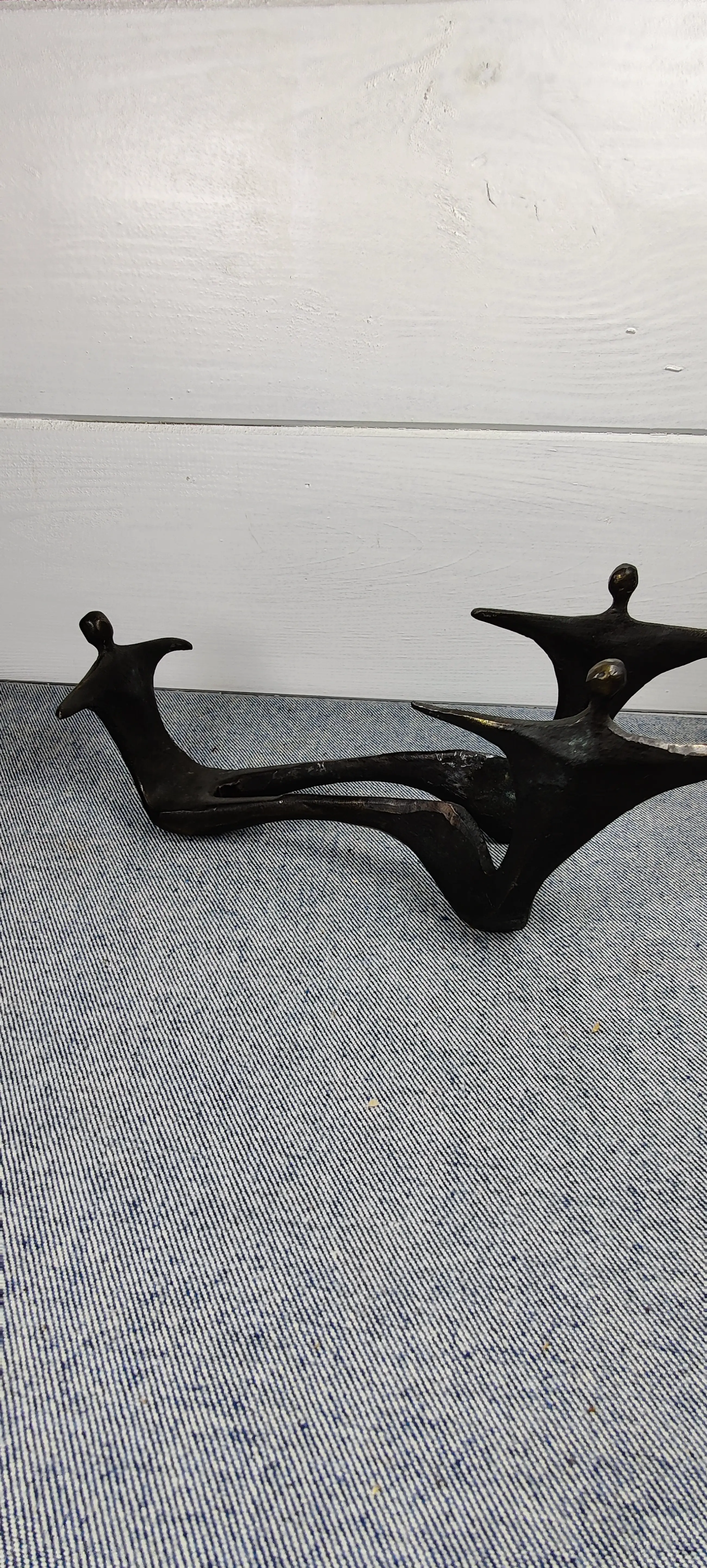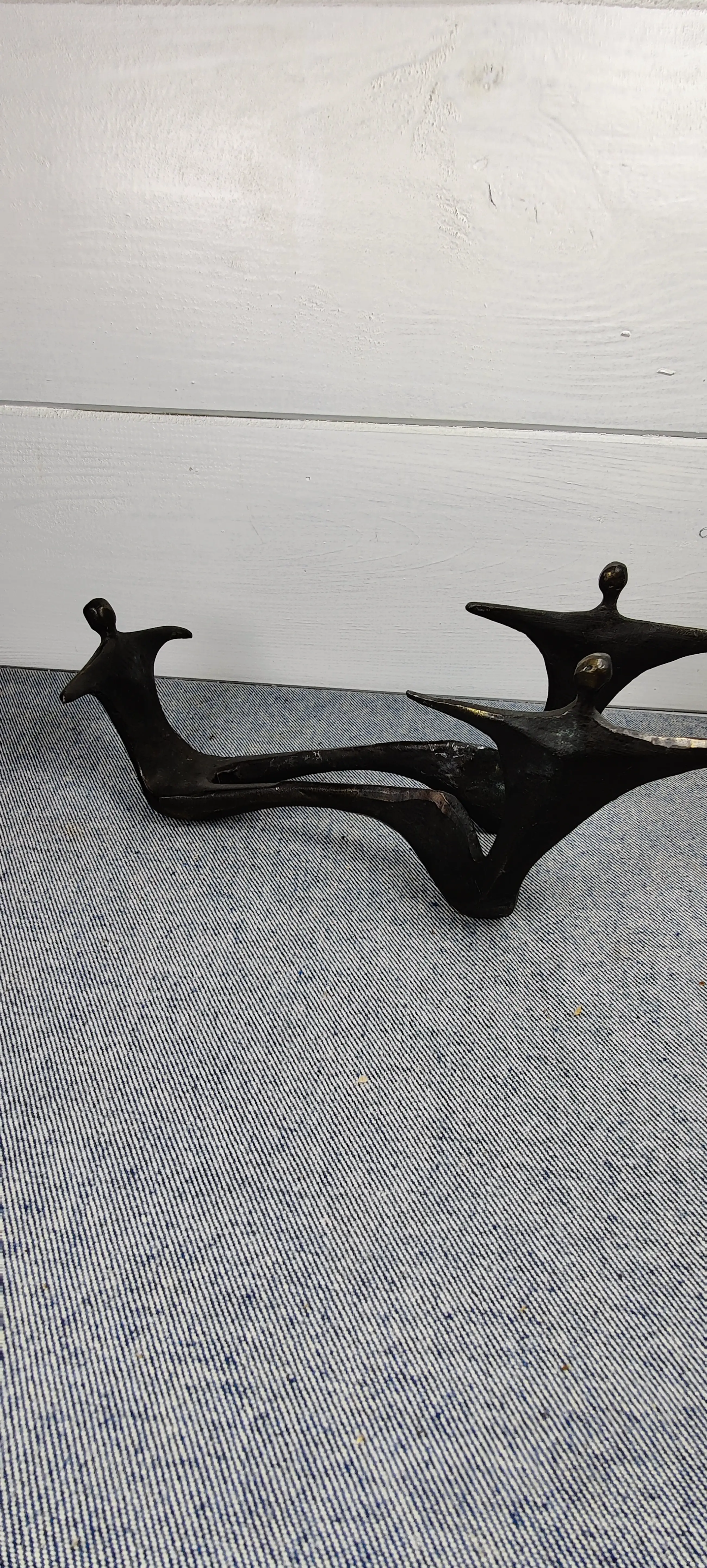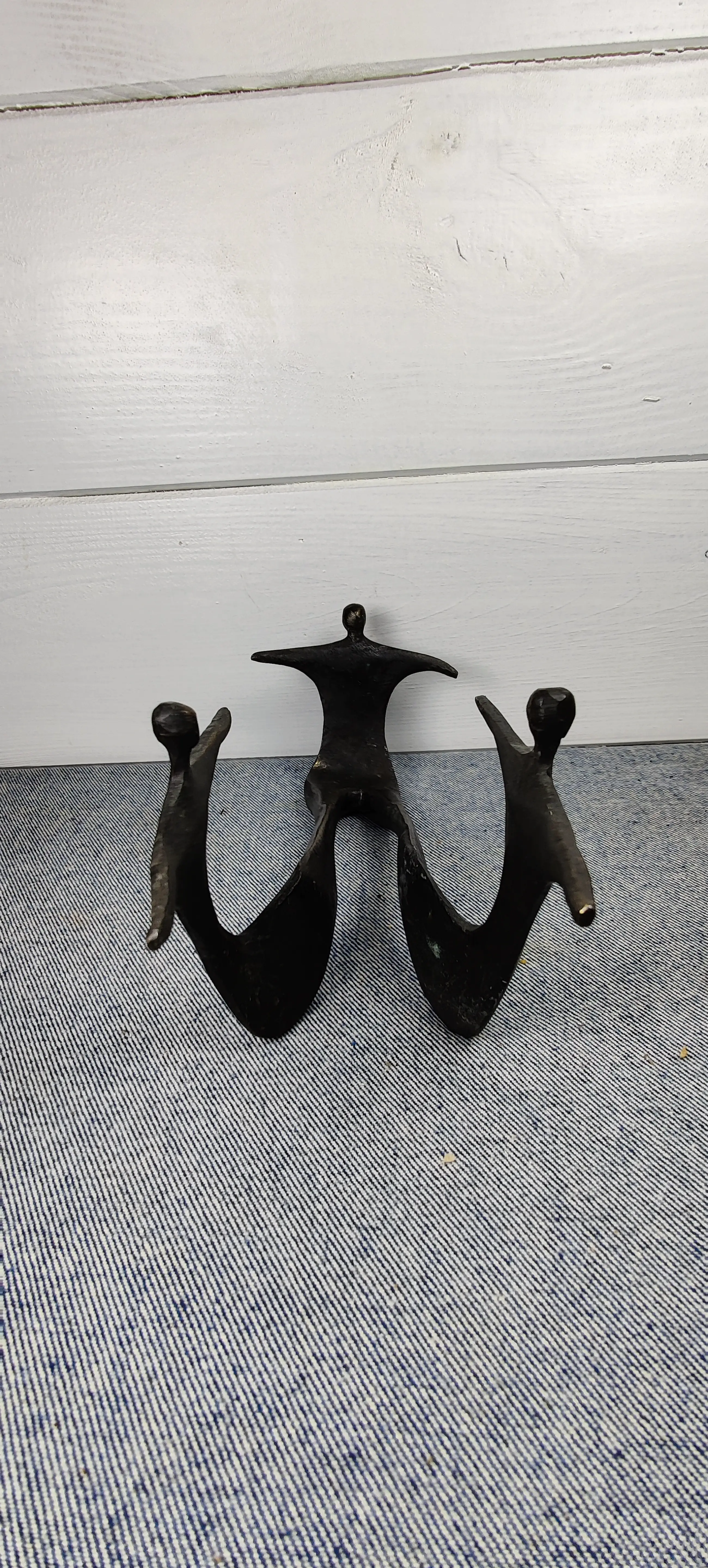 Zeldzaam en bijzonder fraai sculptuur van een muurtje van keramiek met daarop twee mensfiguren die elkaar helpen hogerop te komen Titel “ Samensterk“ Het is een vrij zeldzaam sculptuur, niet meer in de vrije verkoop te krijgen. Kunstenares : Corry Ammerlaan. Hoogte : 22,5 cm. Breedte : 10 x 9cm Materiaal : Massief bronzen beeld/wijnfleshouder