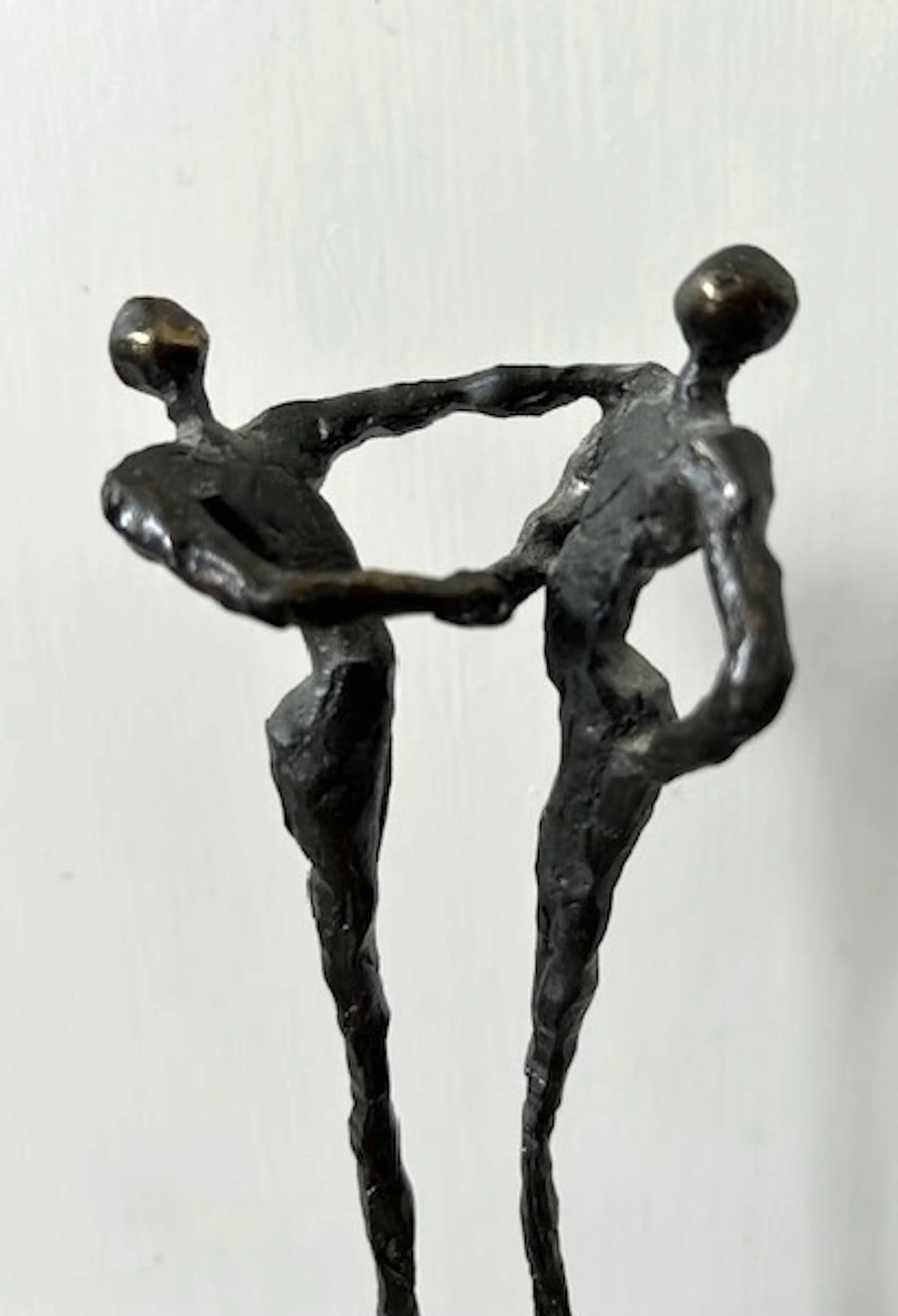 Corry Ammerlaan sculptuur brons 'Dank' op natuurstenen sokkel. Dit betreft de grote versie van 28 cm hoog. De achtergrondgedachte van deze symbolische sculptuur; bij vele gelegenheden geven we elkaar de hand. Op deze wijze drukken wij onze verbondenheid uit.