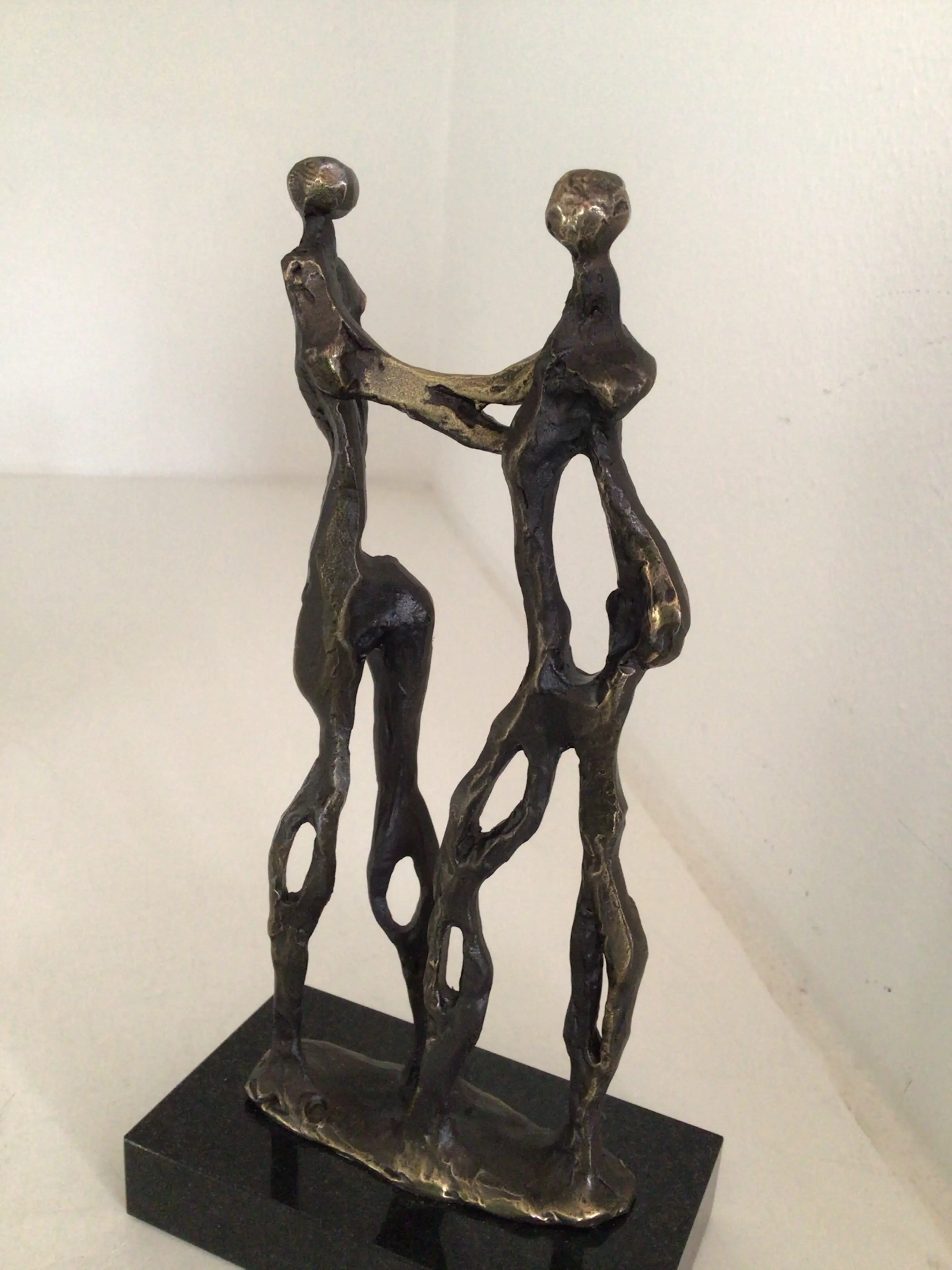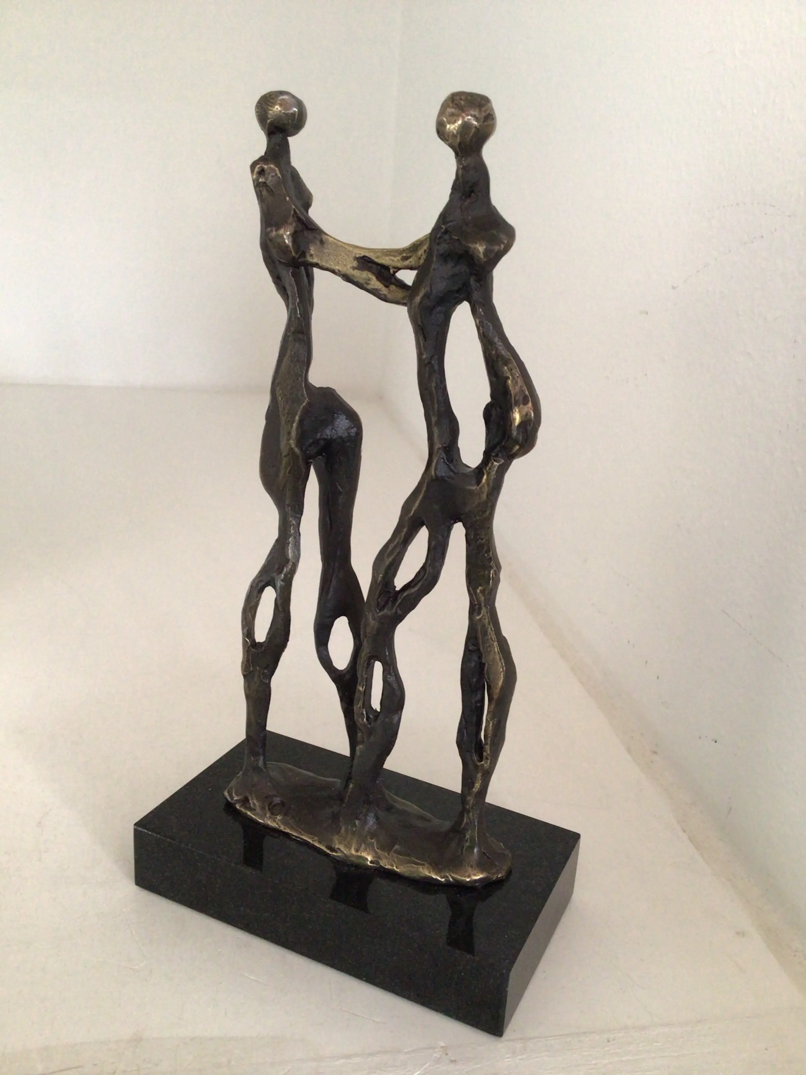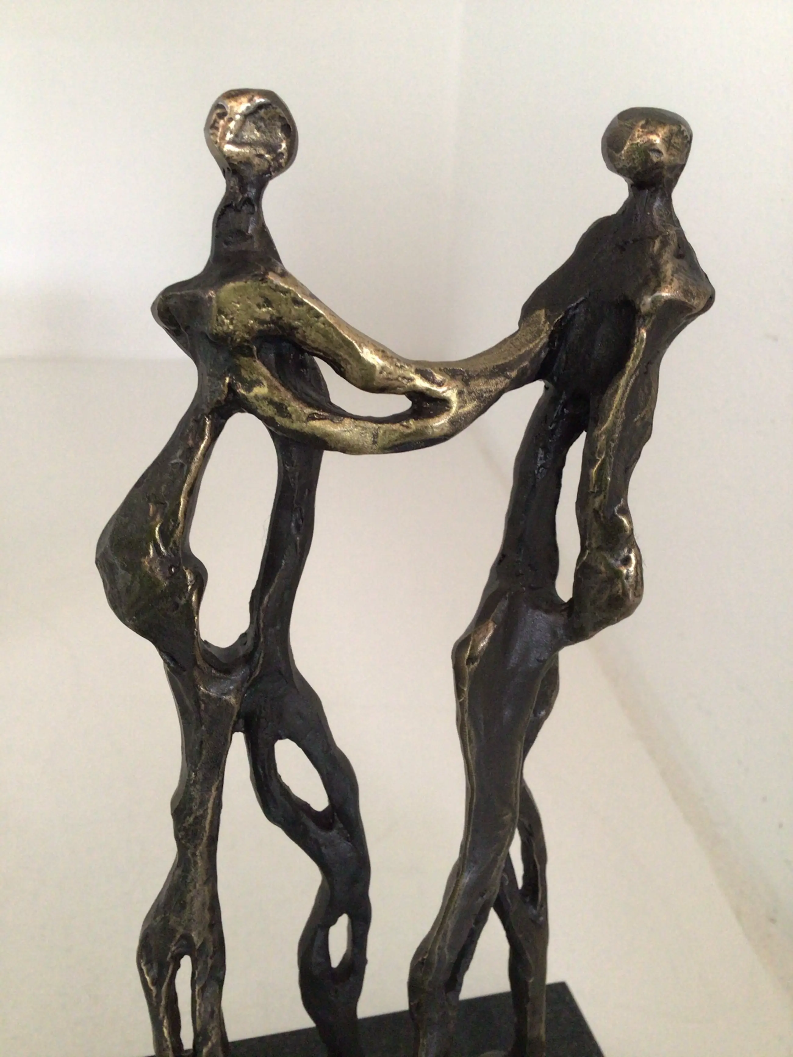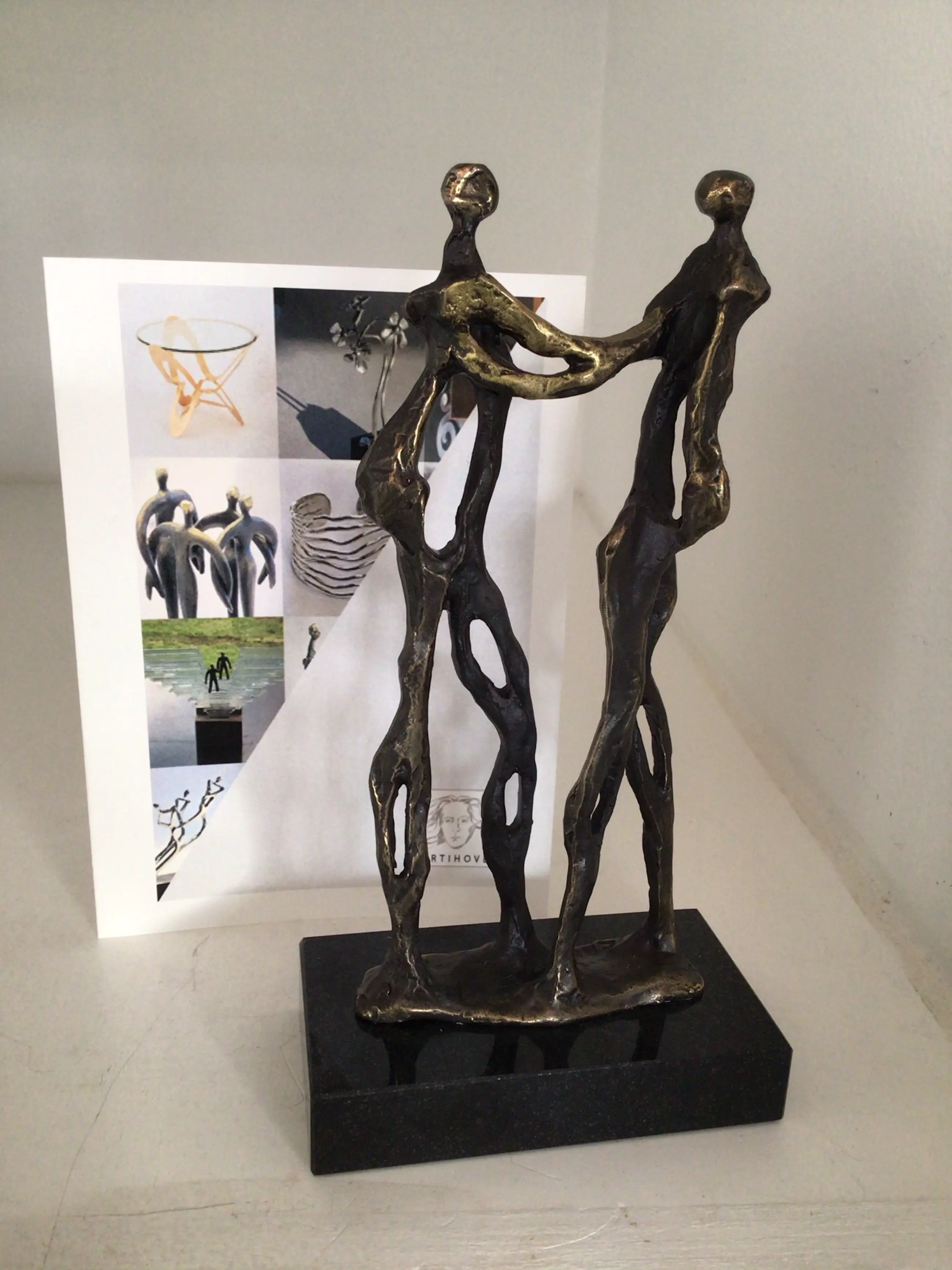 Zeer fraai en symbolisch sculptuur van twee mensen die elkaar de hand schudden, de handen zijn goudkleurig, het is letterlijk “ Een handdruk van goud “ Kunstenares: Corry Ammerlaan Op de voet gesigneerd: CAN Hoogte : 19 cm Het beeld verkeert in nieuwstaat en wordt zorgvuldig verpakt en aangetekend verzonden.