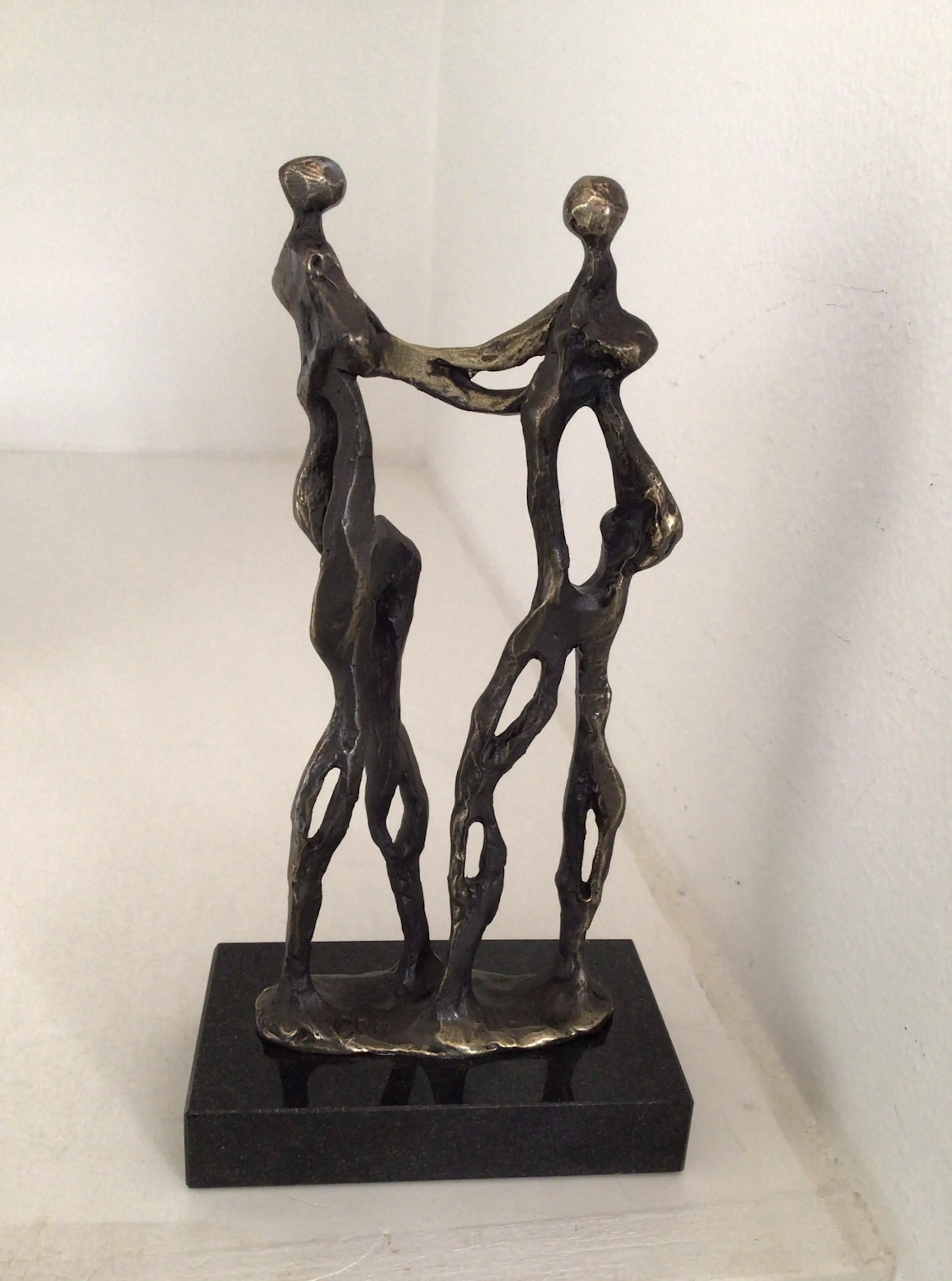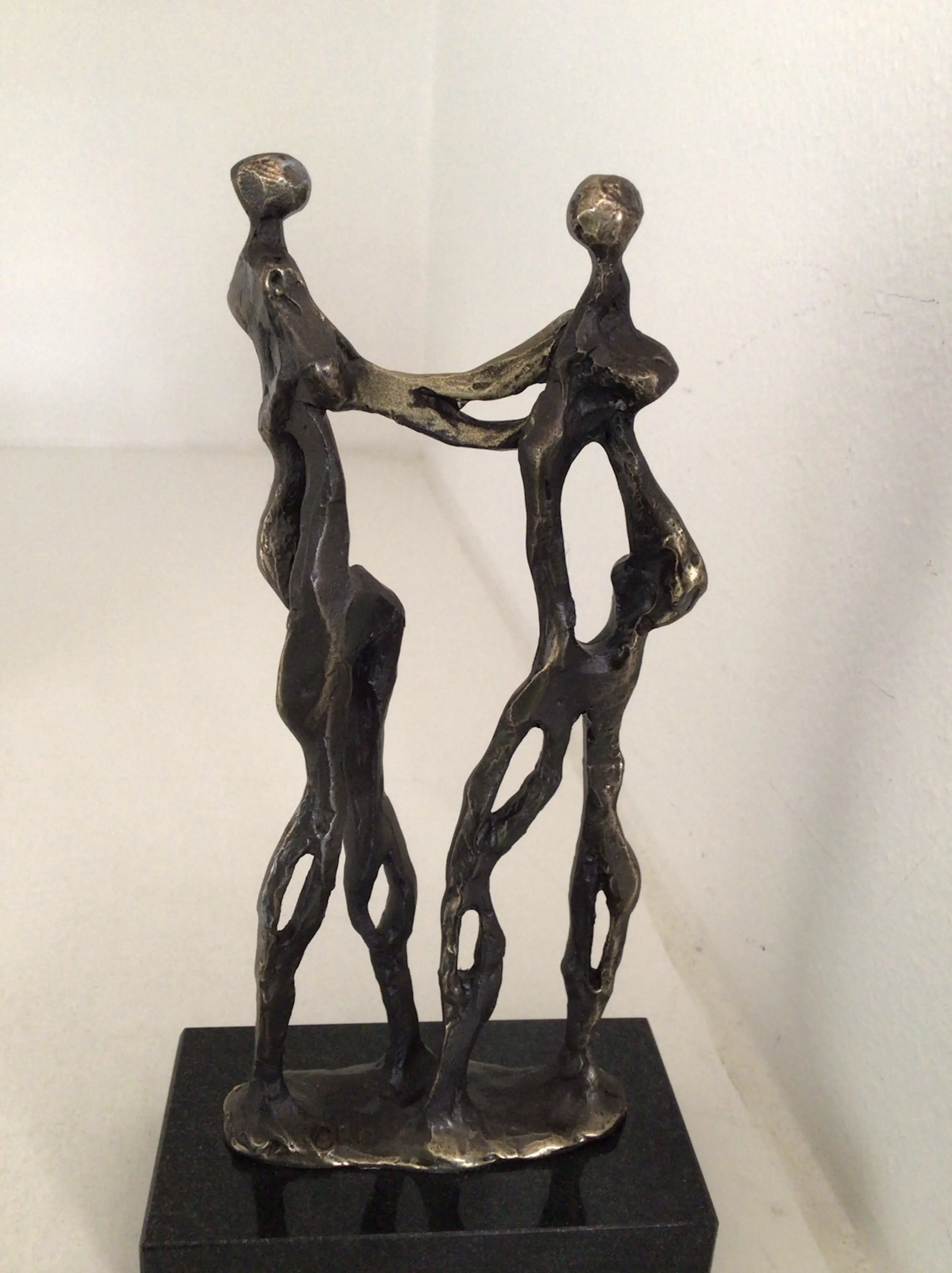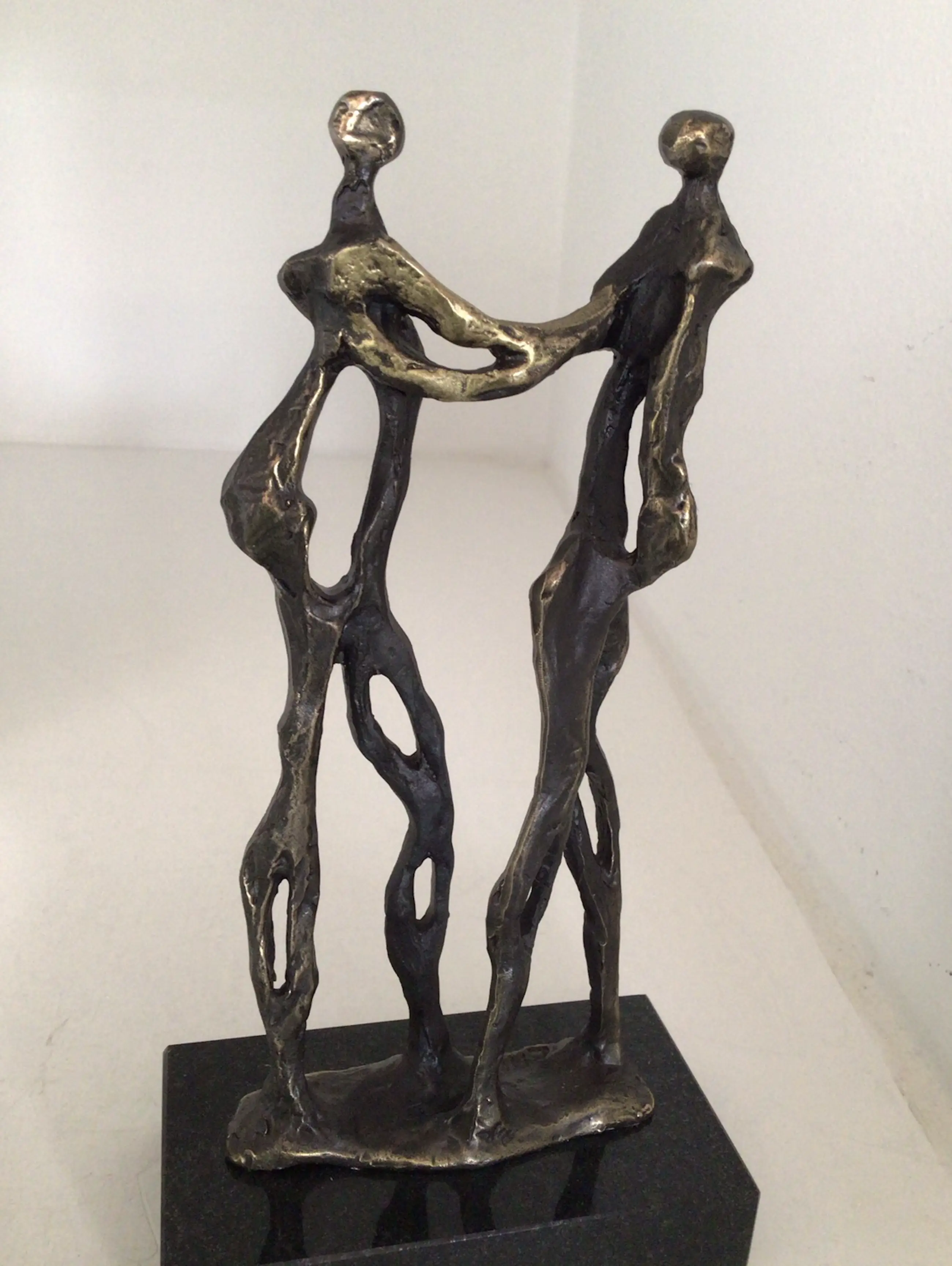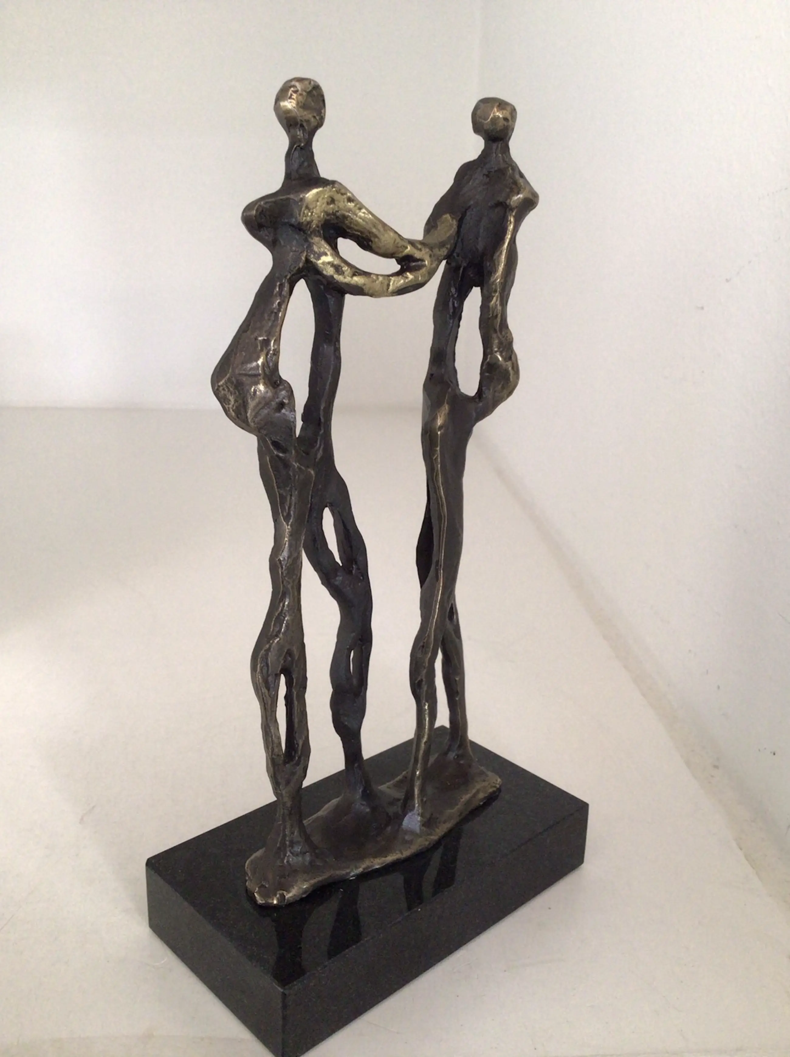 Zeer fraai en symbolisch sculptuur van twee mensen die elkaar de hand schudden, de handen zijn goudkleurig, het is letterlijk “ Een handdruk van goud “ Kunstenares: Corry Ammerlaan Op de voet gesigneerd: CAN Hoogte : 19 cm Het beeld verkeert in nieuwstaat en wordt zorgvuldig verpakt en aangetekend verzonden.