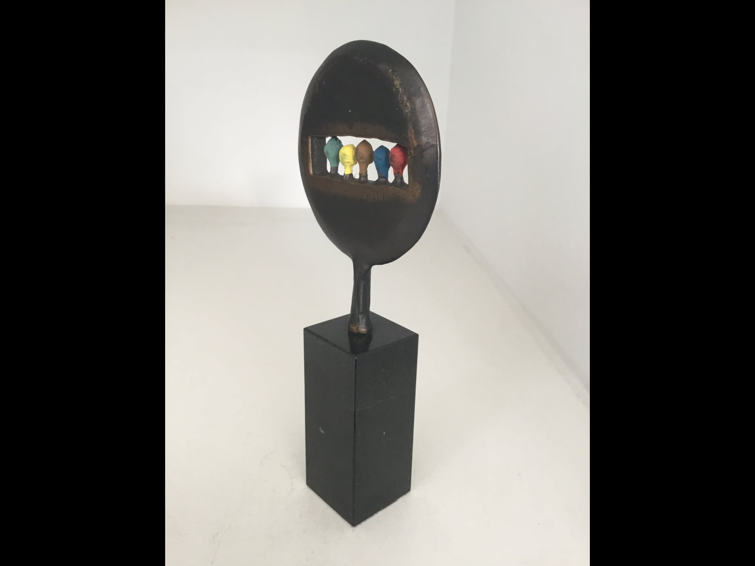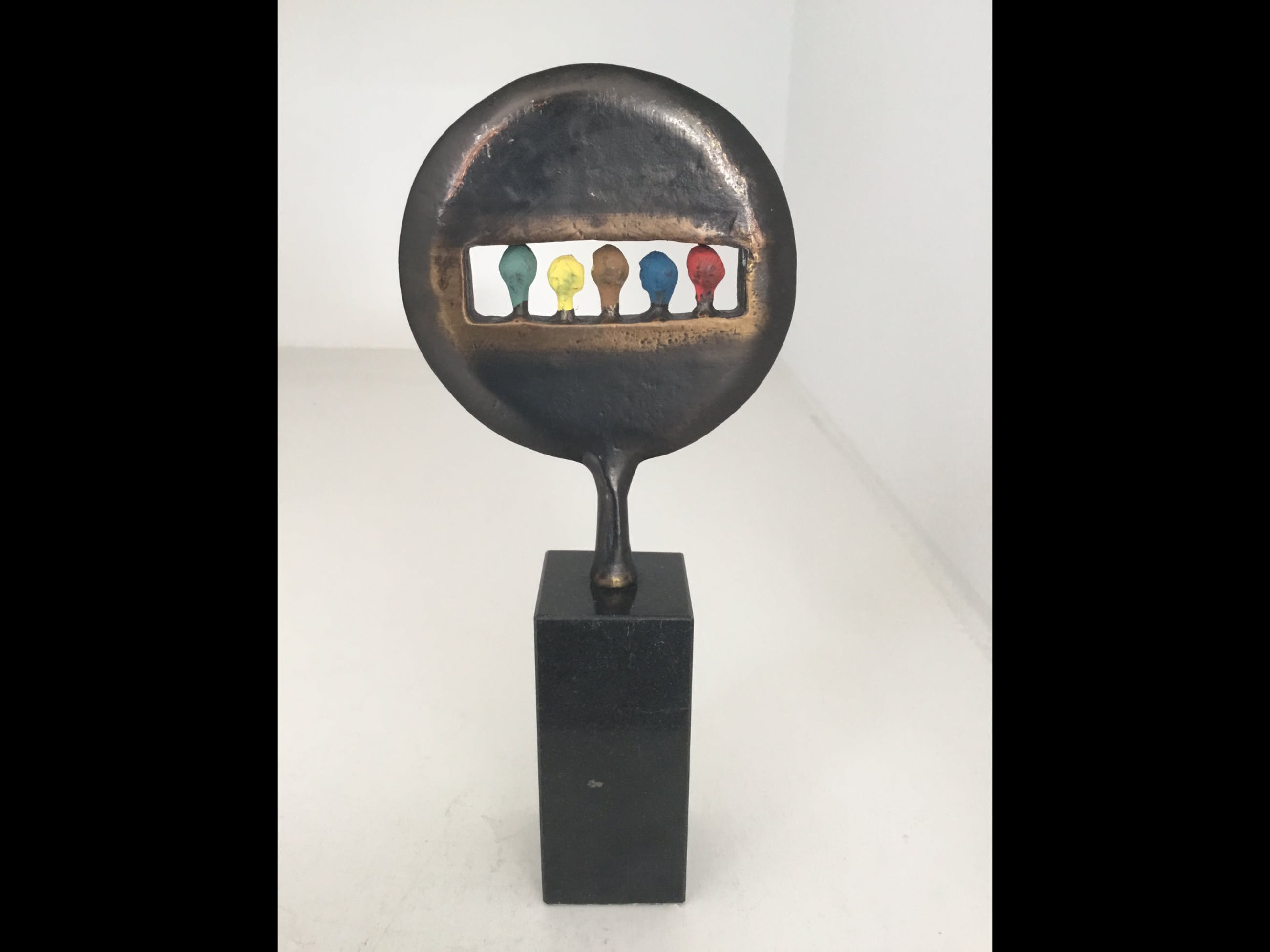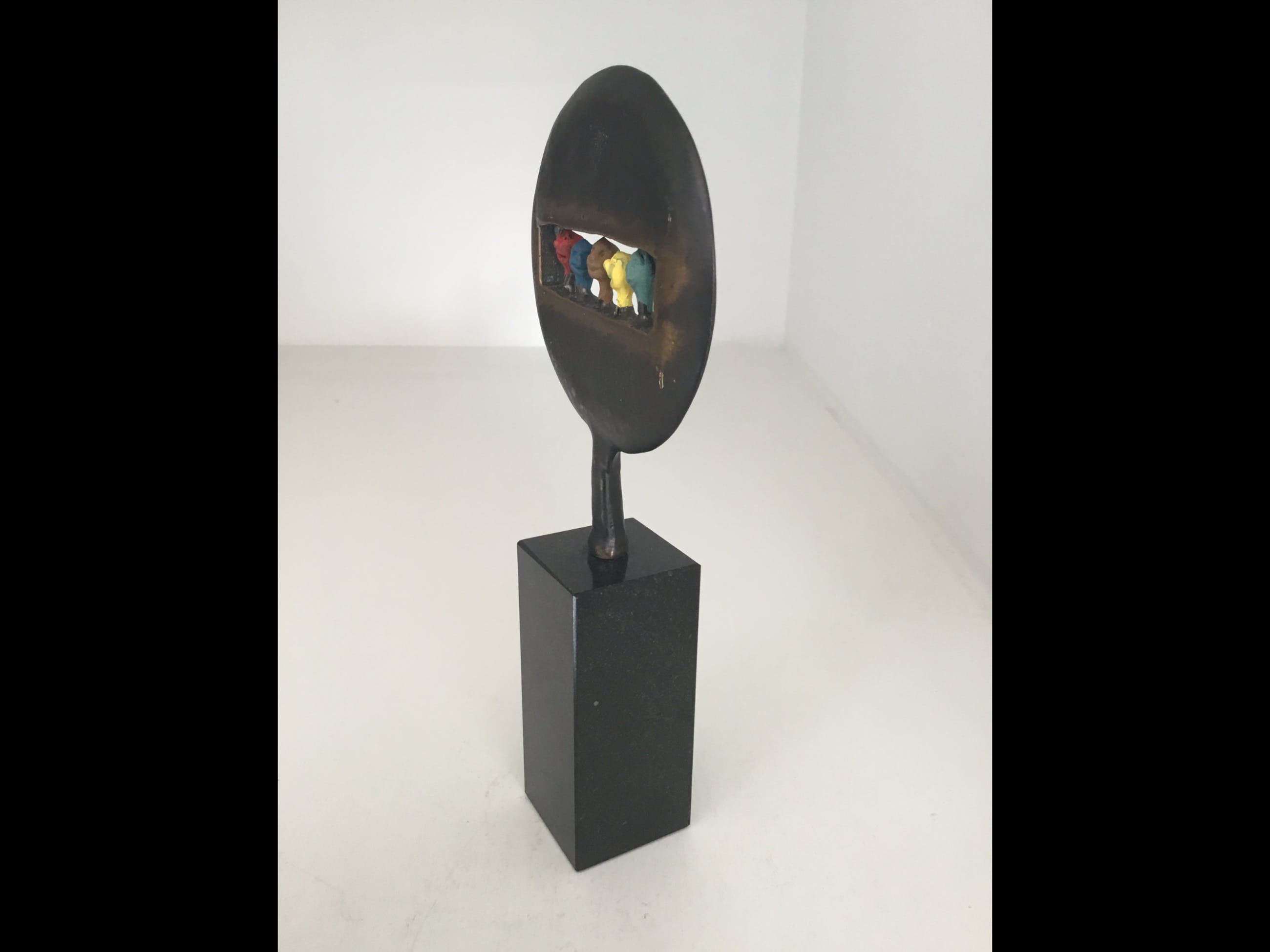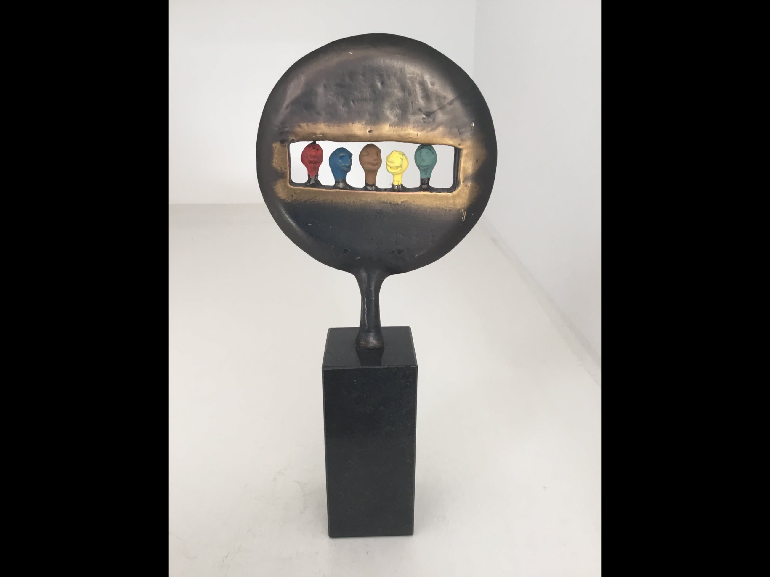 Mooi symbolisch sculptuur van gekleurde gezichten kijkend vanachter een “ venster “ naar wat gaat komen. Titel “ Kijk naar de toekomst ! “ Hoogte : 19 cm Materiaal : brons op marmeren sokkel Het sculptuur wordt geleverd in originele verpakking. Het verkeert in nieuwstaat en wordt zorgvuldig verpakt en aangetekend verzonden .