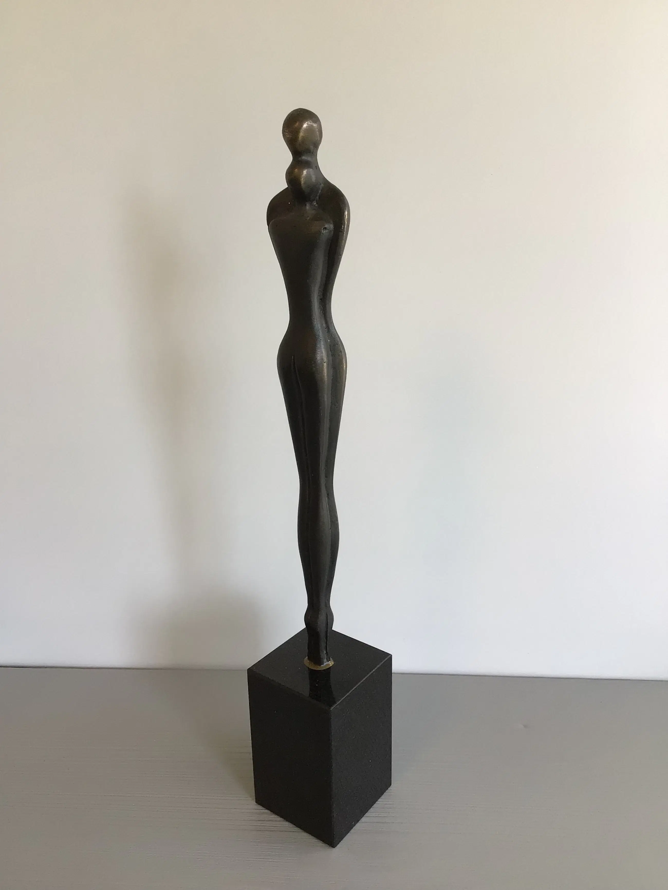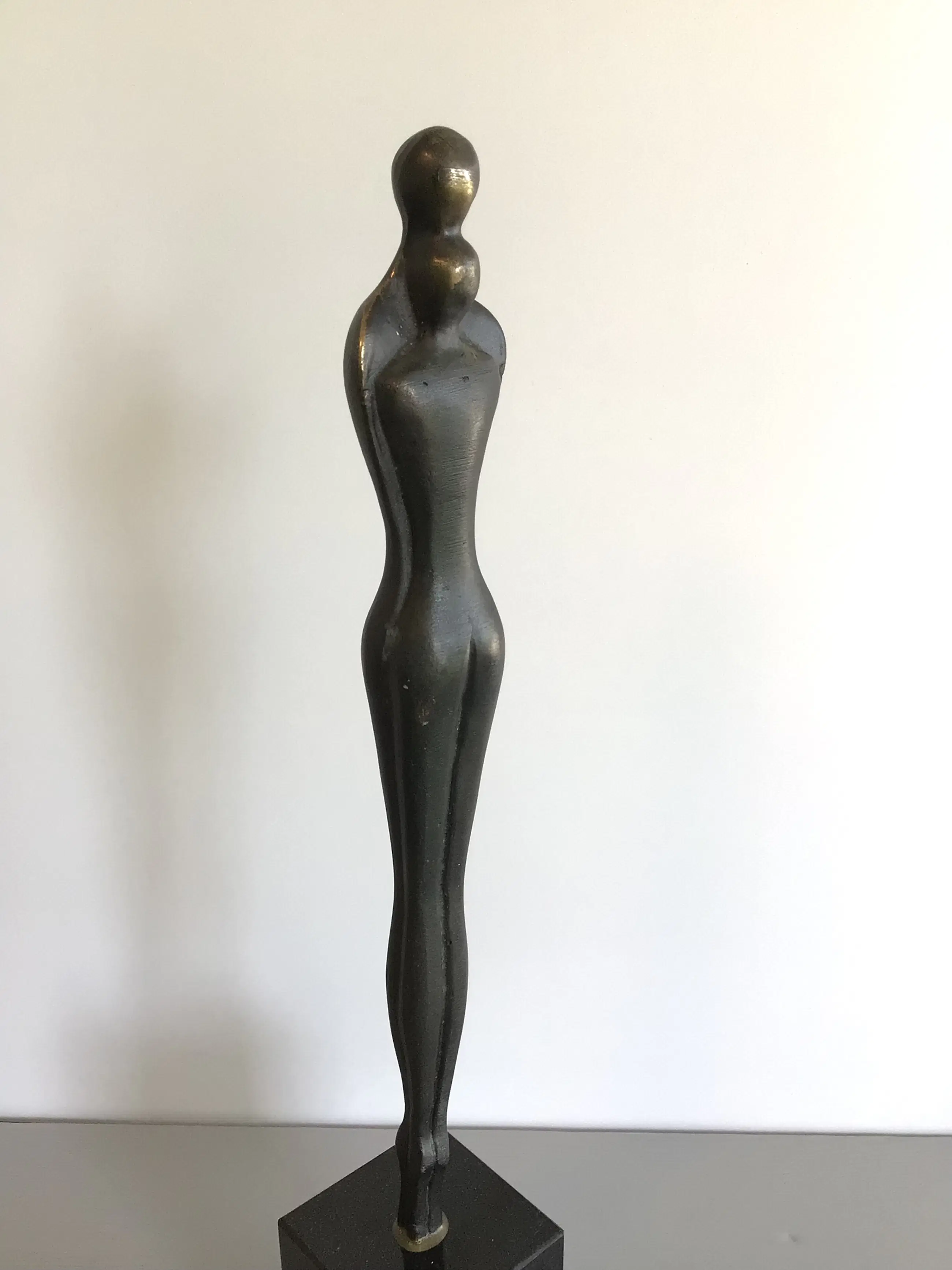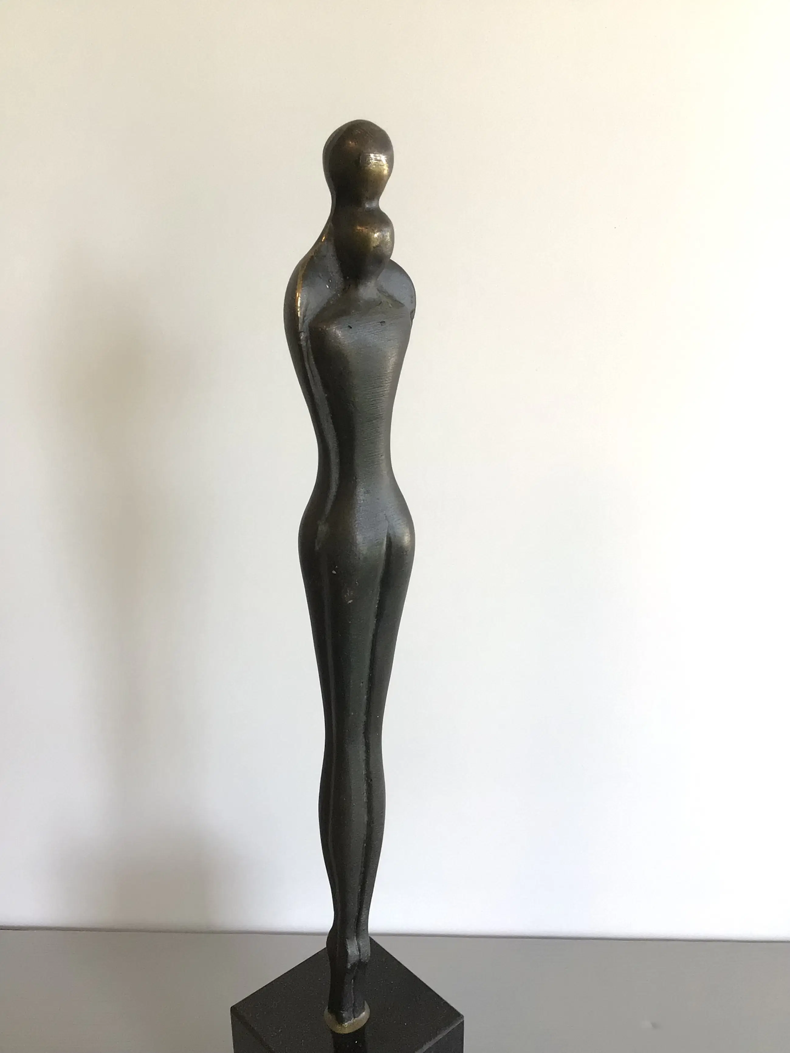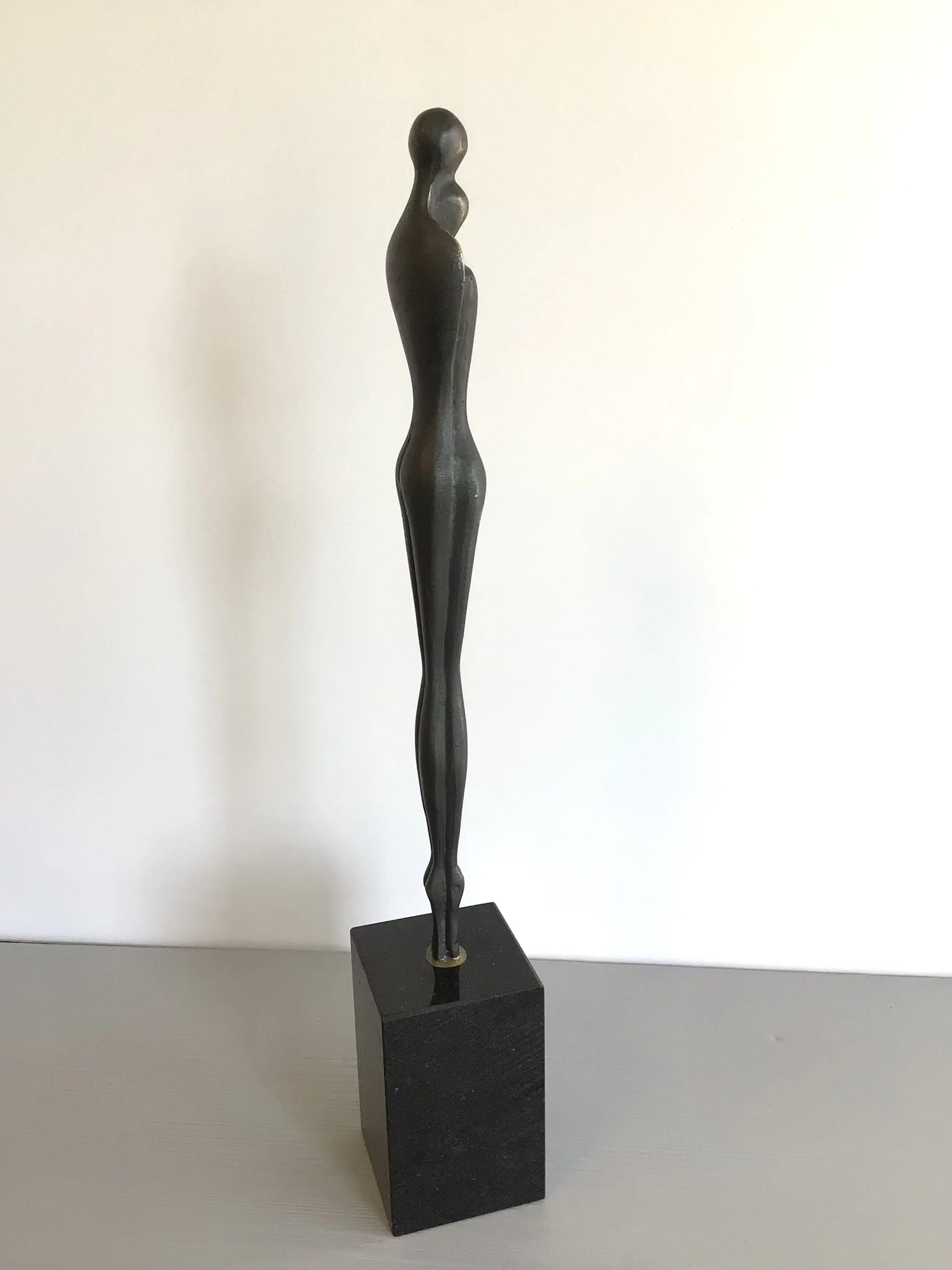 Zeer fraai en liefdevol sculptuur van twee geliefden dicht bij elkaar staand, ze vormen samen een eenheid. Titel “ Samen “ Achtergrondgedachte “ Samen een eenheid vormen in voor en tegenspoed…” Kunstenares: Corry Ammerlaan Materiaal: brons op fraaie hoge marmeren sokkel Hoogte : 32 cm Het beeld verkeert in zeer goede staat en wordt zorgvuldig verpakt verzonden.