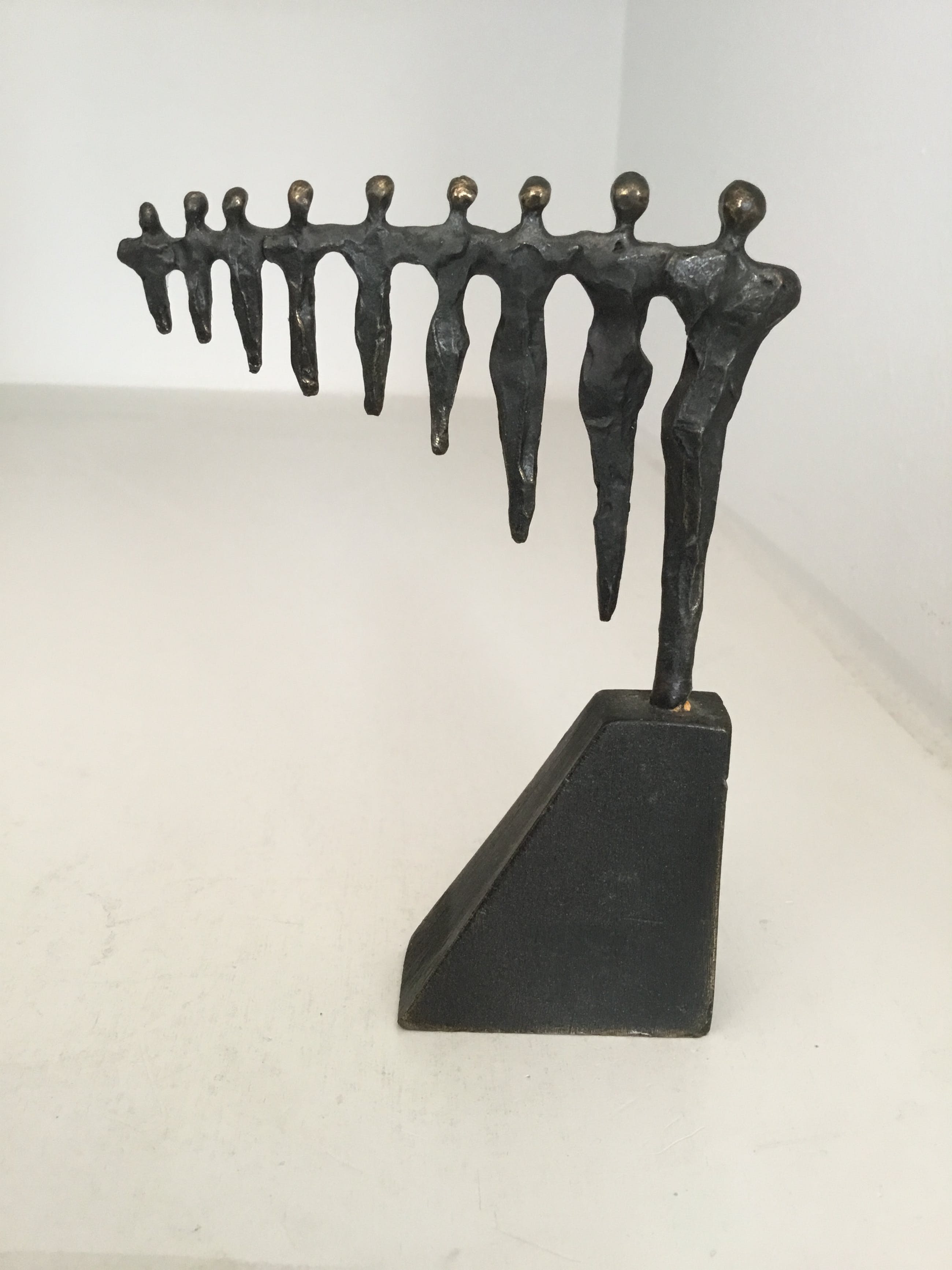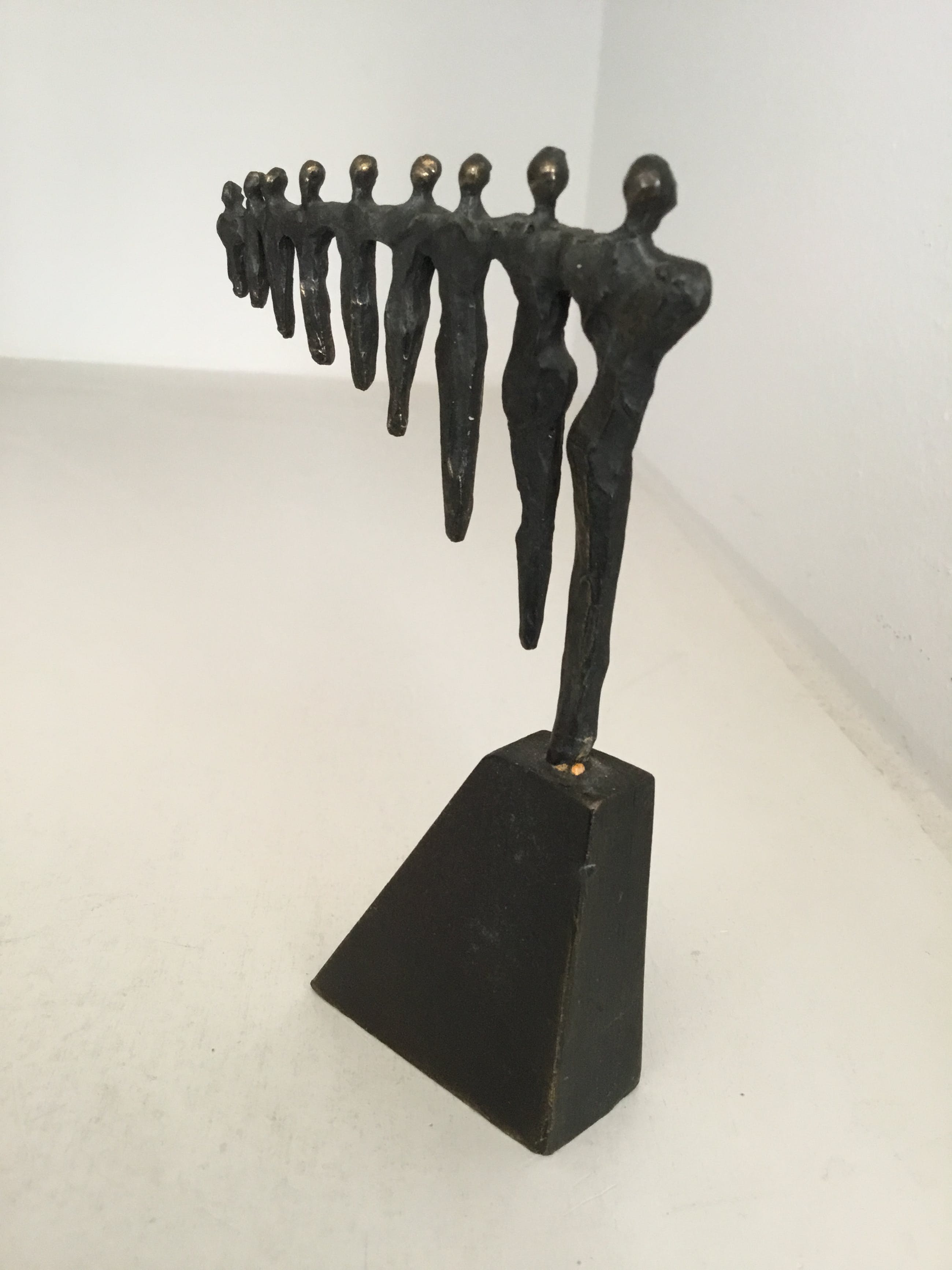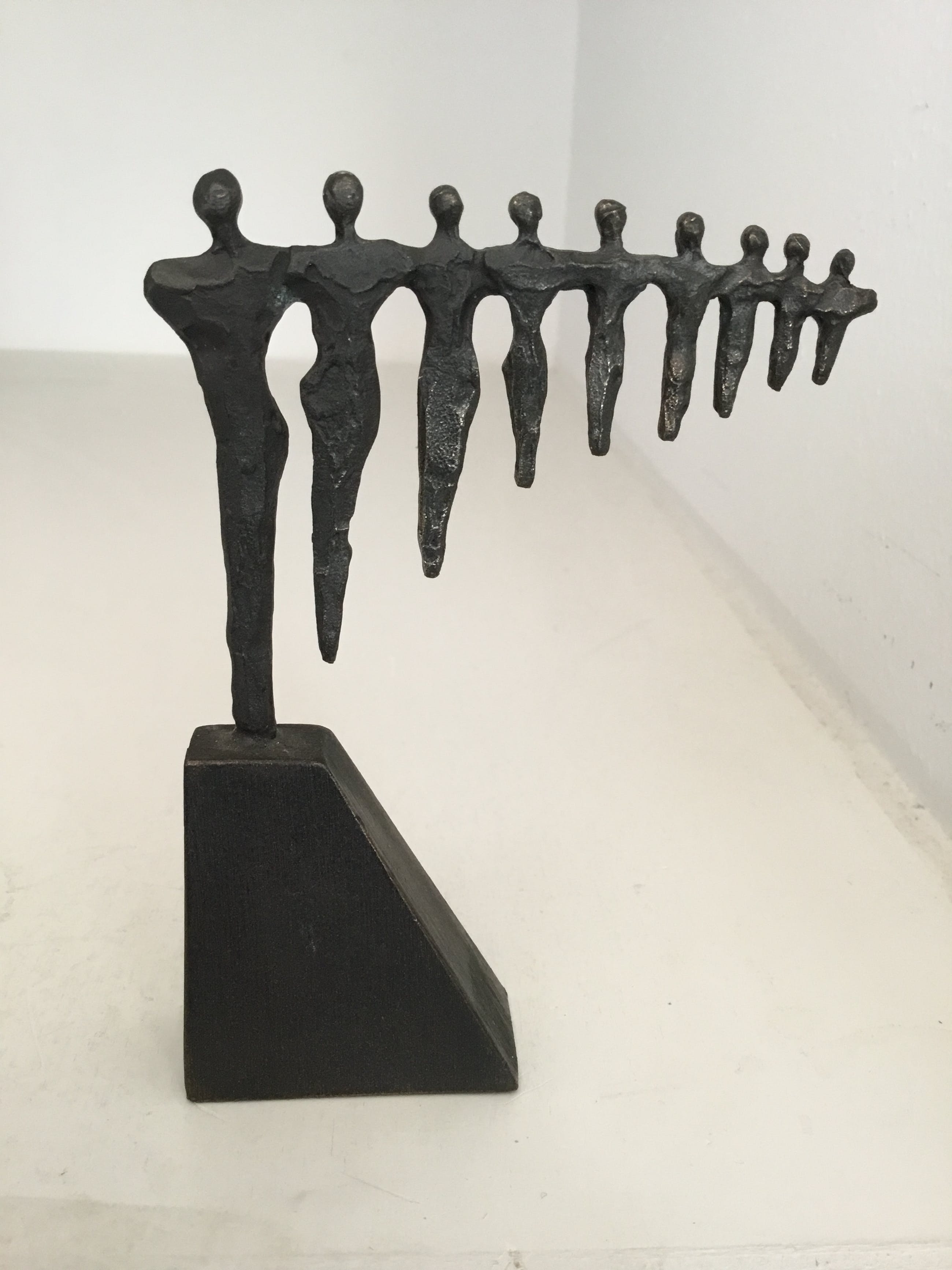 Mooi symbolisch sculptuur van negen mensfiguren die samen schouder aan schouder staan en zo samen een mooi geheel vormen. Kunstenares : Corry Ammerlaan Materiaal : brons Het sculptuur verkeert in goede staat en wordt zorgvuldig verpakt en aangetekend verzonden .