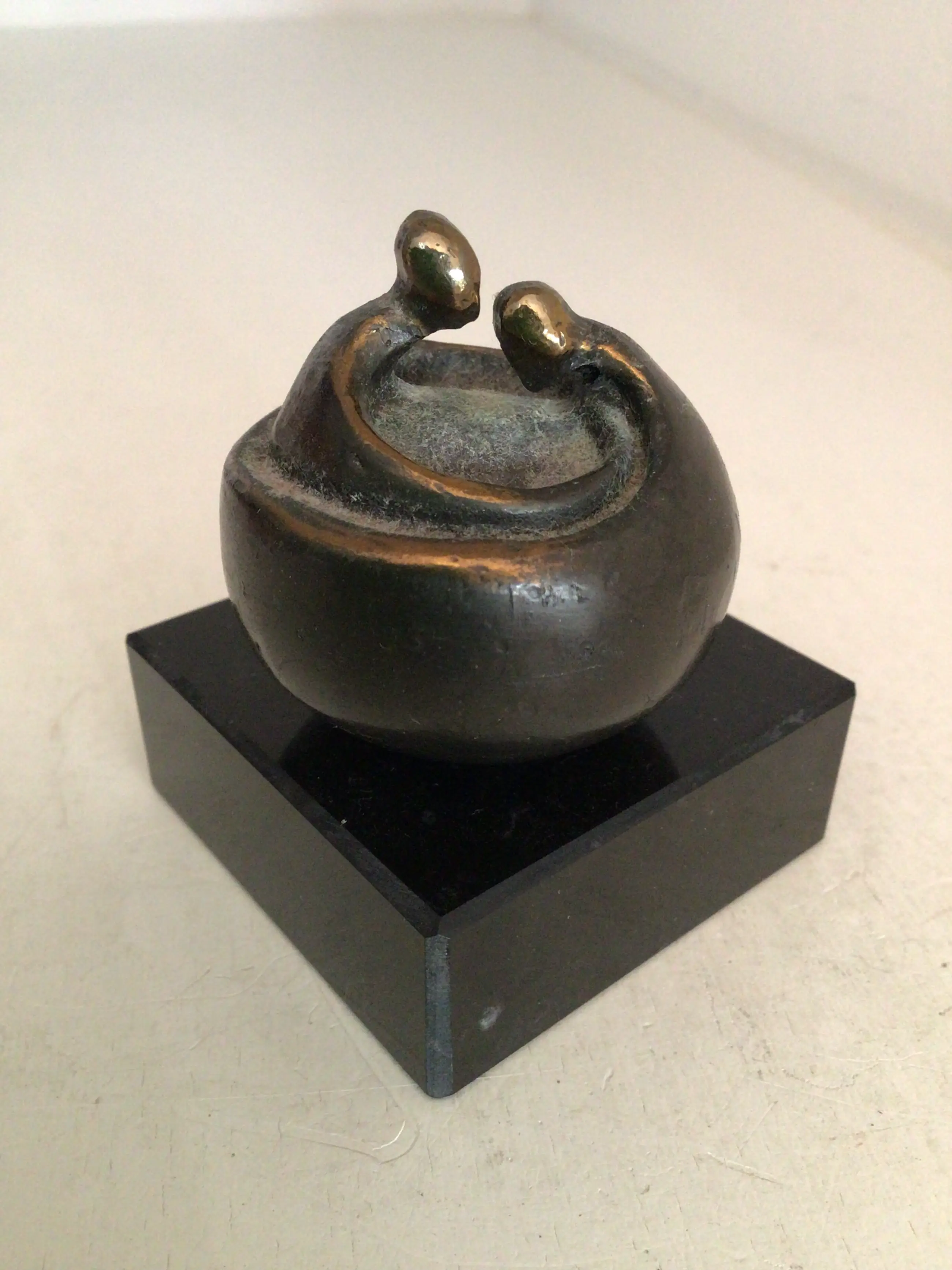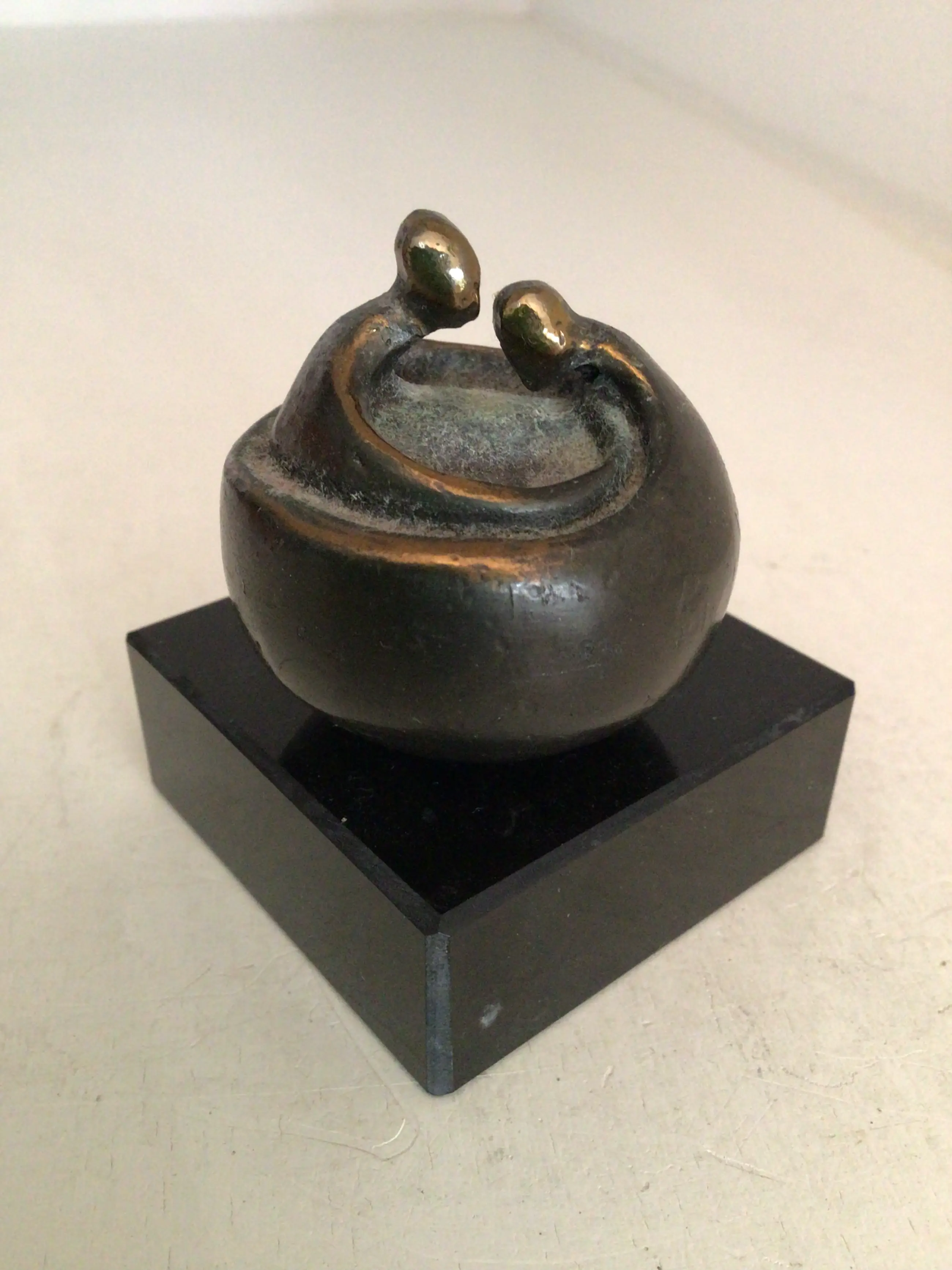 Fraai en symbolisch uitgevoerd sculptuur van twee mensfiguren in een innige omhelzing. Titel “ Take care “ Kunstenares: Corry Ammerlaan Afmetingen: 7 x 5 cm Materiaal: Alloy op zwart marmeren sokkel ( het beeld staat los op de sokkel) Het beeld verkeert in goede staat en wordt zorgvuldig verpakt en aangetekend verzonden.