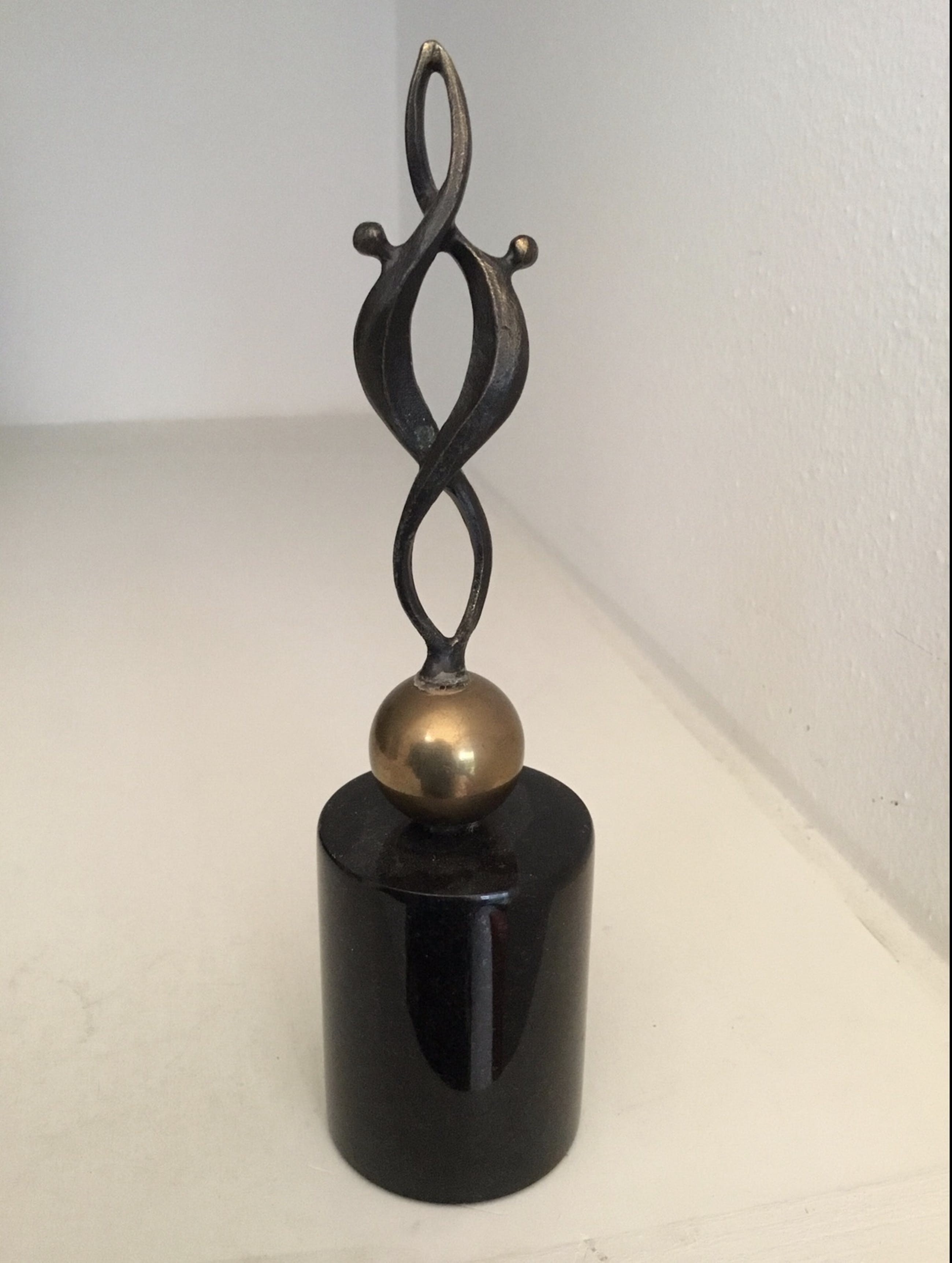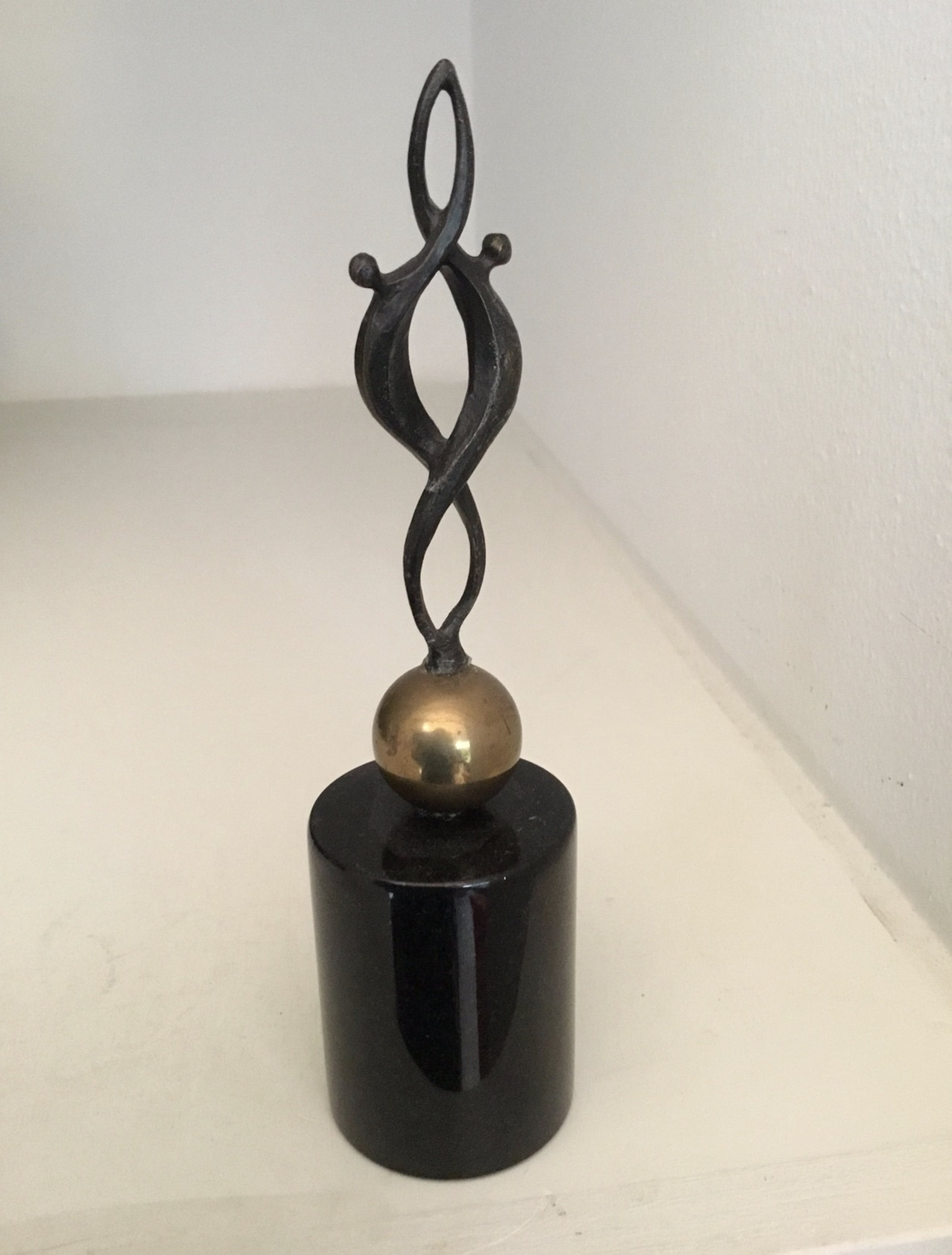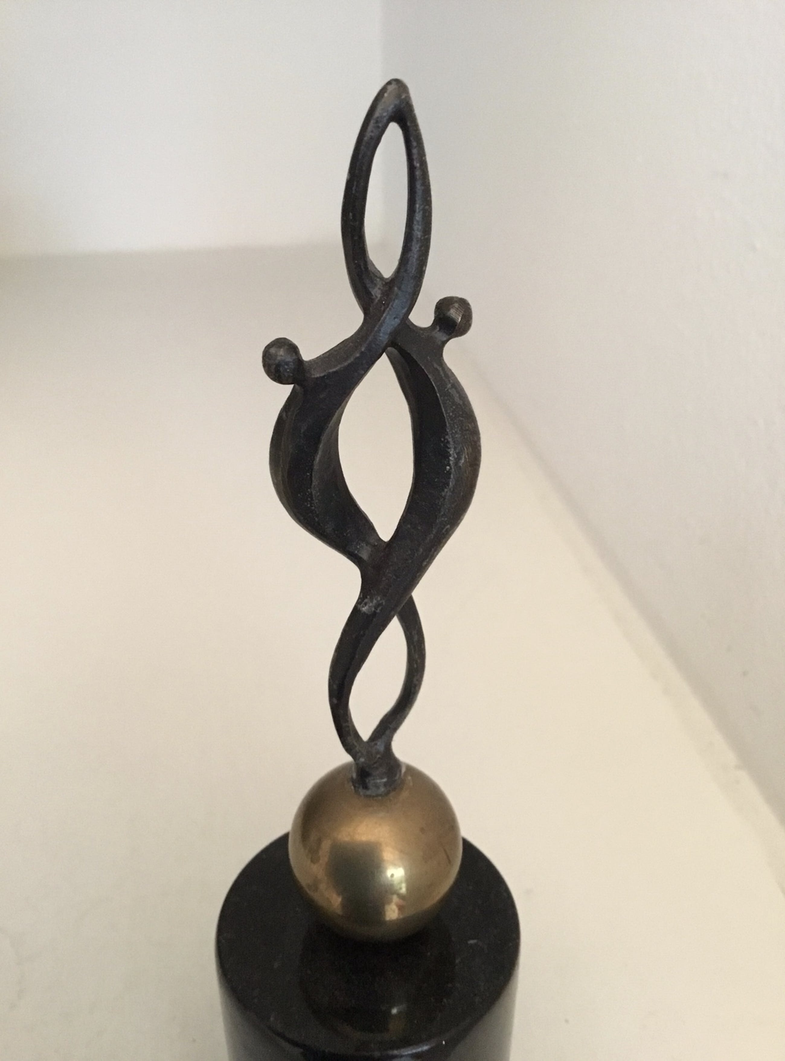 Mooi symbolisch sculptuur van twee mensfiguren samen staande op een gouden bol Titel “ Together “ Hoogte : 17 cm Materiaal : brons op marmeren voet Het sculptuur verkeert in zeer goede staat en wordt zorgvuldig verpakt en aangetekend verzonden .
