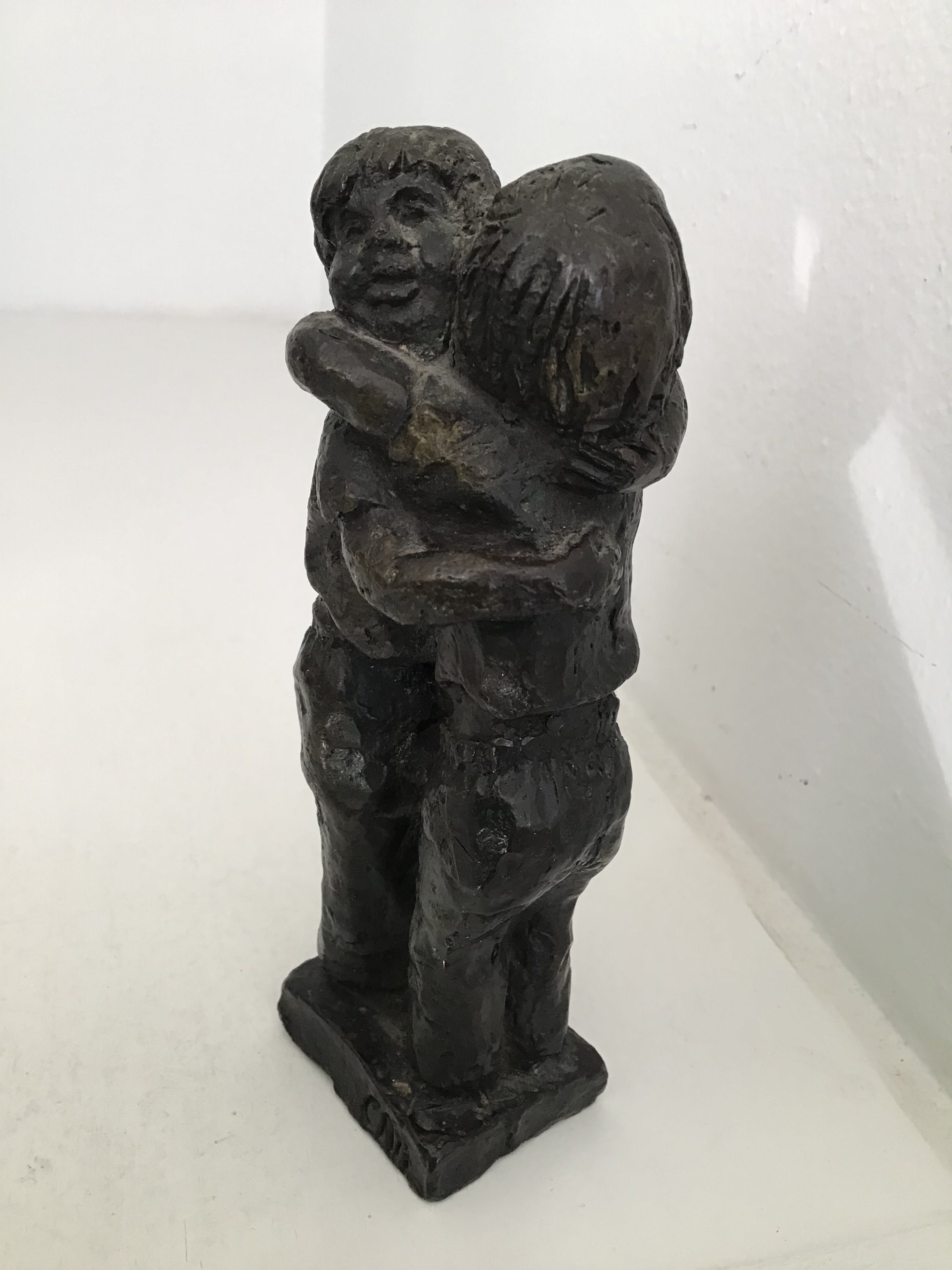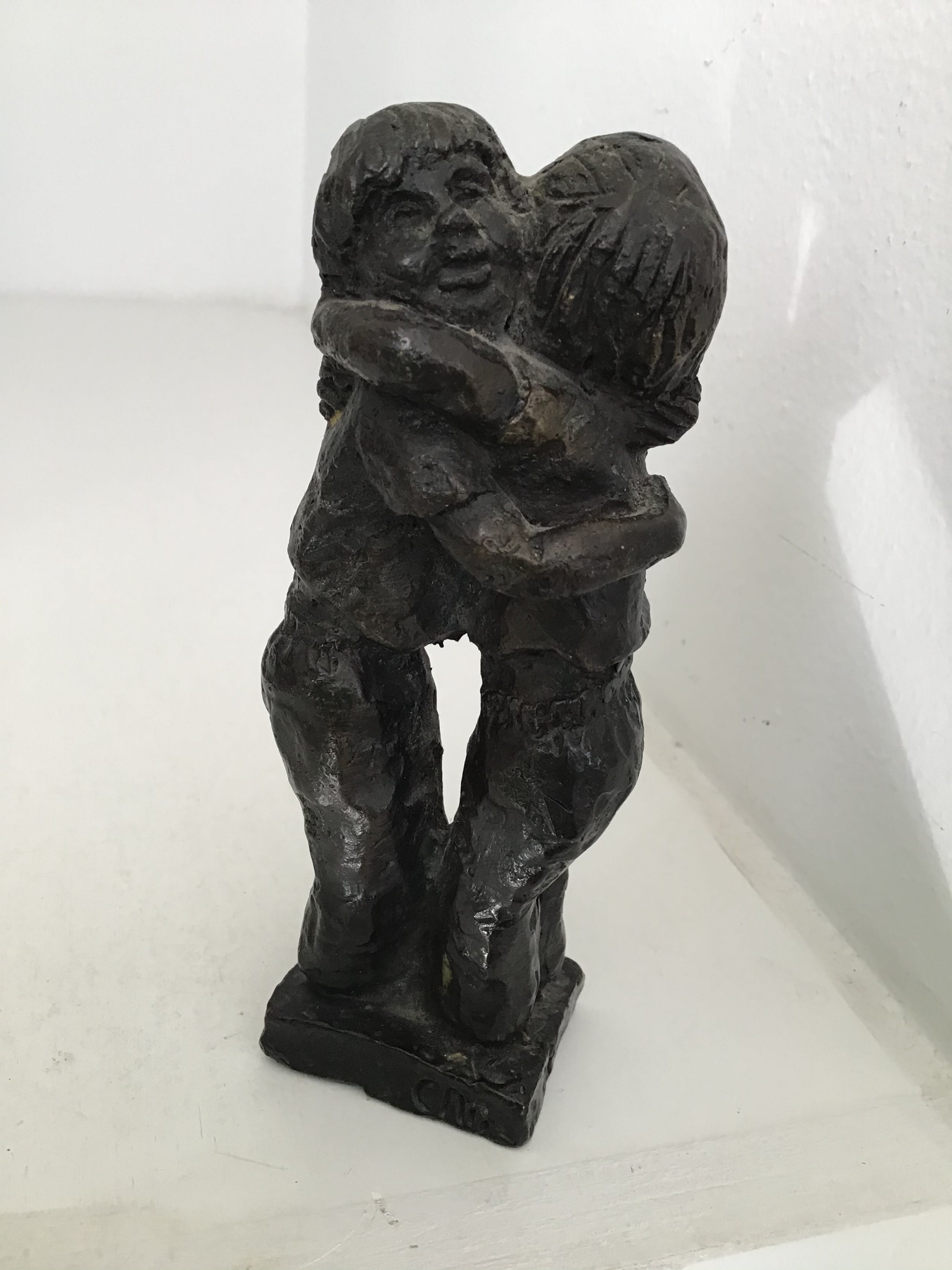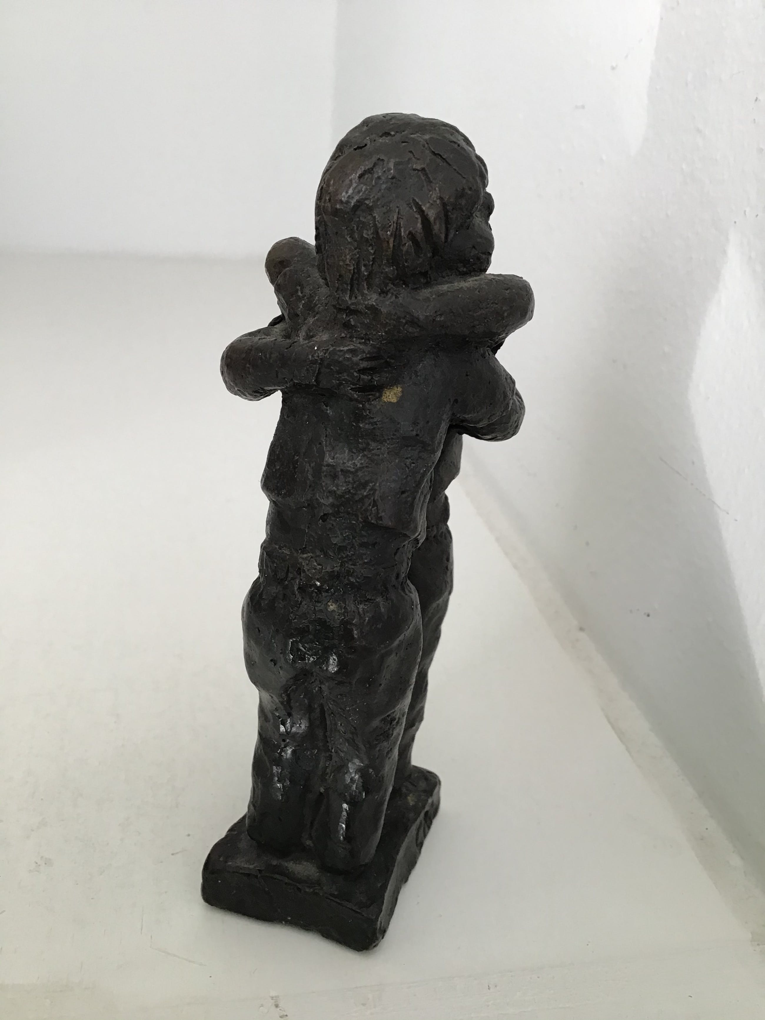 Mooi symbolisch sculptuur van twee kinderen in een innige omhelzing. Titel “ Vriendschap “ Kunstenares: Corry Ammerlaan Beeld is gesigneerd: CAN Hoogte : 14 cm Materiaal: verbronsd metaal Het beeld verkeert in goede staat en wordt zorgvuldig verpakt en aangetekend verzonden