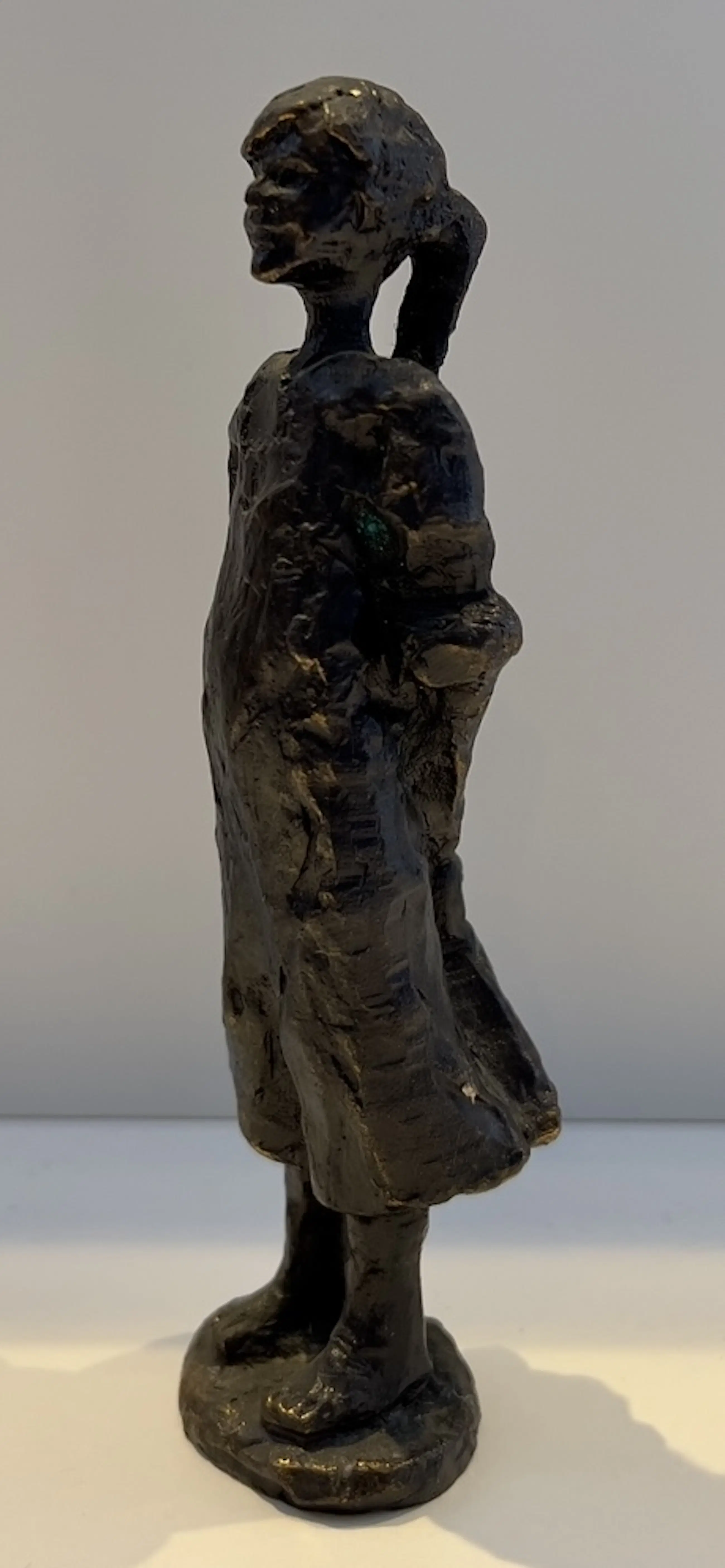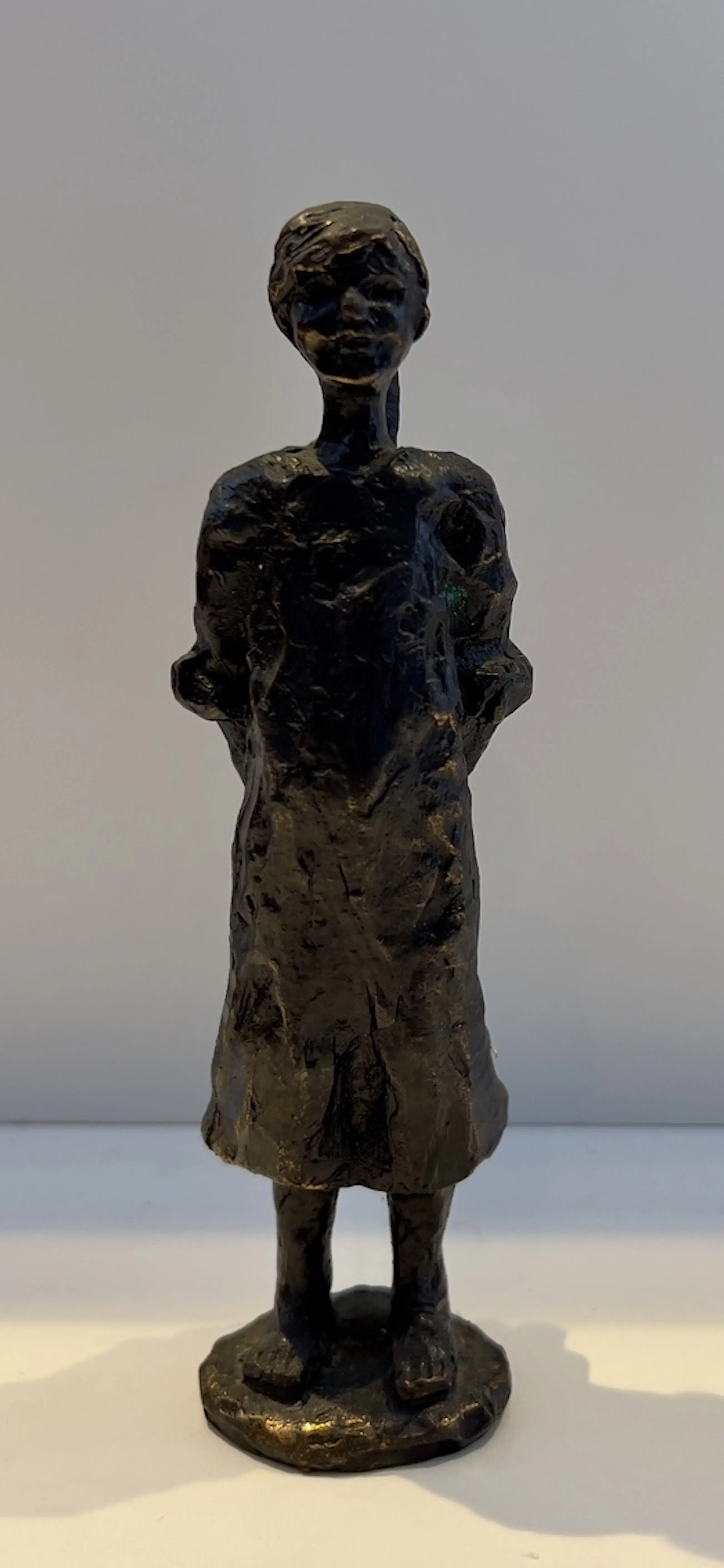 "Geinspireerd door kostbare herinneringen" vervaardigde Corry Ammerlaan dit beeldje. Sophietje die haar poppentijd bijna achter zich laat, kijkt fier de wereld in.