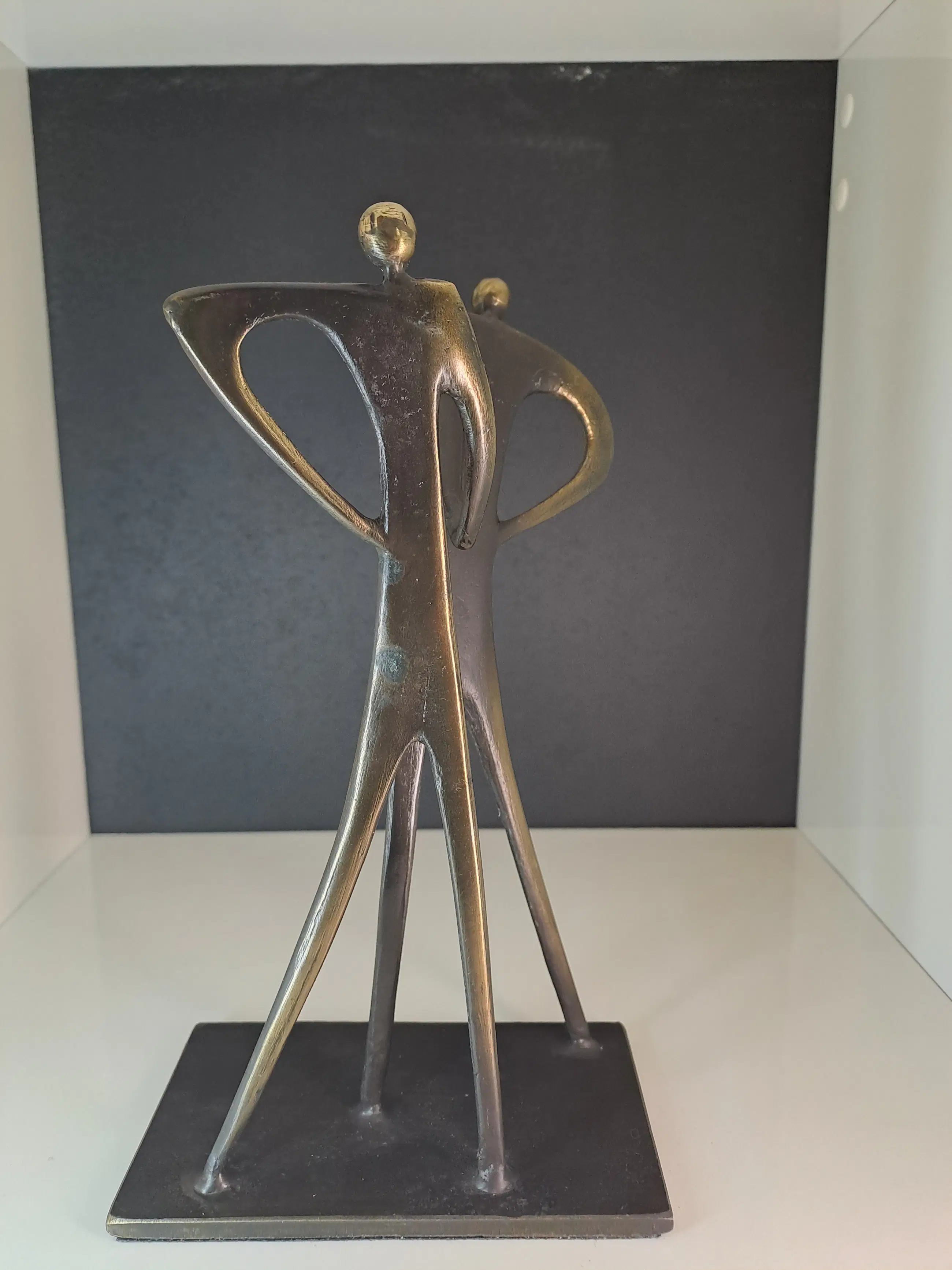 Bijzonder mooie bronzen beeld op zwarte metalen voet van 13 x 7.5 cm