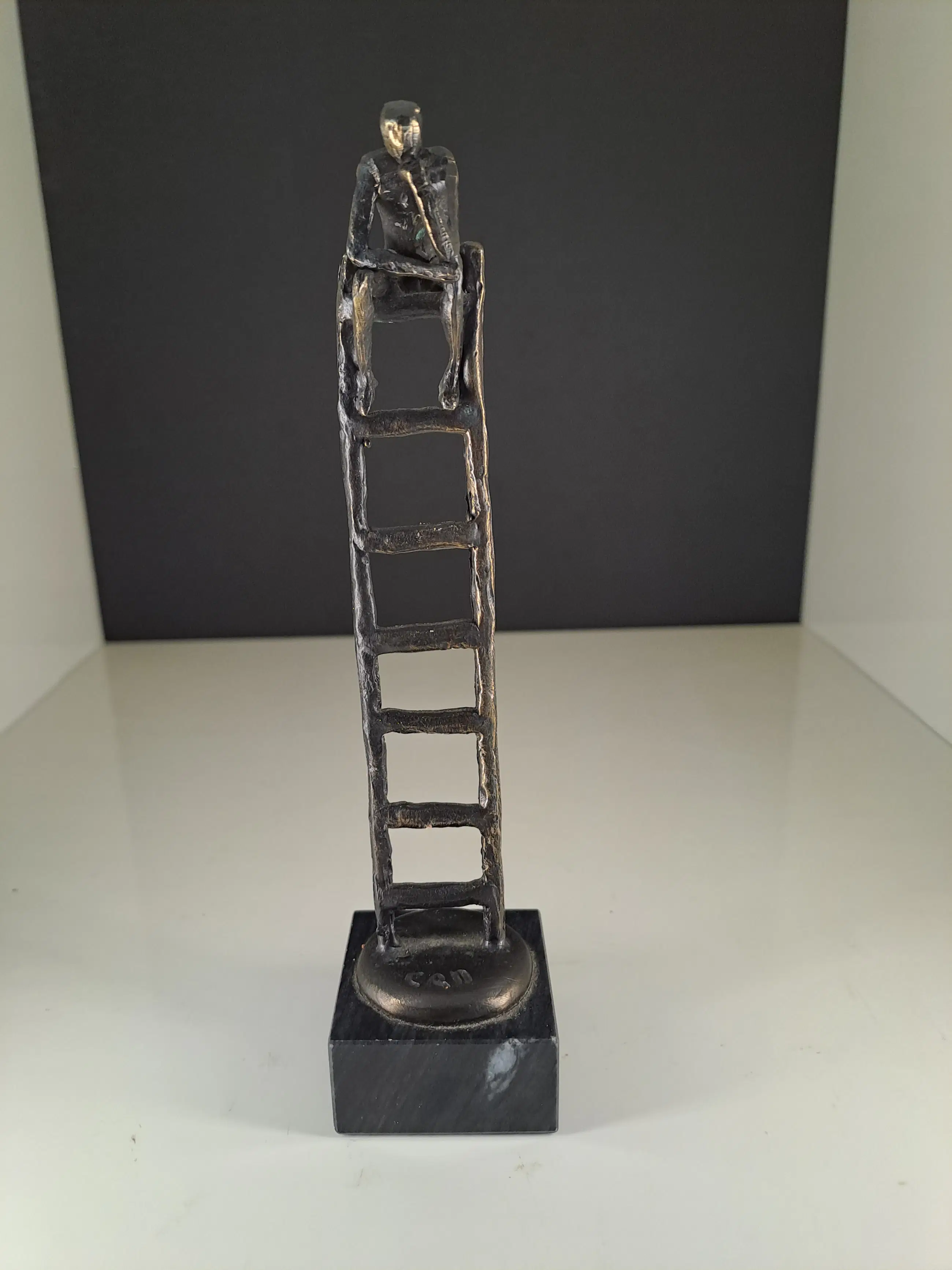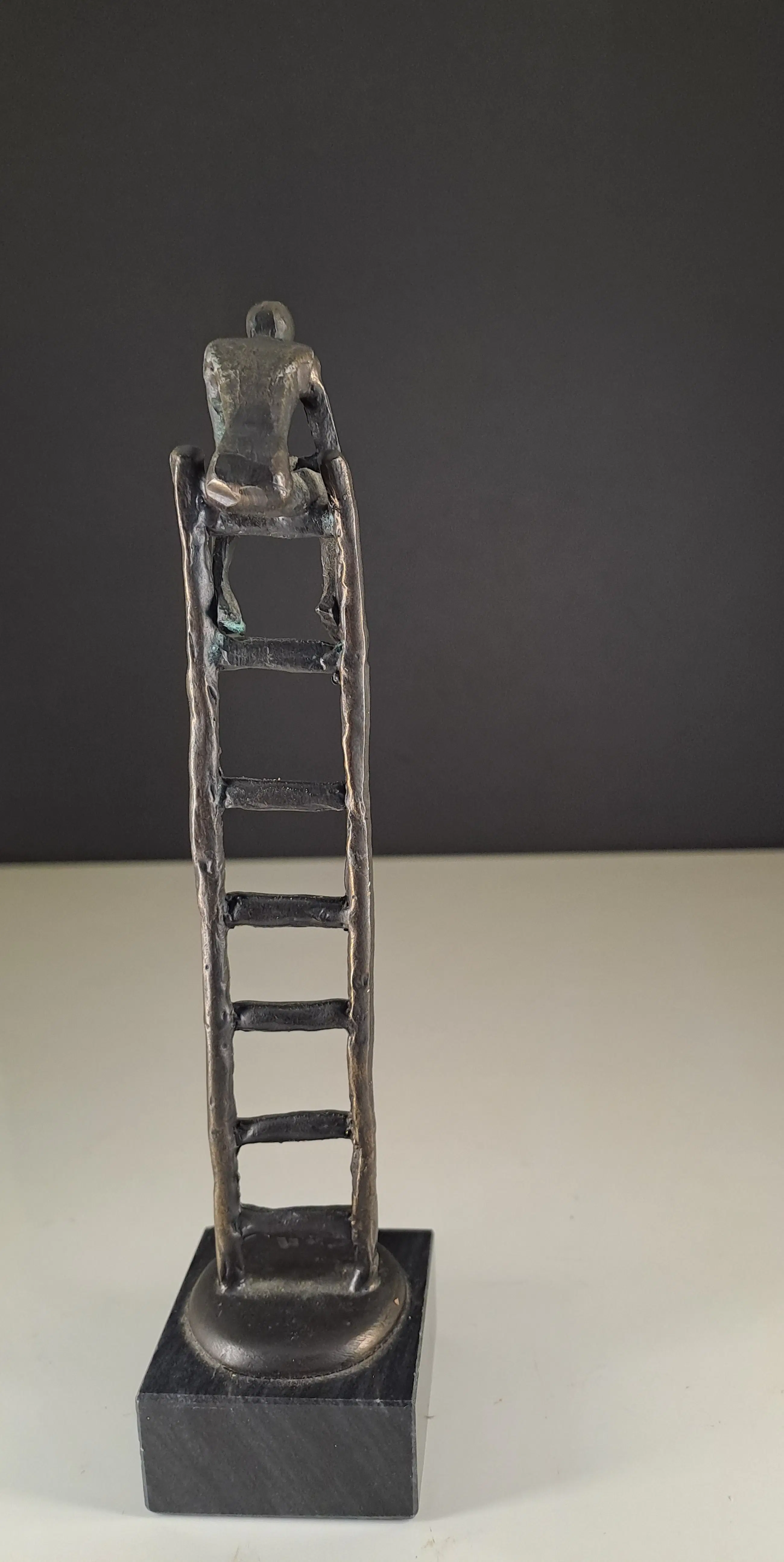 Fraai bronzen beeldje genaamd de Denker 7 treden hoog.