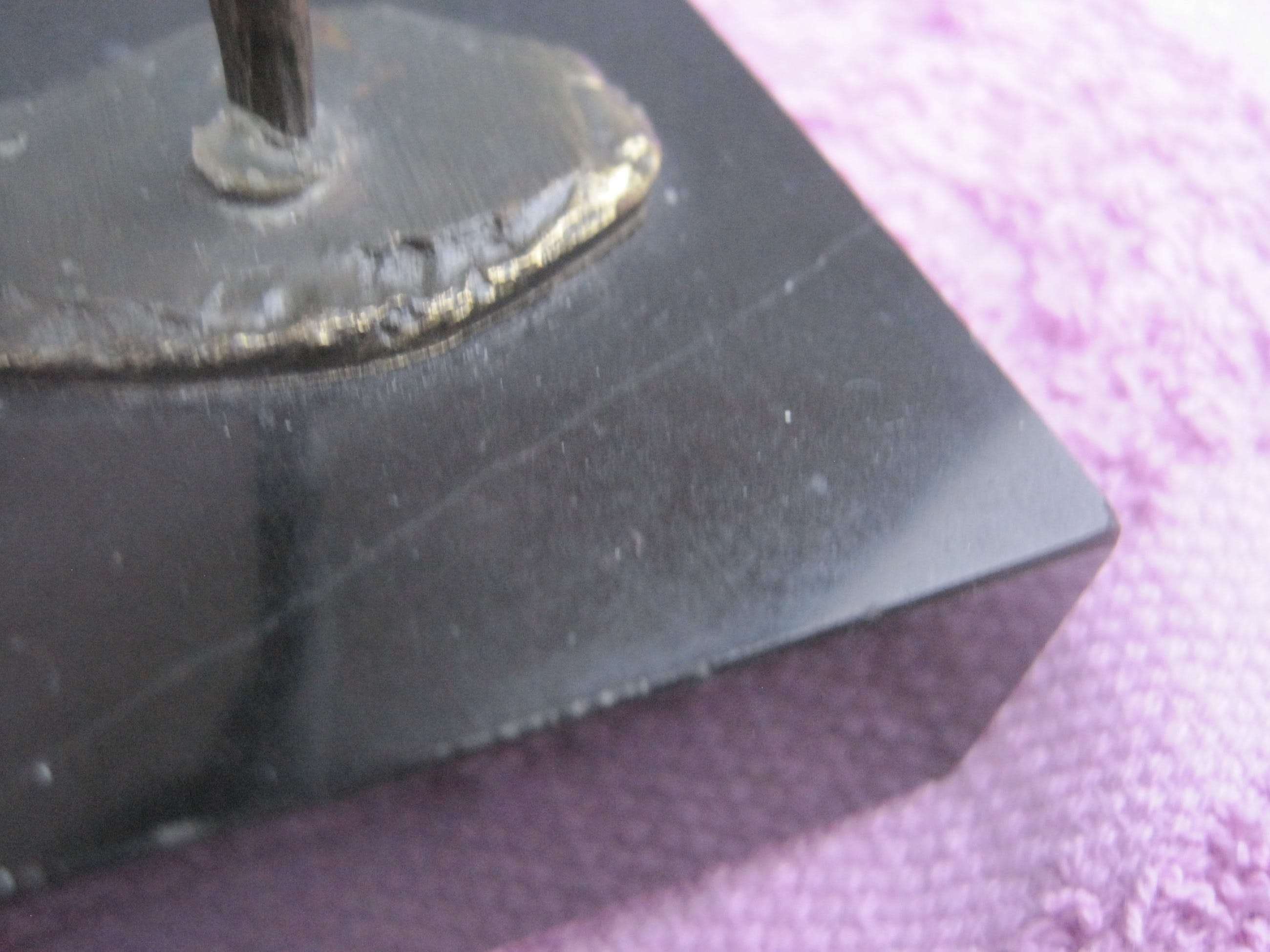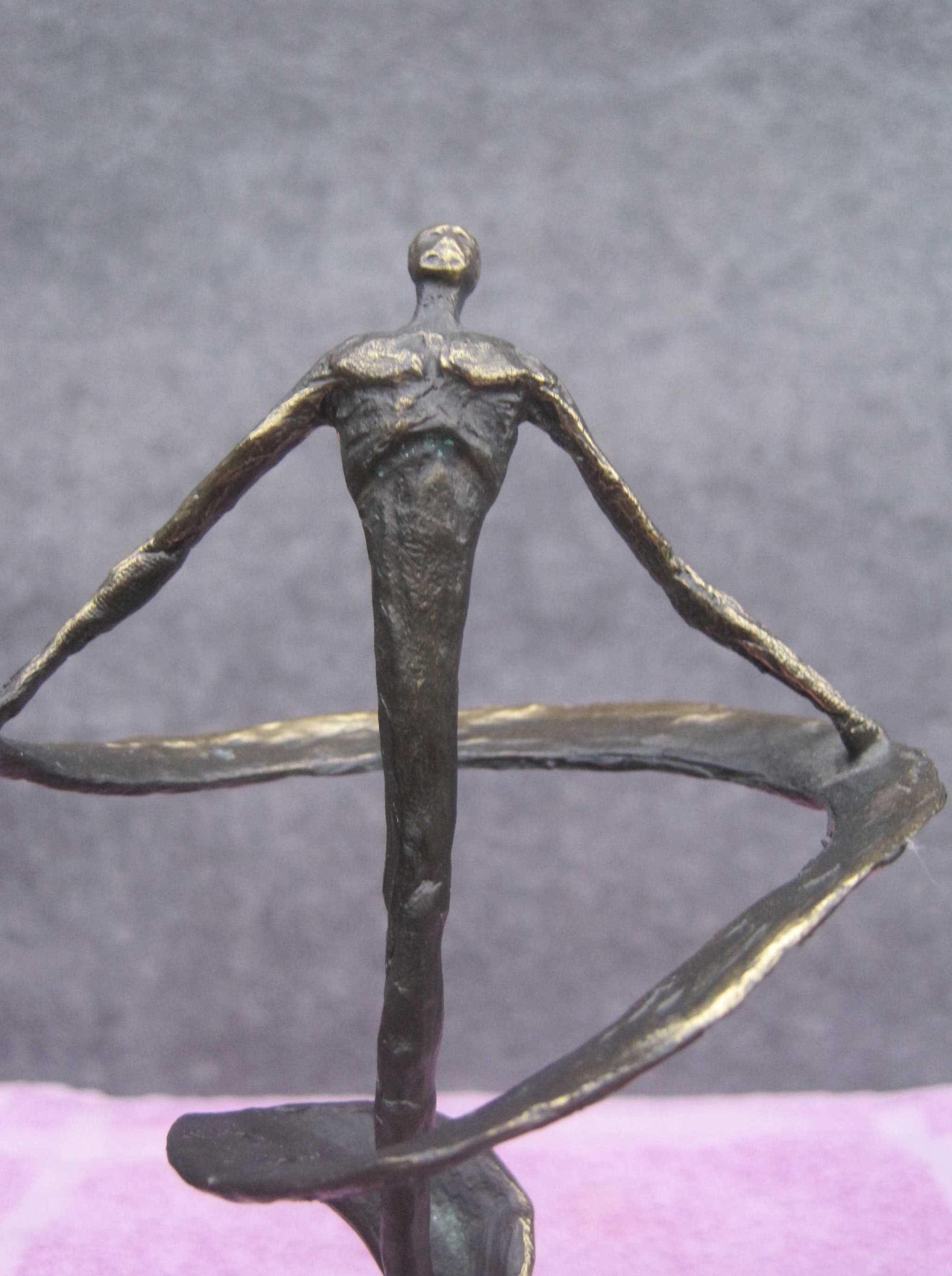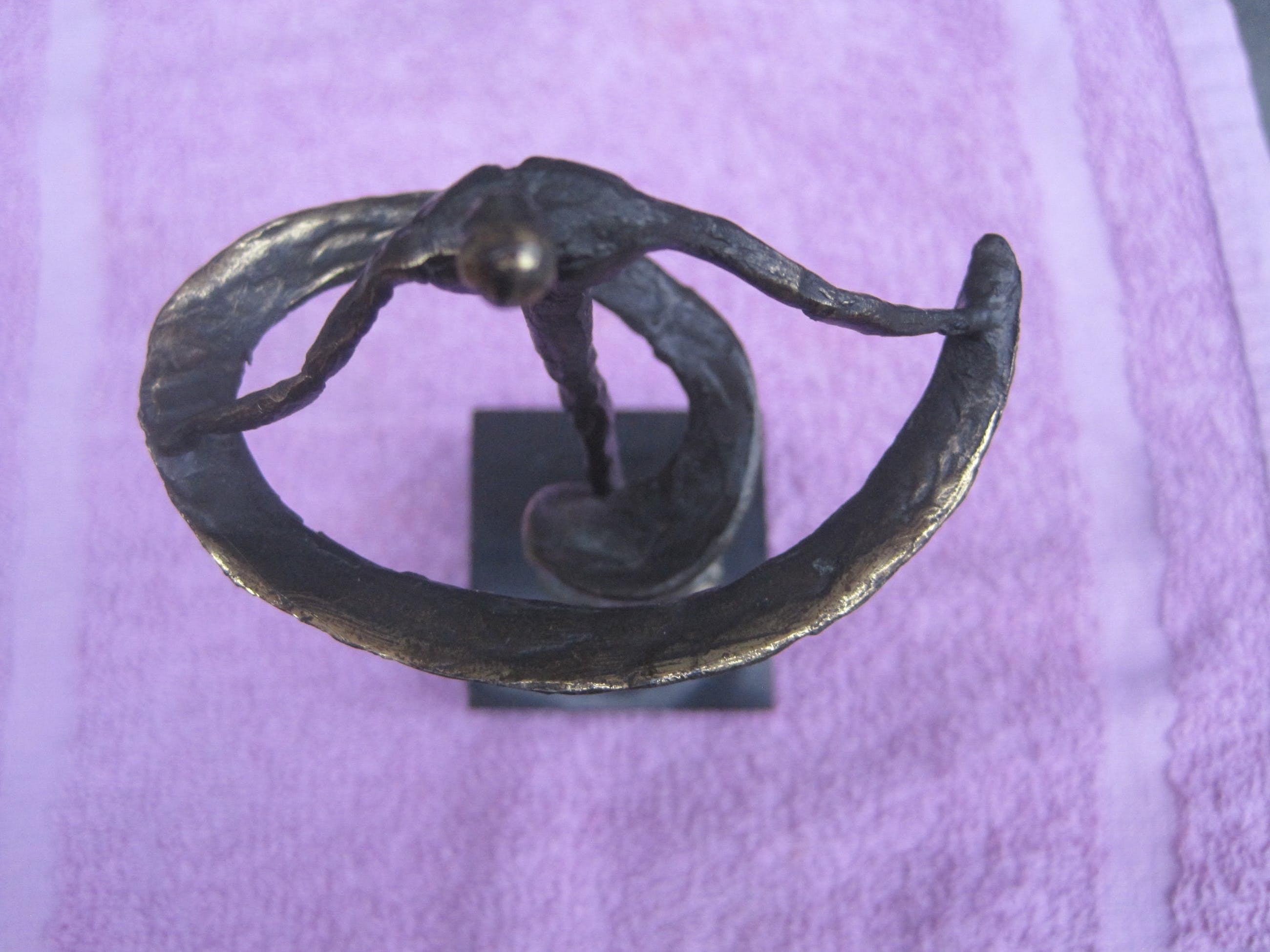 Een voor mij onbekend heerlijk luchtig en zwierig beeldje van Corry Ammerlaan-van Niekerk. Het beeldje is gesigneerd in de voet, de A is moeilijk leesbaar.
