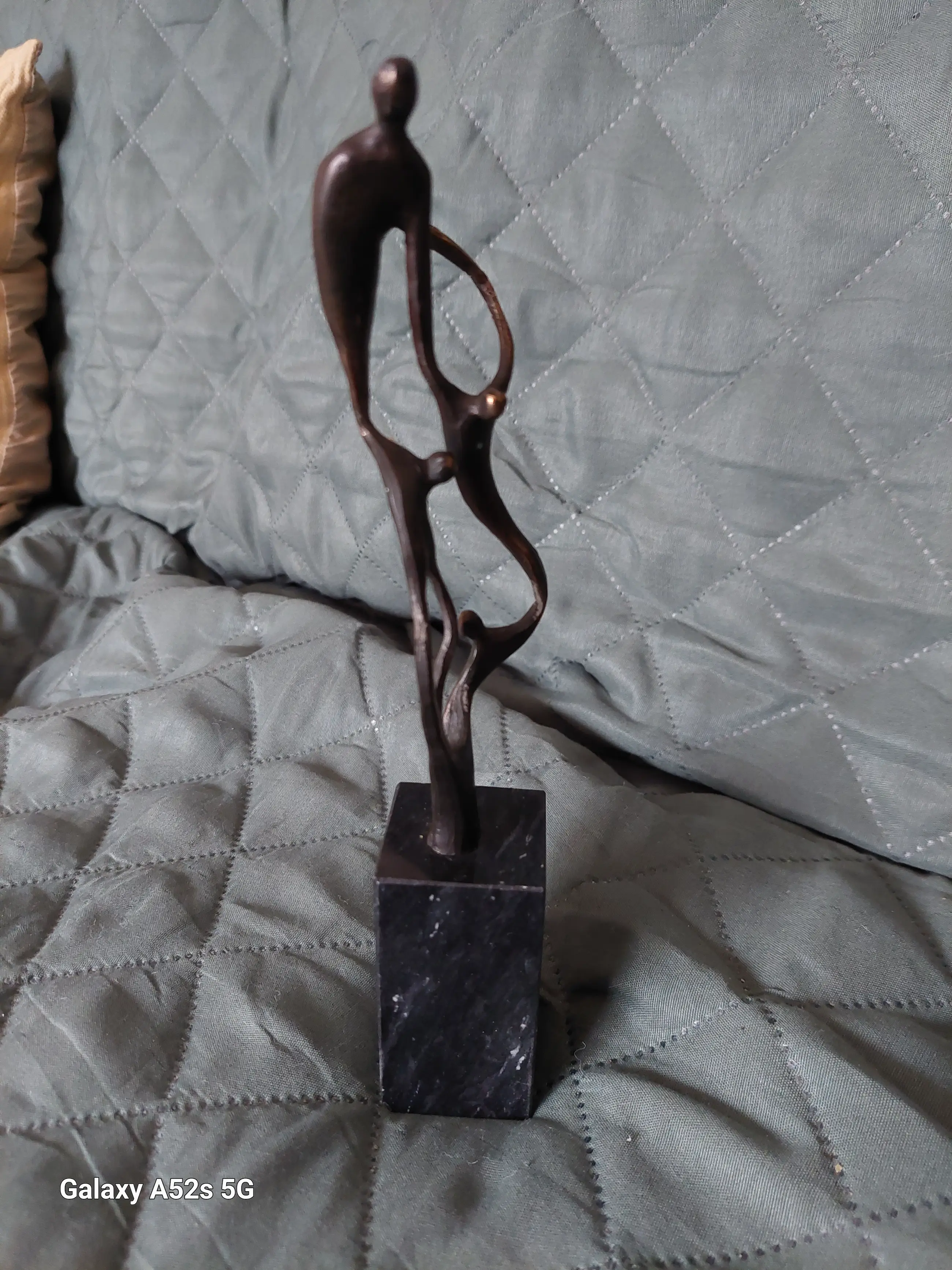Prachtig brons beeldje op marmeren voet. Marmeren voet heeft 2 kleine beschadigingen. Het beeldje heeft de naam Toekomst door Samenwerken-sold.