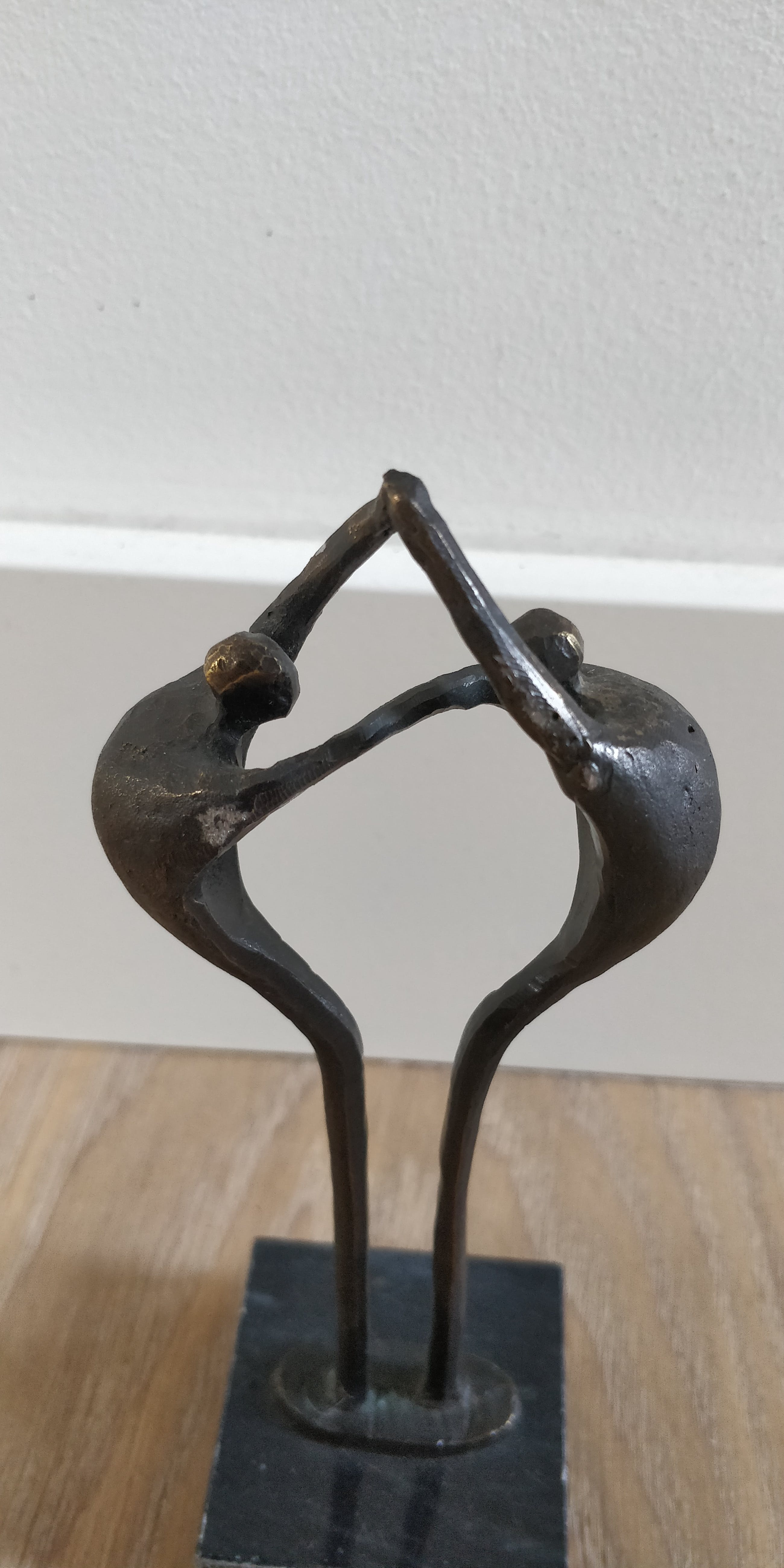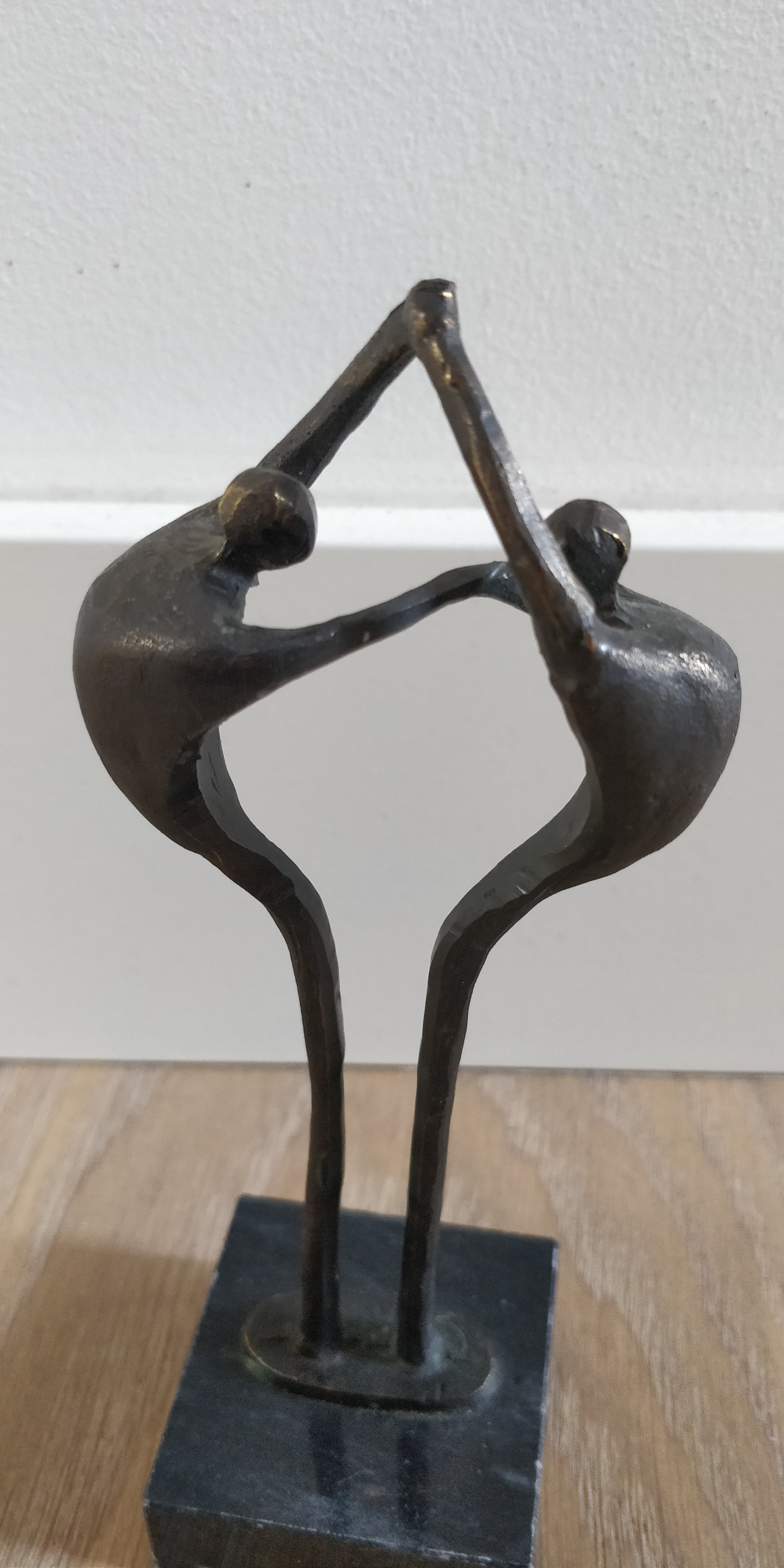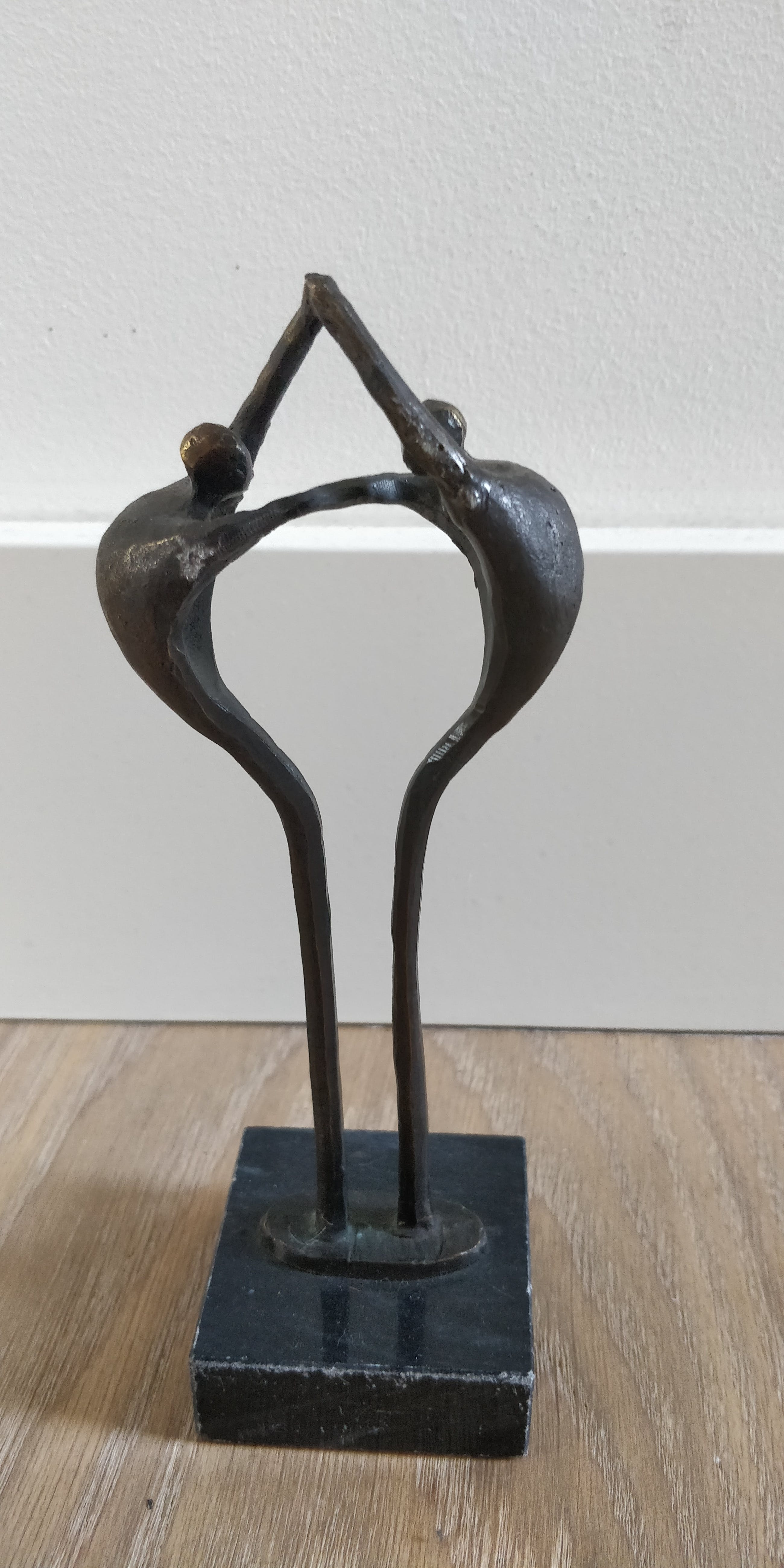 Mooi beeldje van Corry Ammerlaan. Dit object weerspiegelt de balans tussen de menselijke factoren die noodzakelijk zijn voor een duurzame relatie. Afmetingen zijn exclusief de marmeren sokkel.