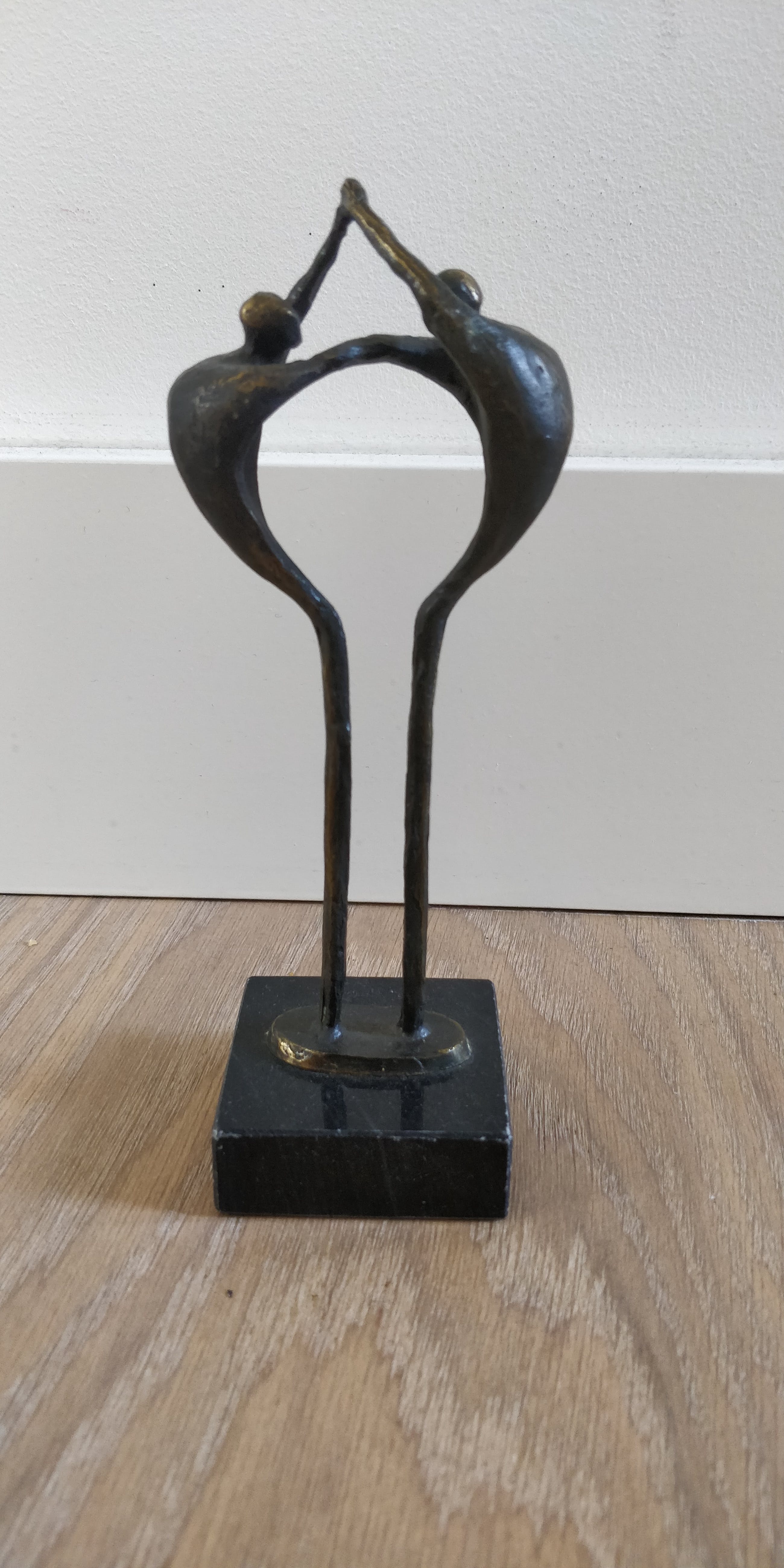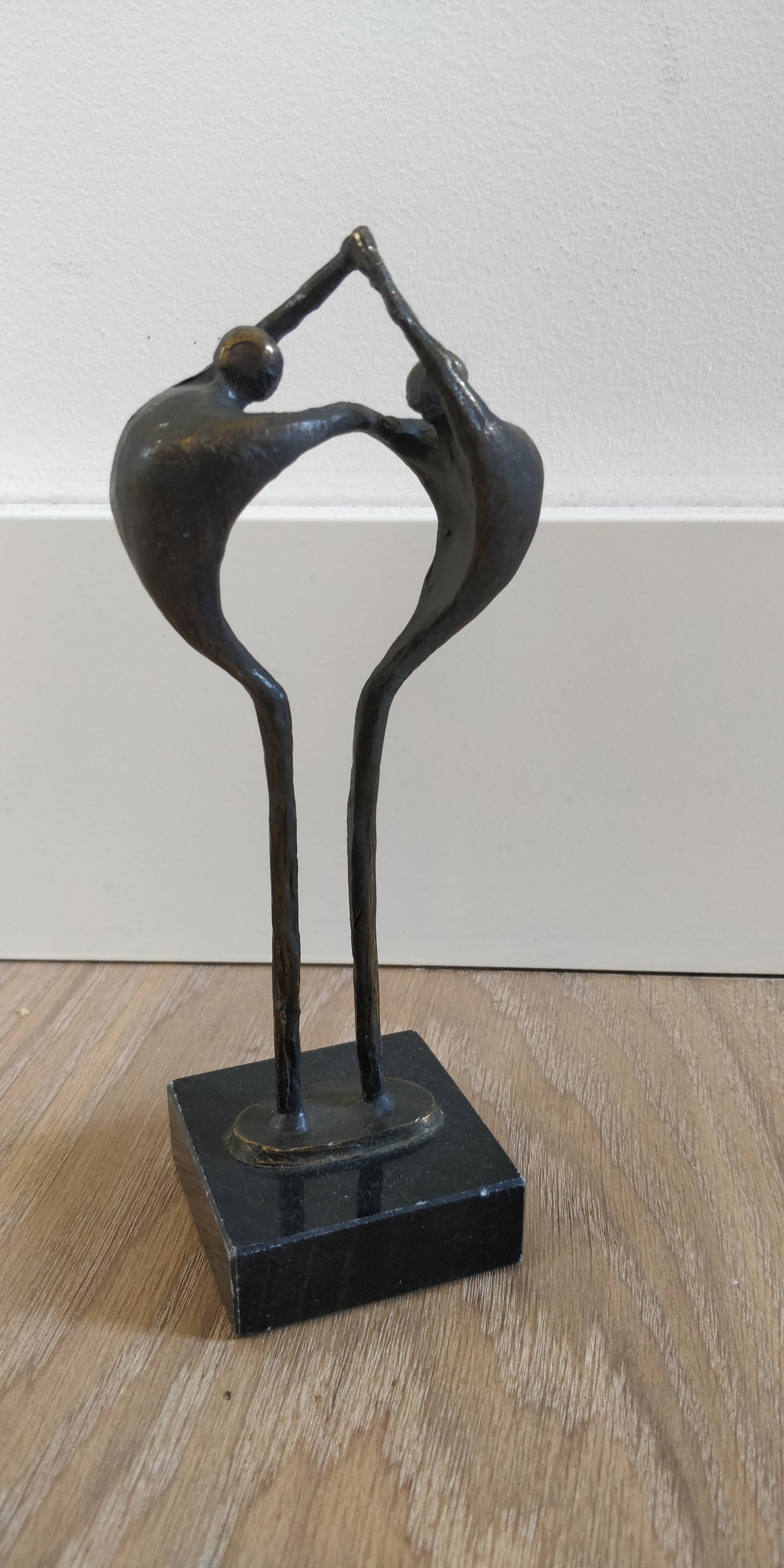 Mooi beeldje van Corry Ammerlaan. Dit object weerspiegelt de balans tussen de menselijke factoren die noodzakelijk zijn voor een duurzame relatie. Afmetingen zijn exclusief de marmeren sokkel.