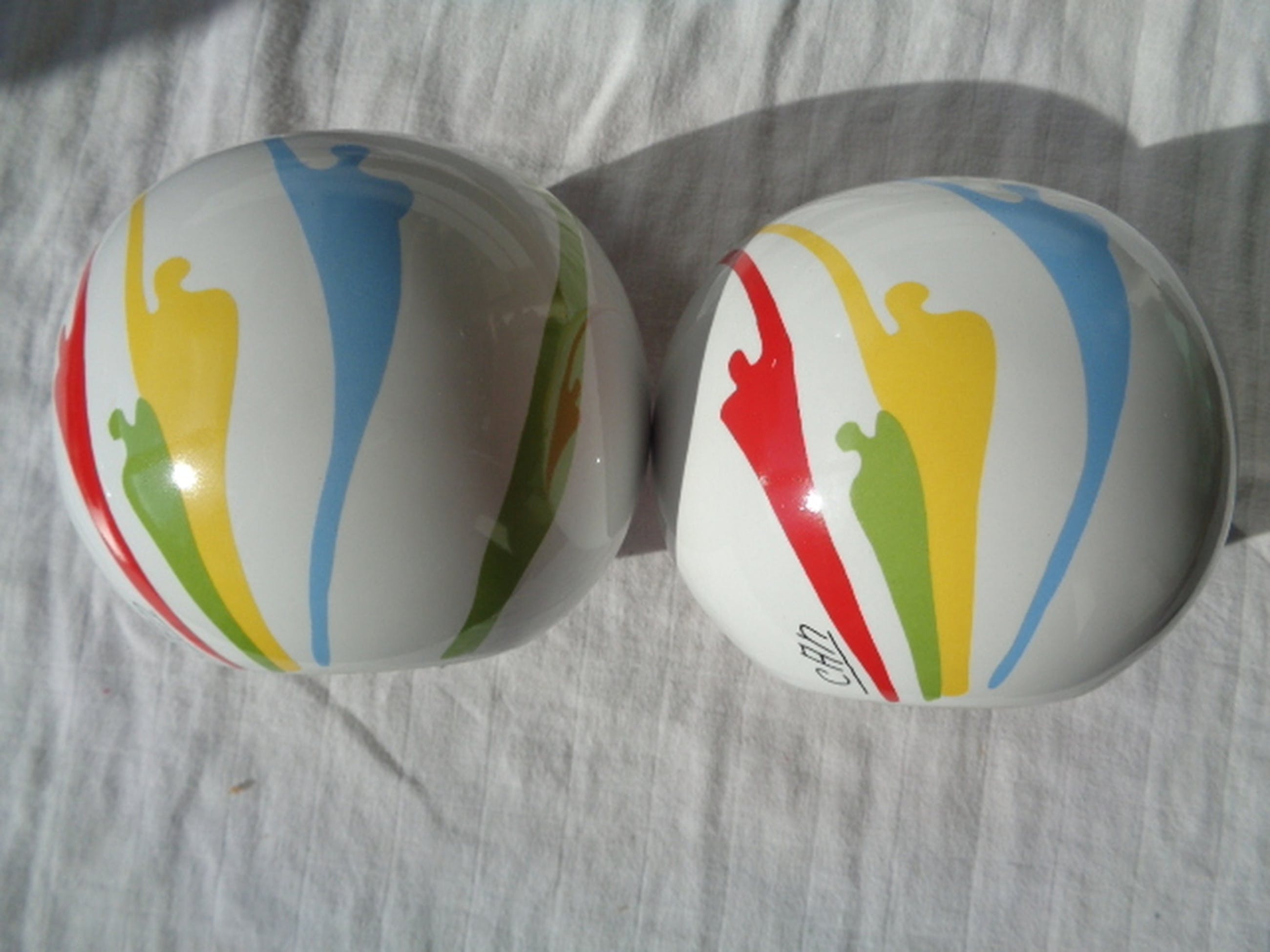 Artihove set, 2 Bol Kandelaars, porselein met opdruk.