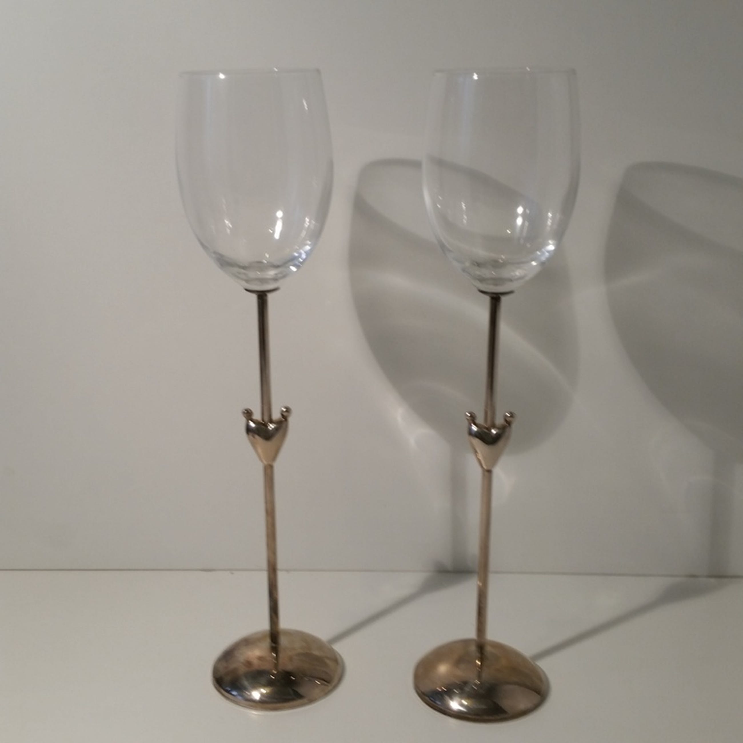 2 stuks Corry Ammerlaan Van Niekerk. kristallen verzilverde wijnglas