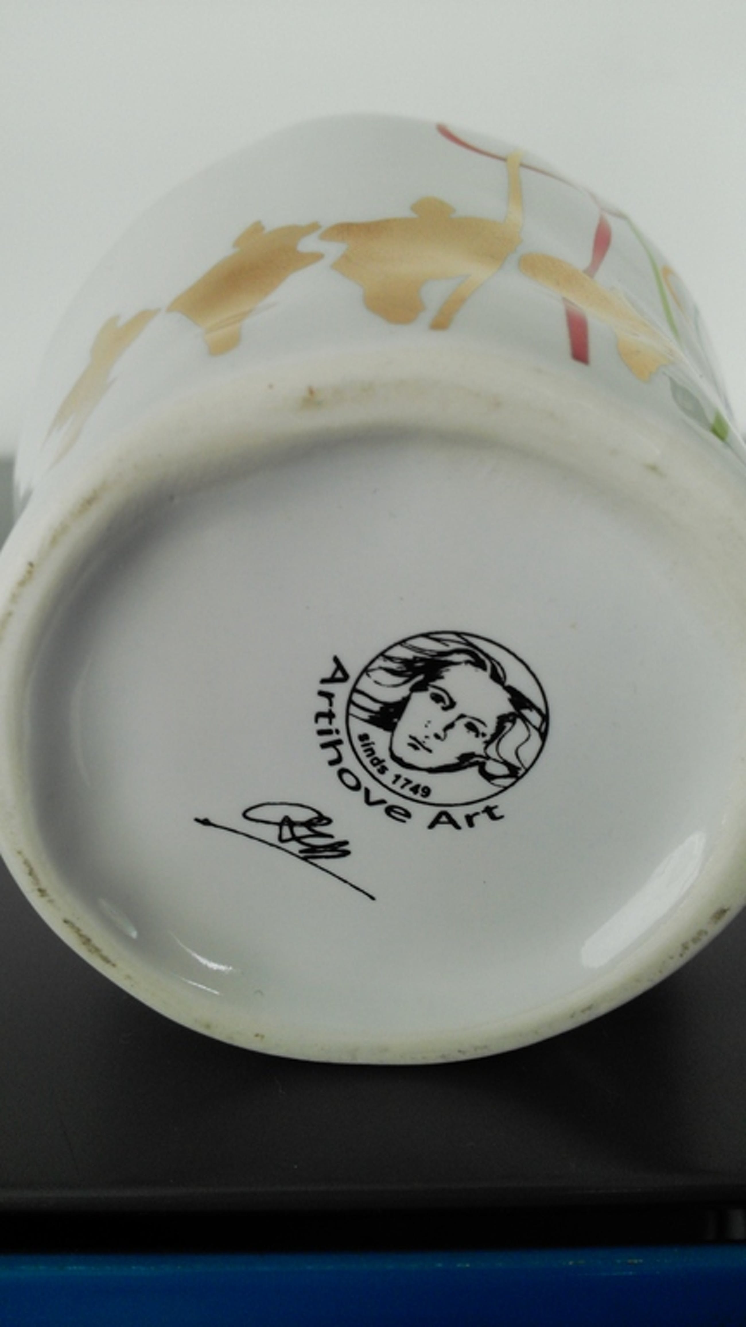 Gesigneerd CAN (Corry Ammerlaan van Niekerk(Artistiek Directeur Artihove)) 4 eigenzinnige bekers die gestapeld een vrolijke afbeelding vormen.
