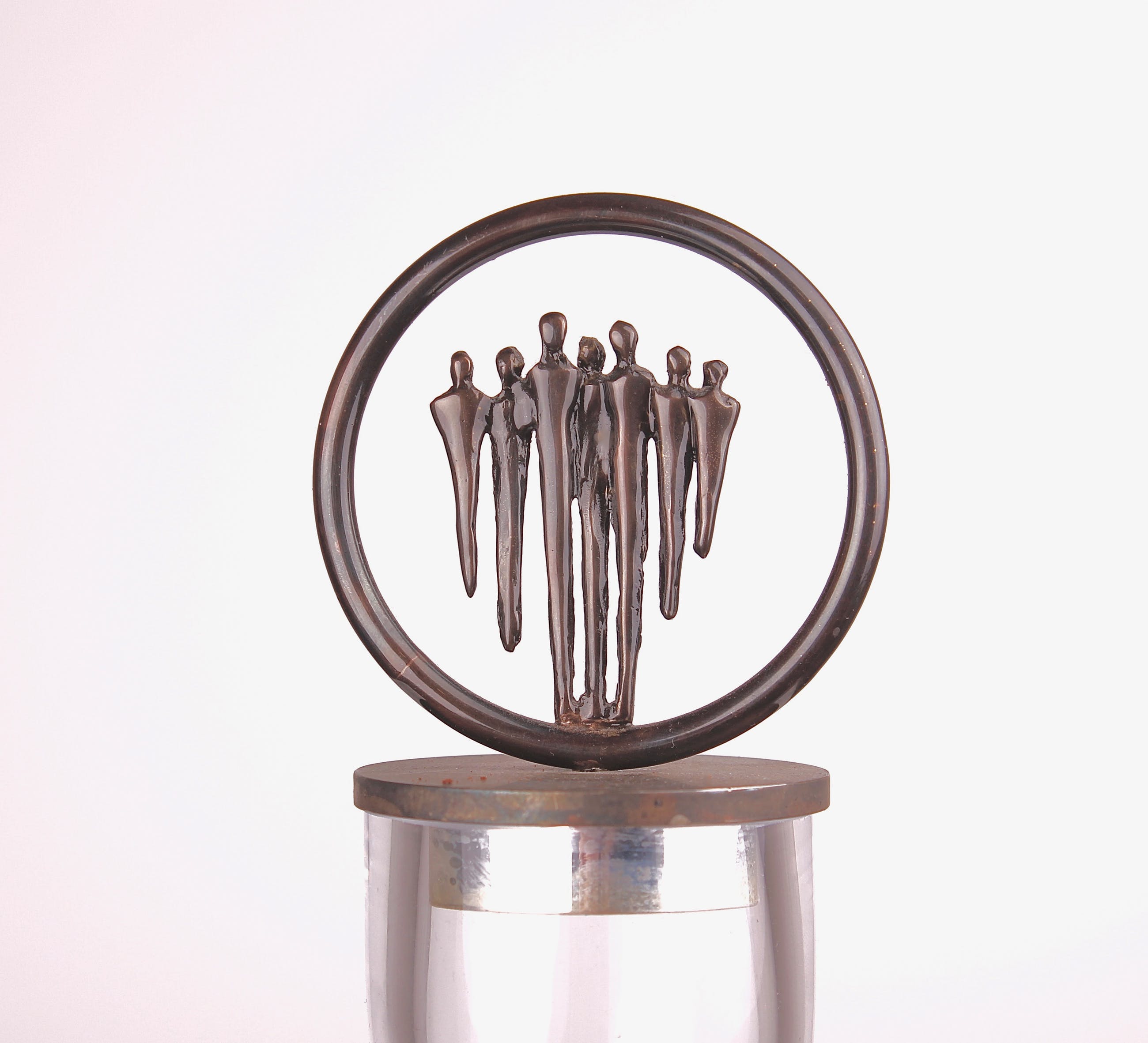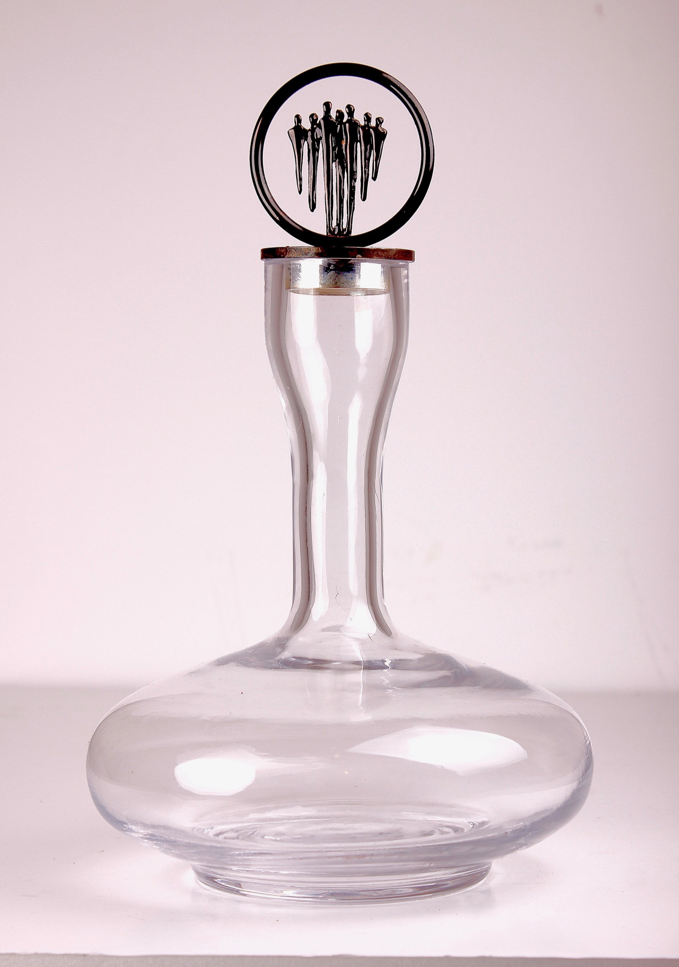 Nederland | Eind 20e eeuw Uitstekend vormgegeven Corry Ammerlaan - van Niekerk kristallen decanter met verbronsde stopper 'Samen' voor Artihove. Staat zeer decoratief in zowel een modern als een meer klassiek interieur.