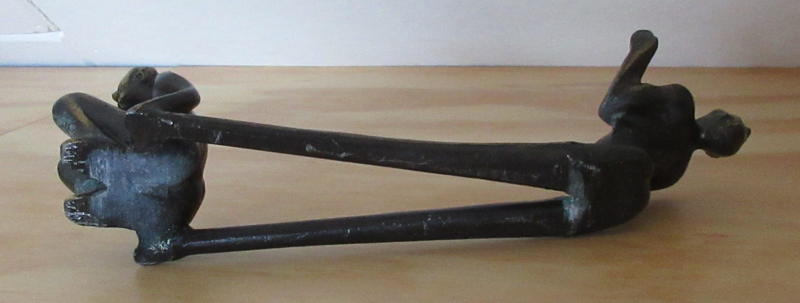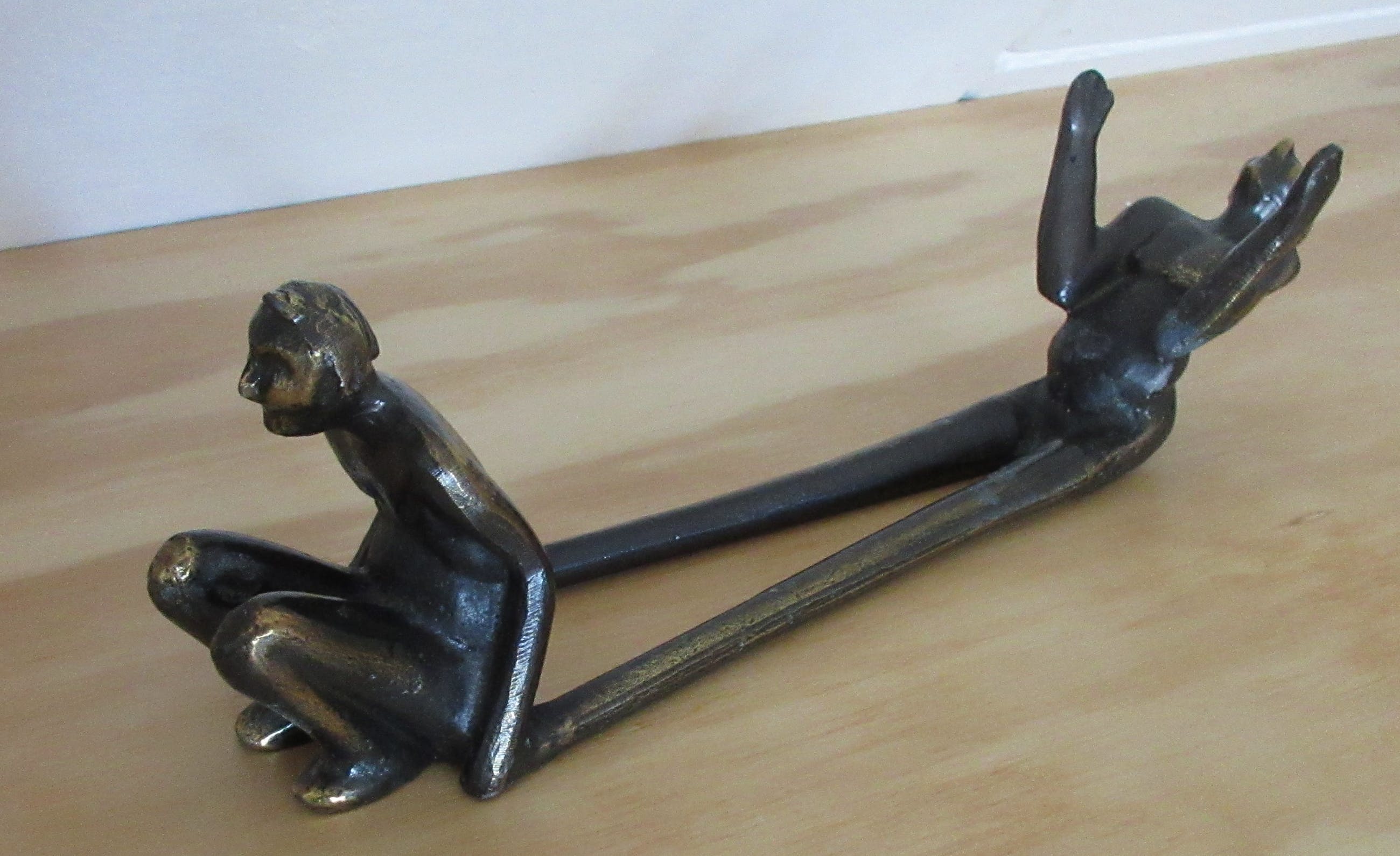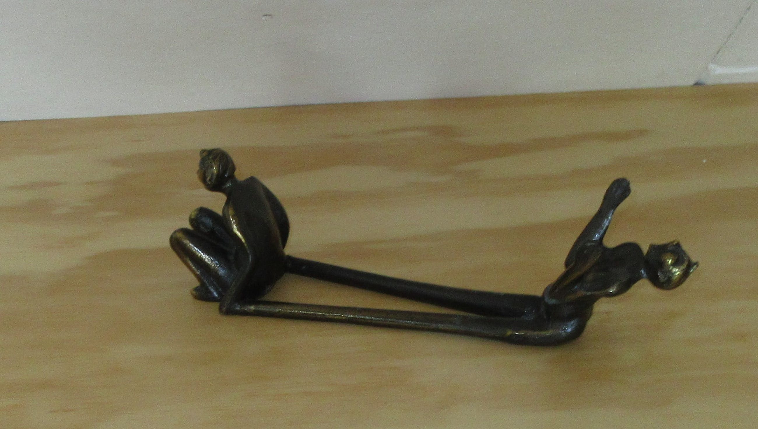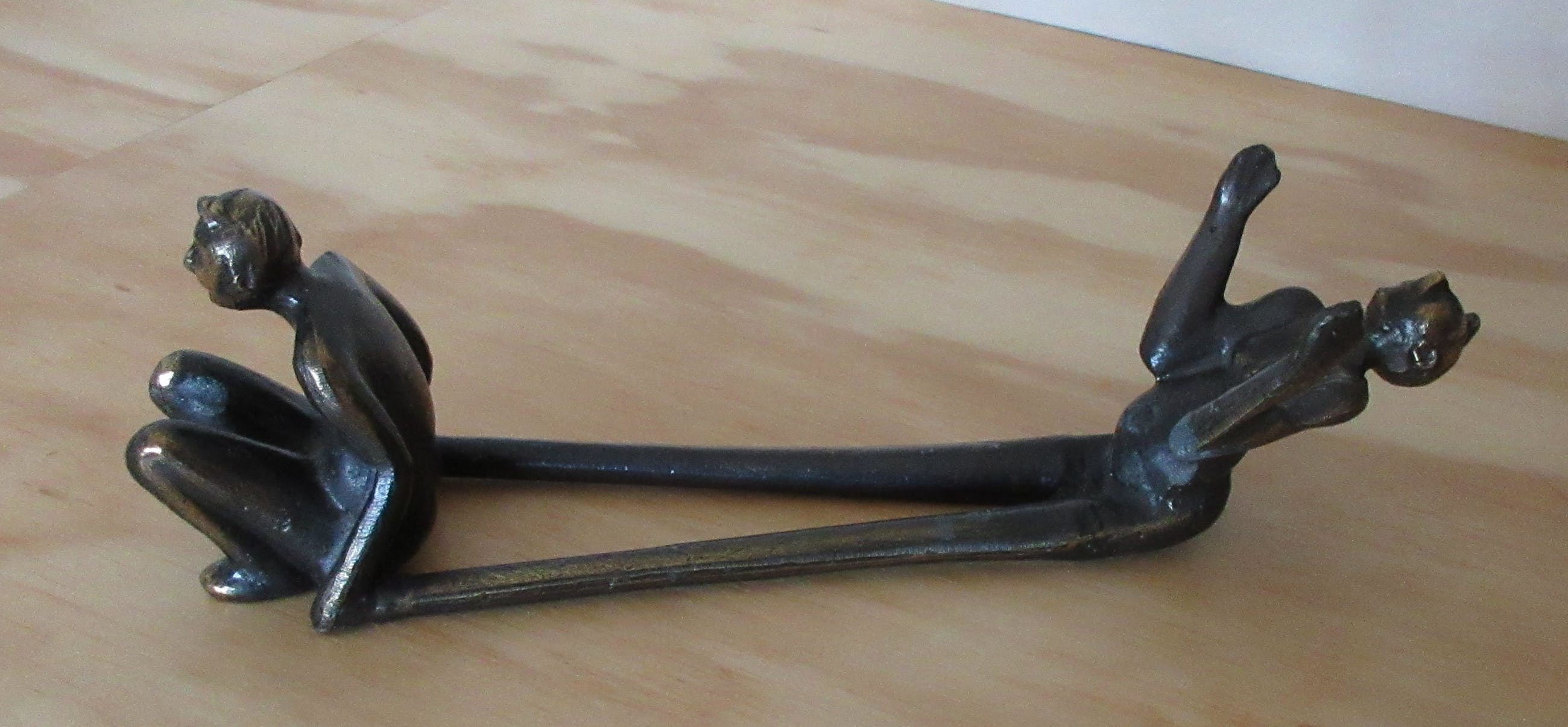 Zware verbronsde wijnfleshouder door Corry Ammerlaan-van Niekerk.