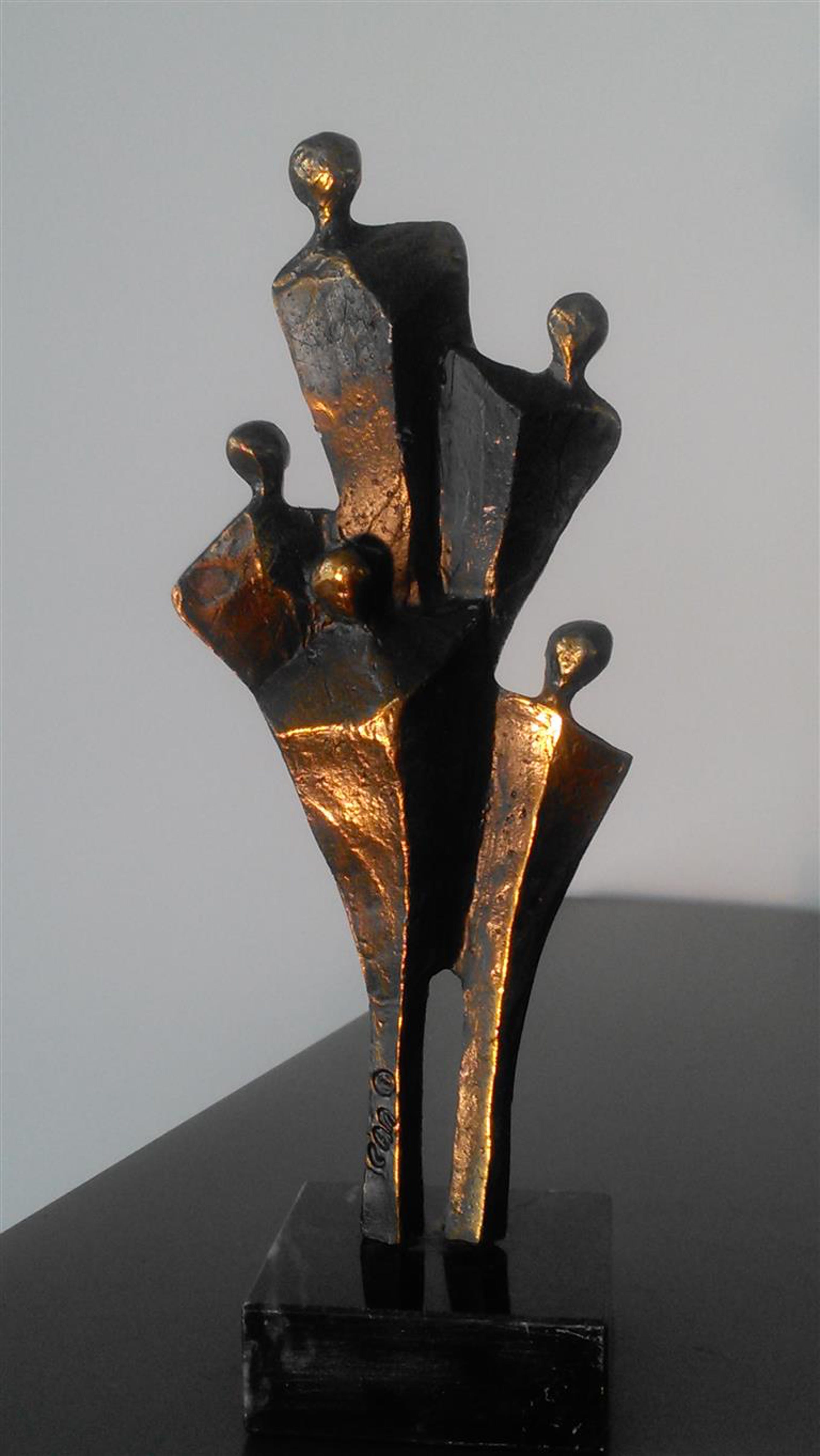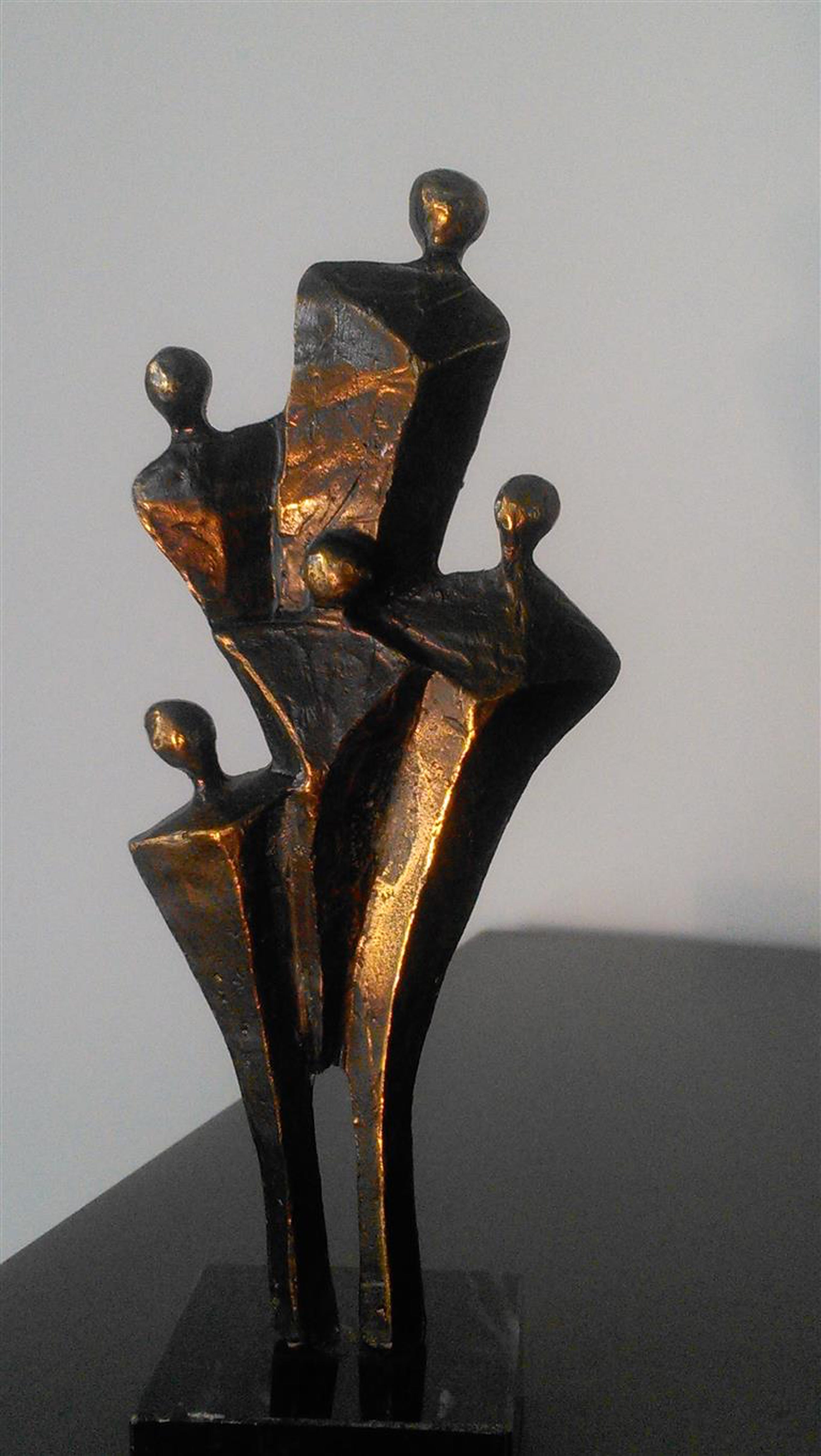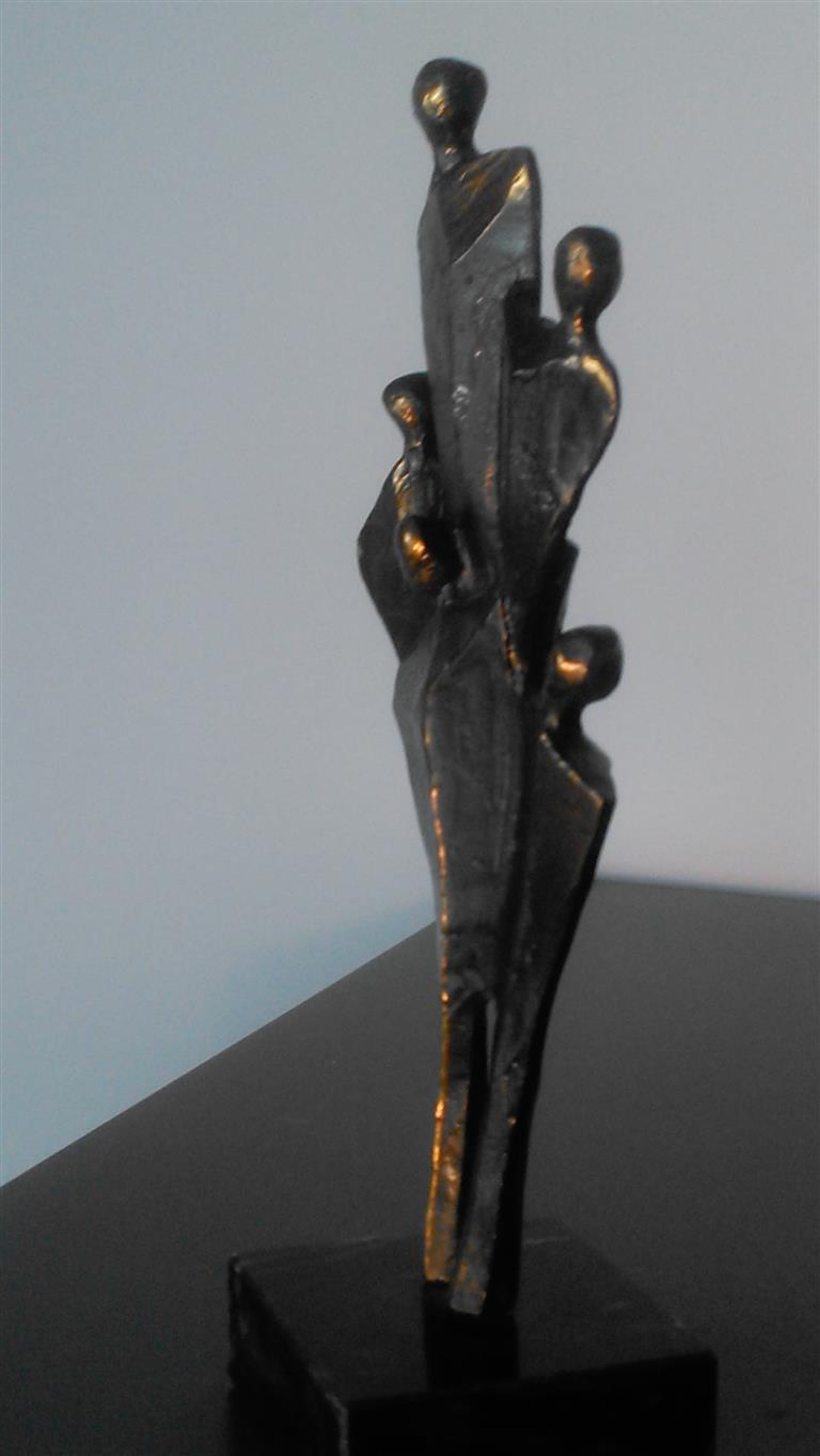 Zwaar bronzen beeldje op natuurstenen sokkel van 5,5 x 5,5 cm
