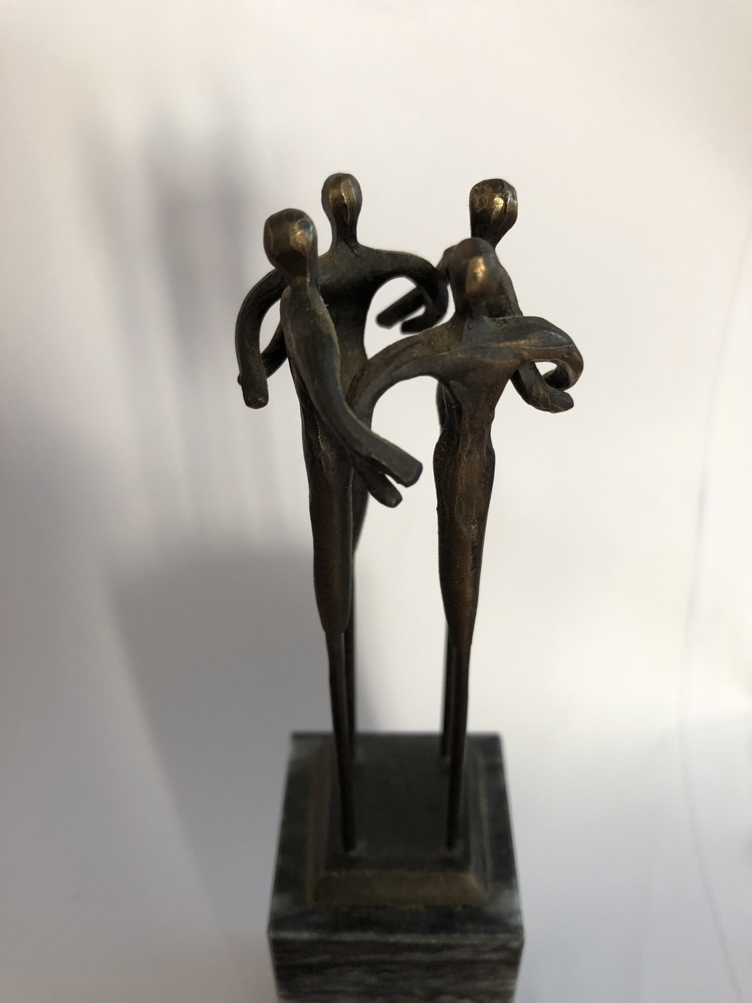 Prachtig minimalistisch beeldje wat een groep vrienden figuren uitbeeld in een innige cirkel omarming uit een haast vervlogen tijd Ivm corona , daardoor super actueel Het roept verlangens op naar vervlogen tijden