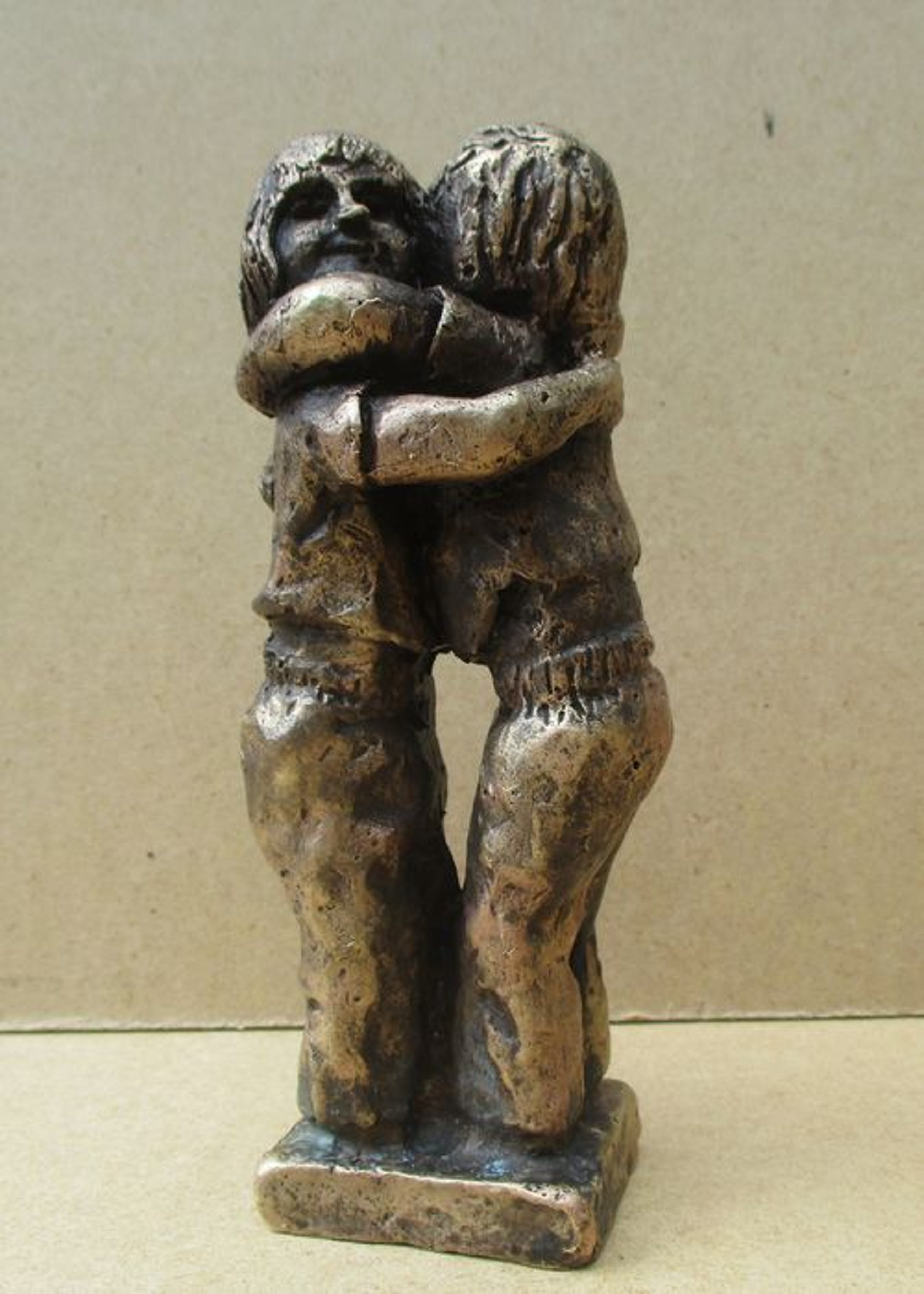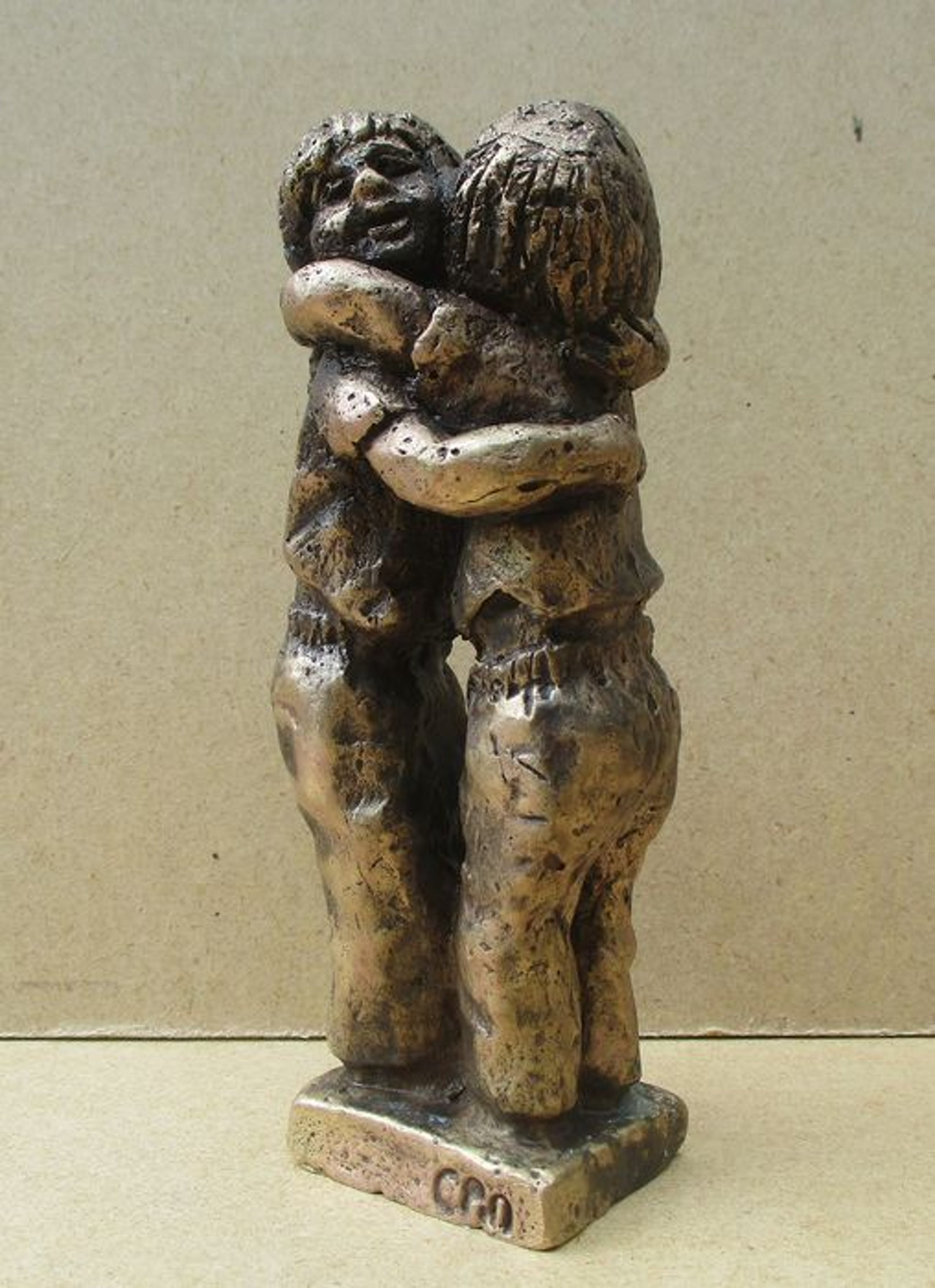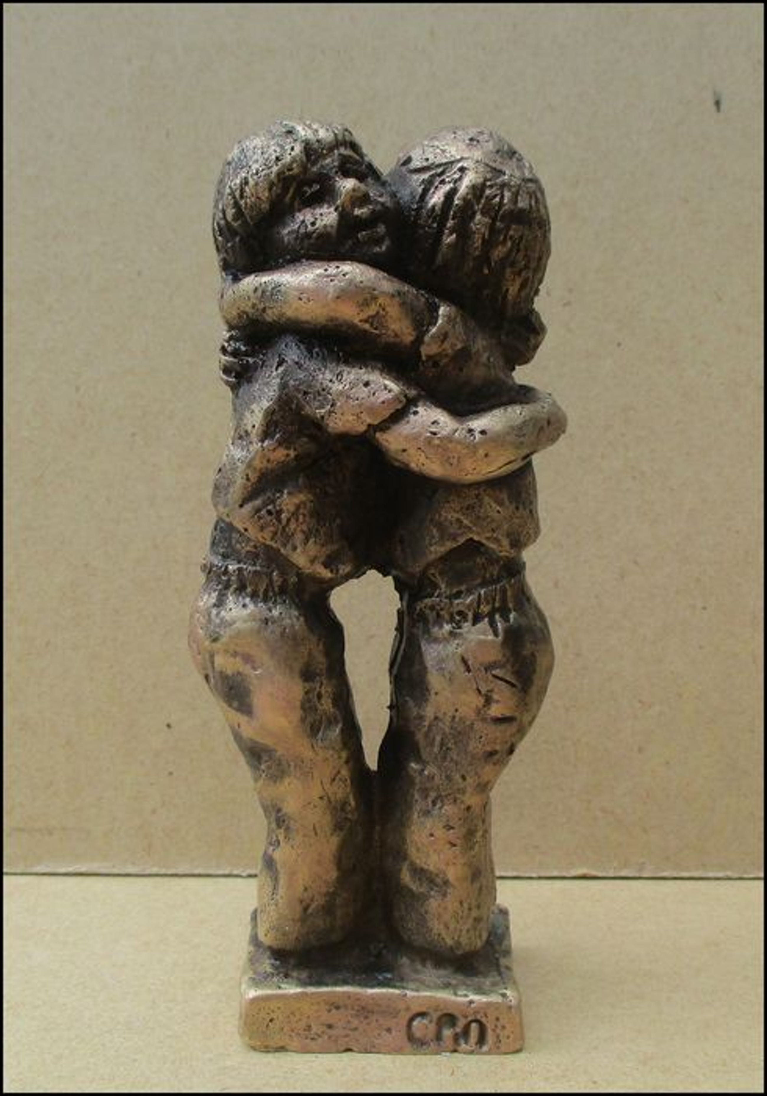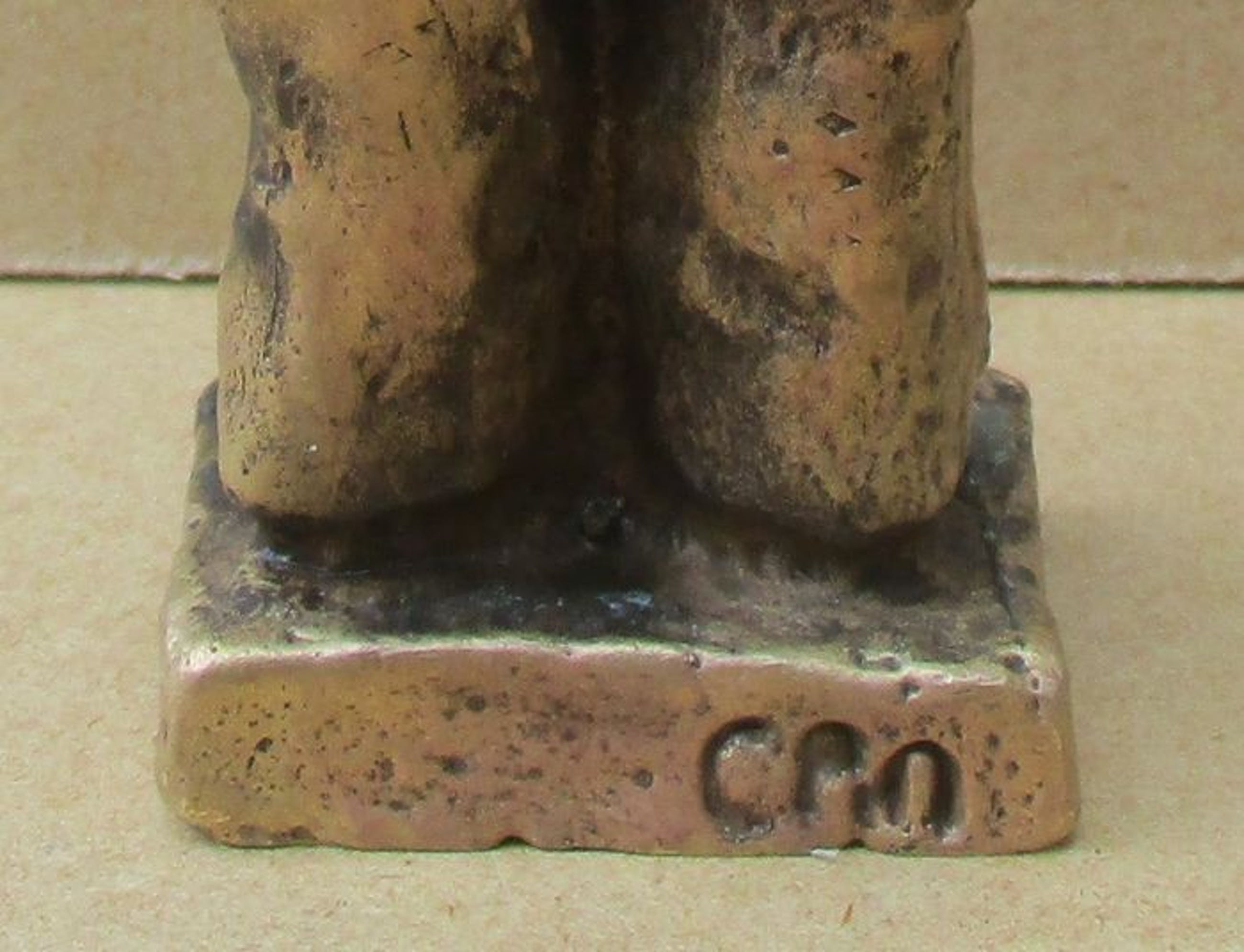 Beeldjes van Corry Ammerlaan bestaan meestal uit een bronskleurig gepatineerde tinlegering. Dit beeldje is gegarandeerd (massief) brons