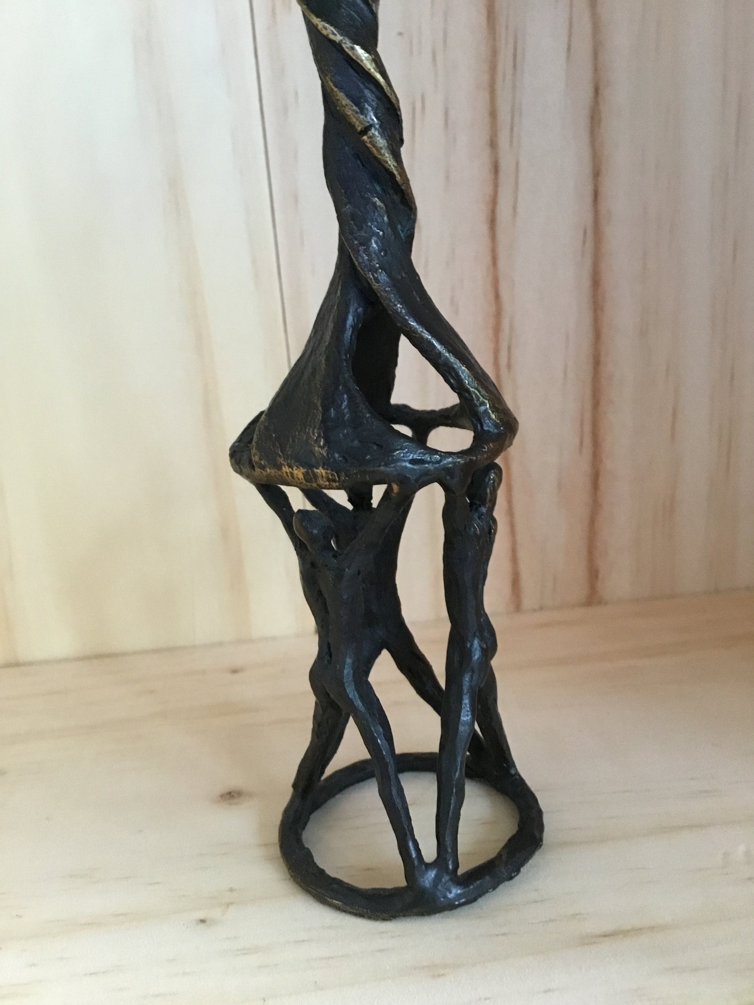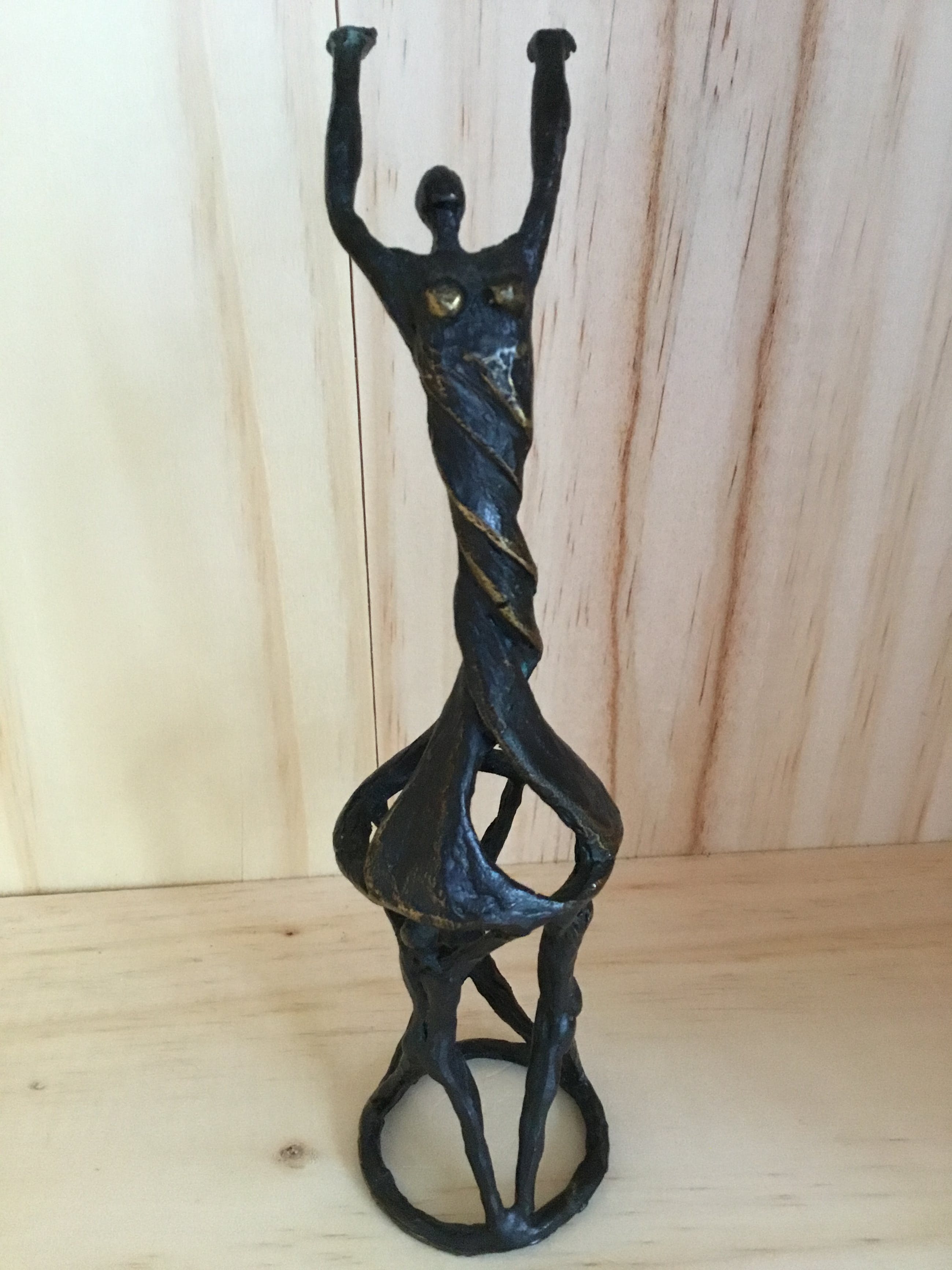 Prachtig beeldje met veel expressie. Vrouw wordt door 3 mannen op handen gedragen.
