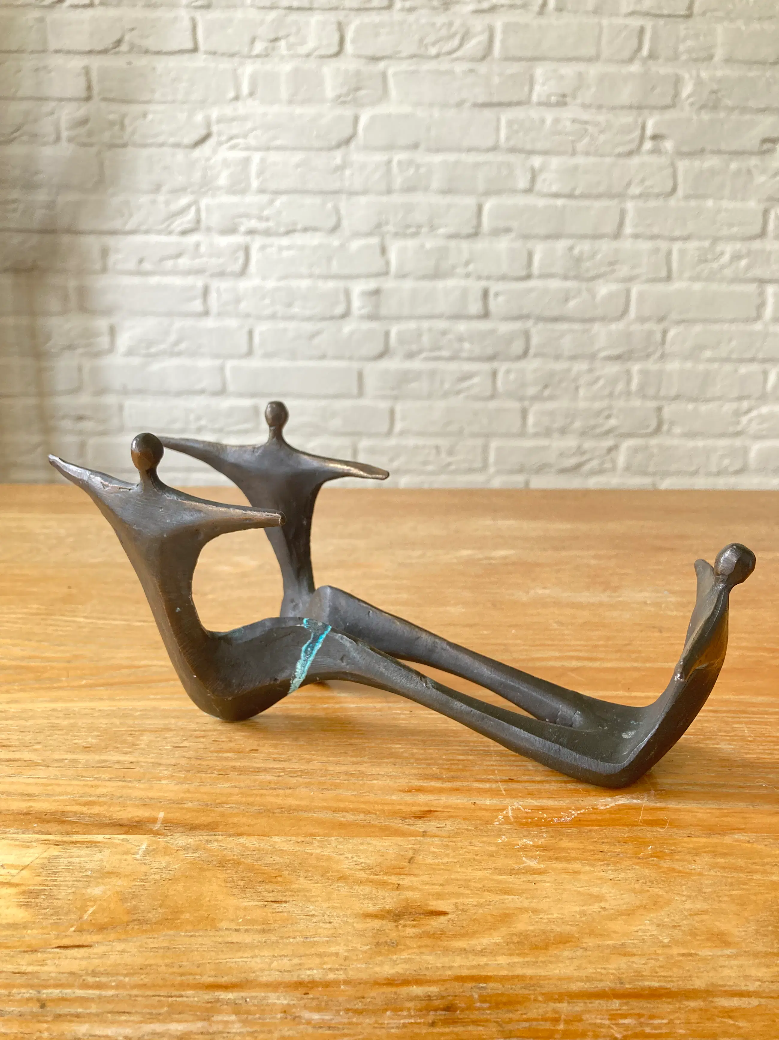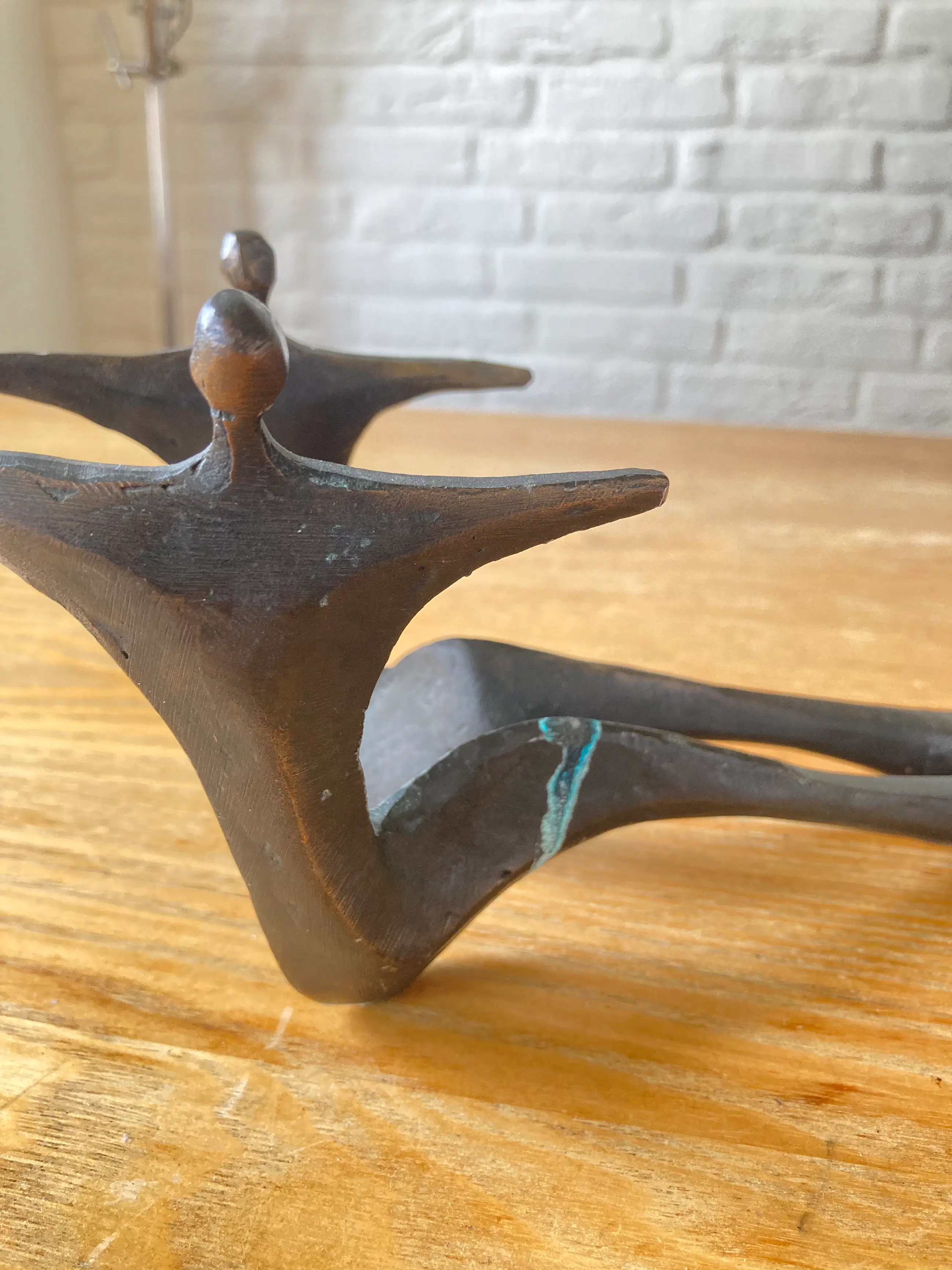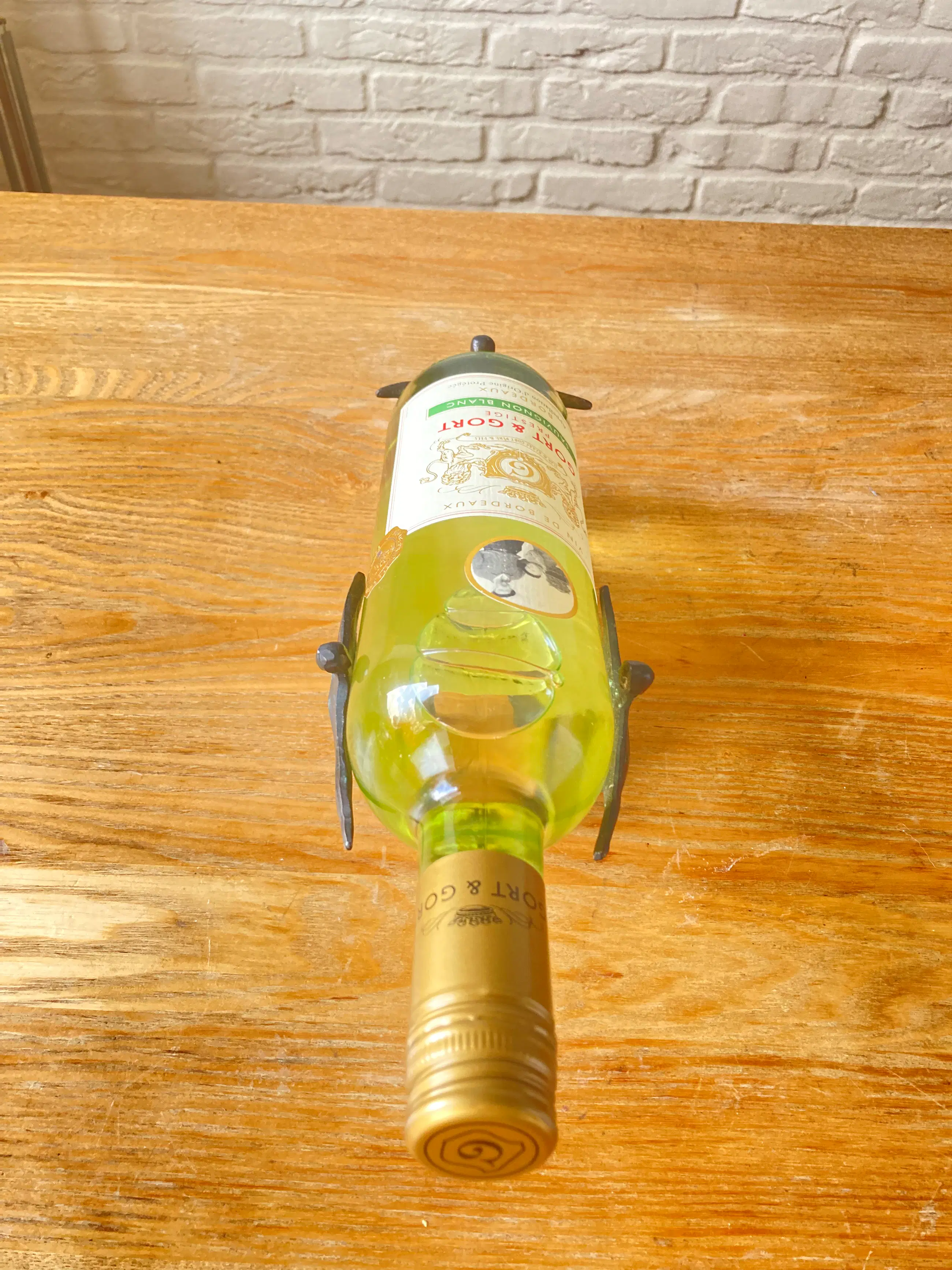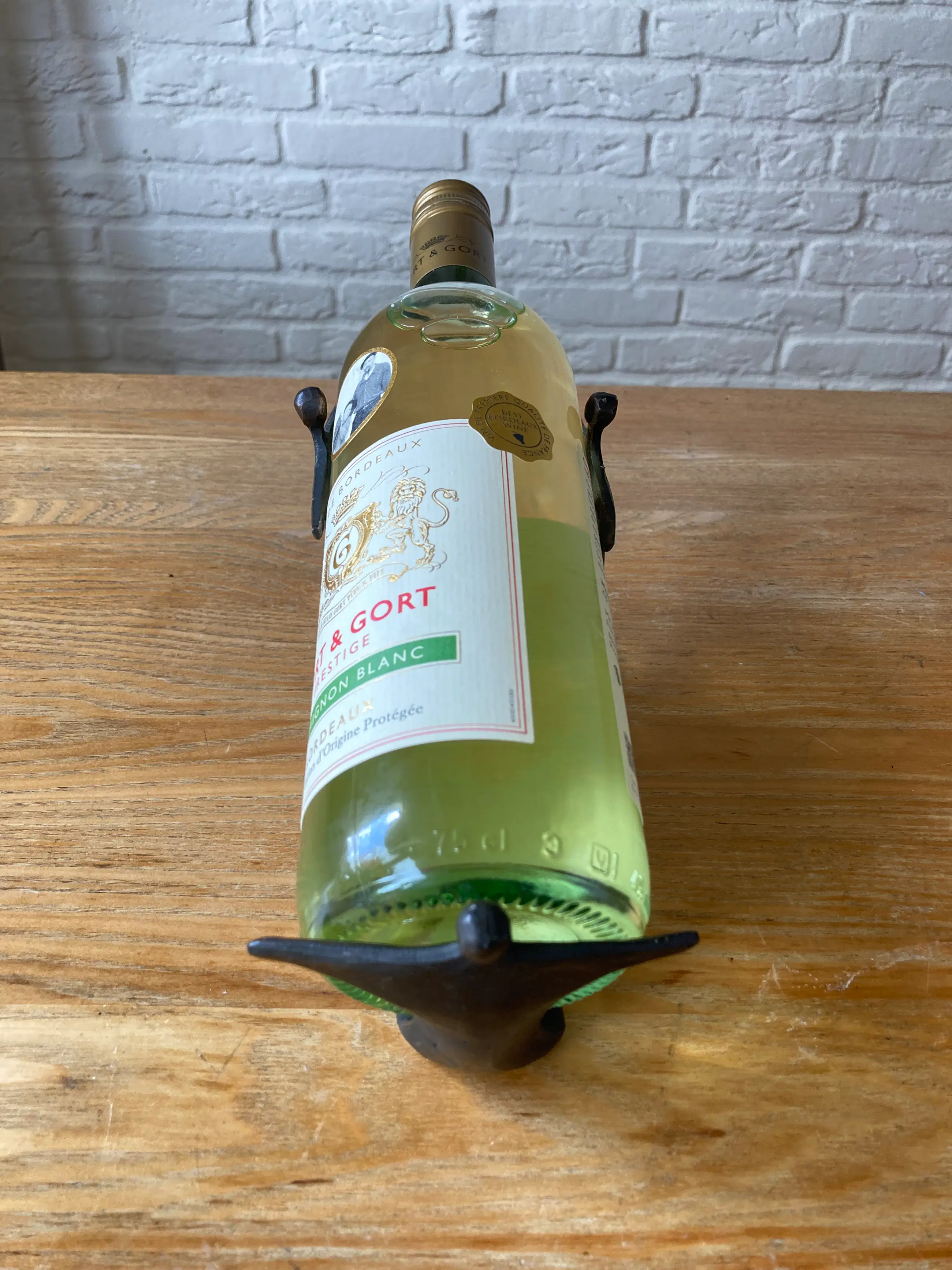 Massief bronzen beeld/wijnfleshouder Kunstenares Corry Ammerlaan van Niekerk 2e Helft 20e eeuw Exclusief fles wijn Afmeting: 22,5 x 9 x 10 cm Conditie zeer goed