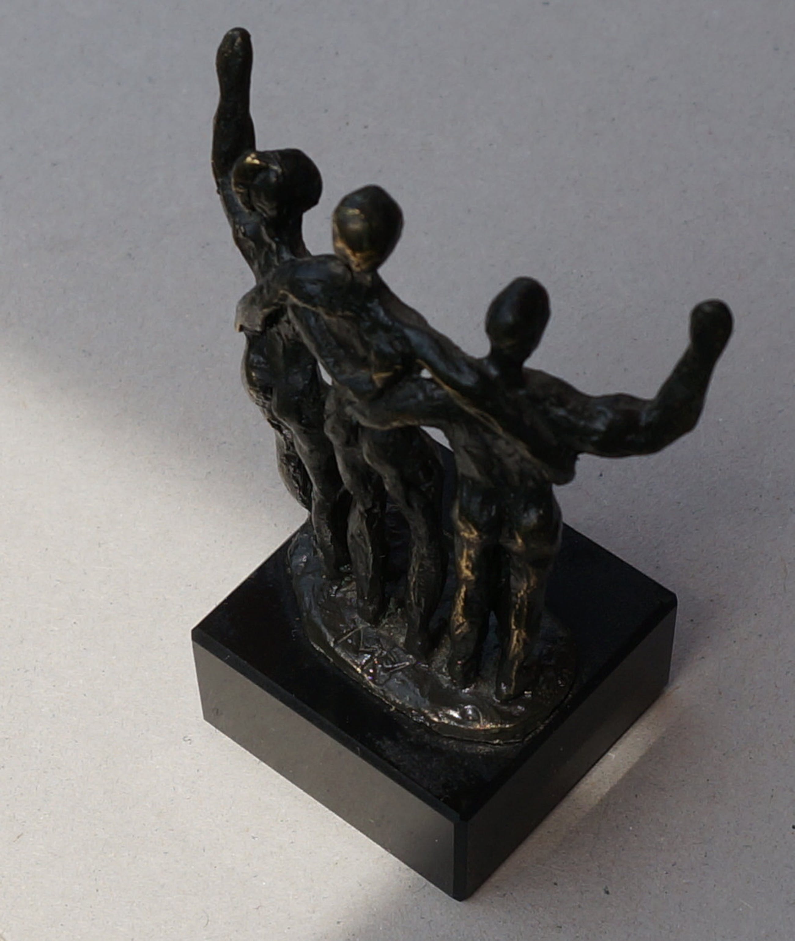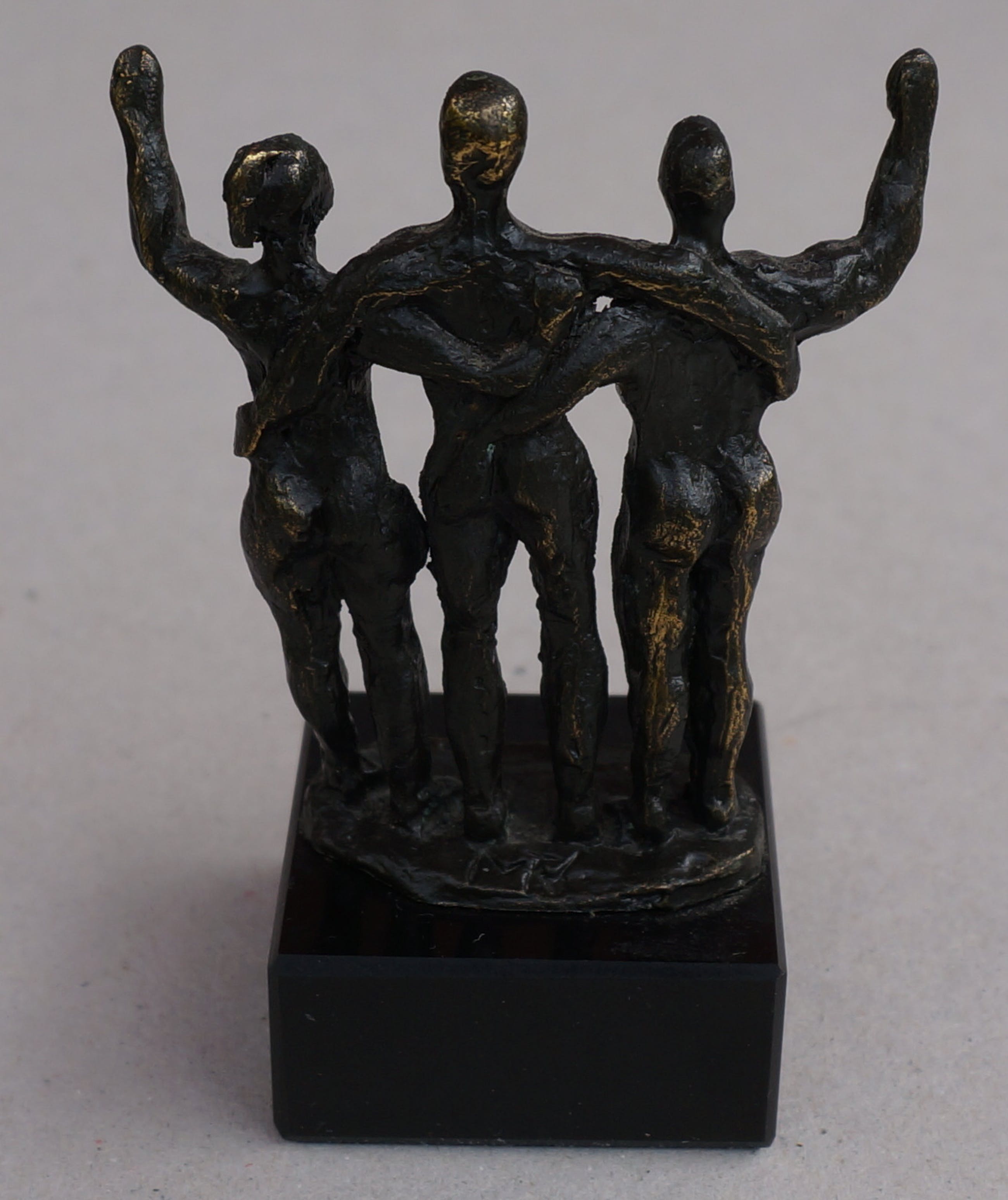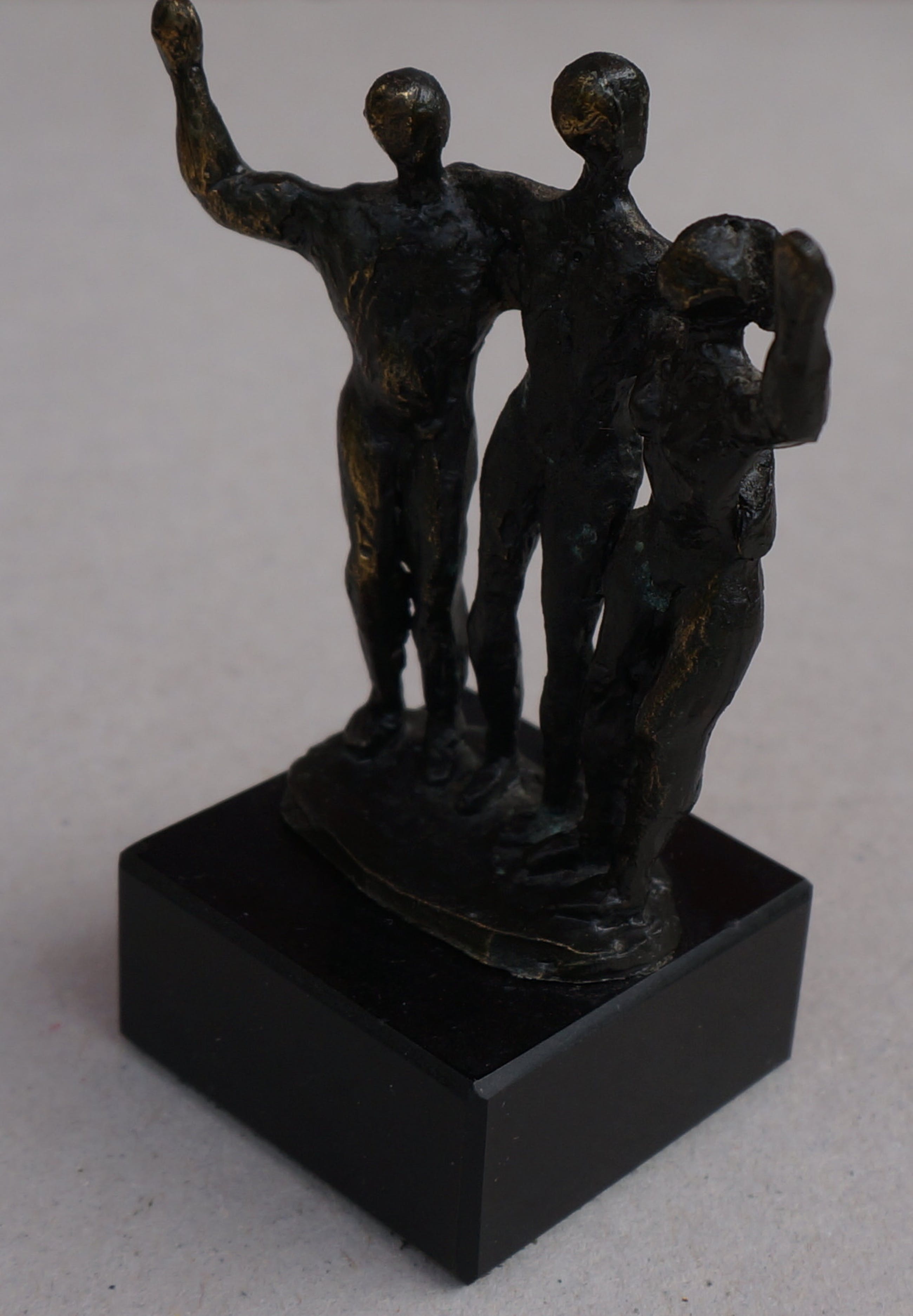 Twee mannen en een vrouw;klein beeldje maar monumentaal van karakter