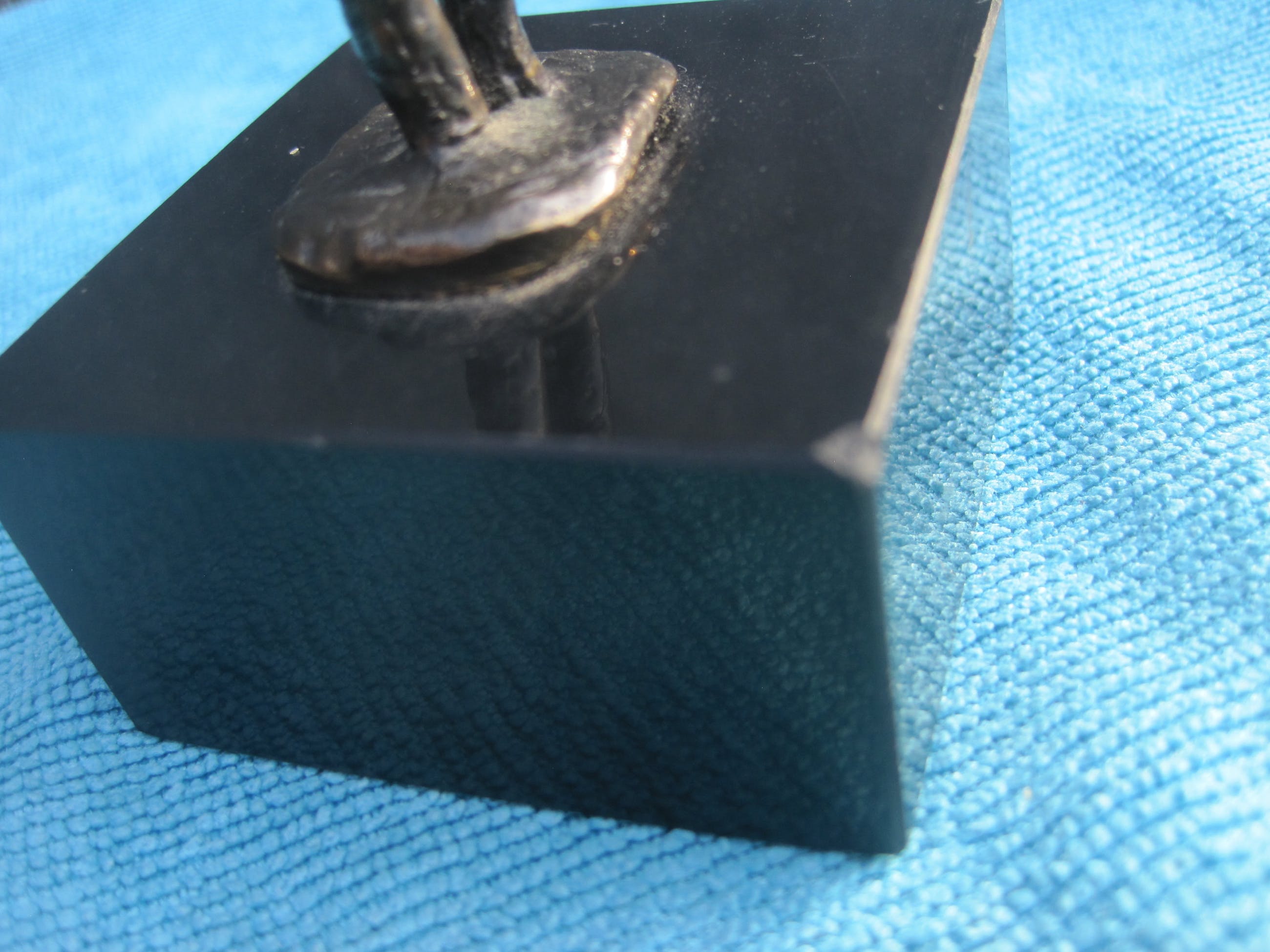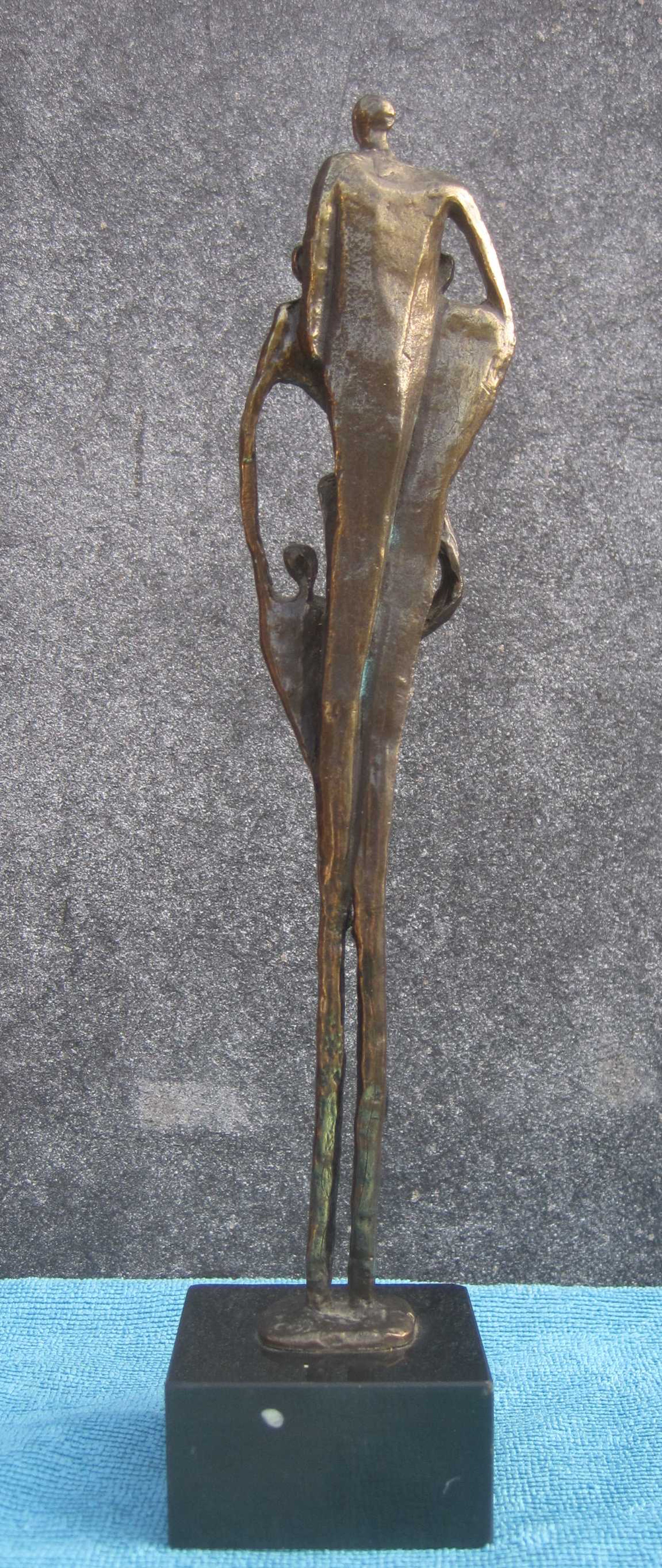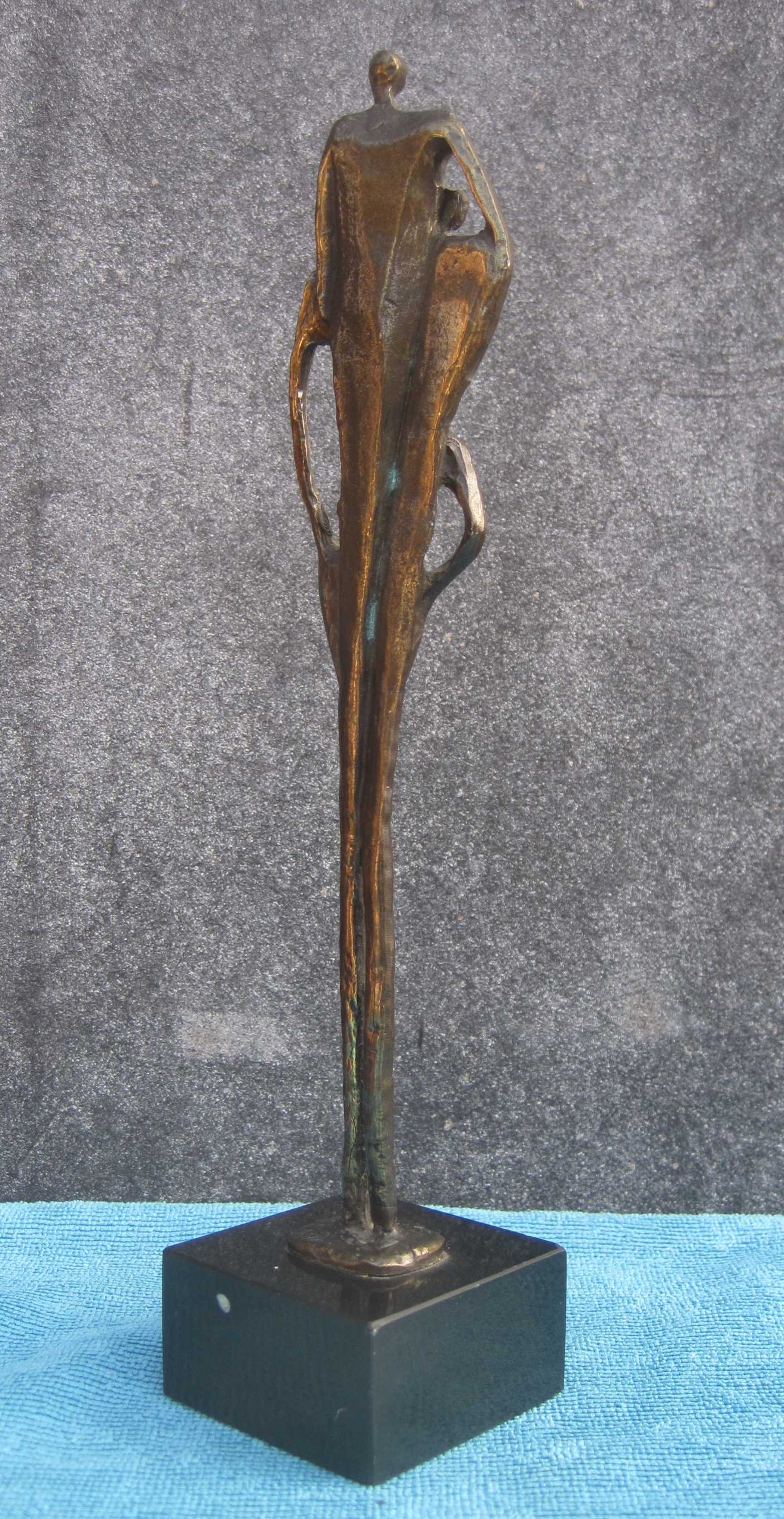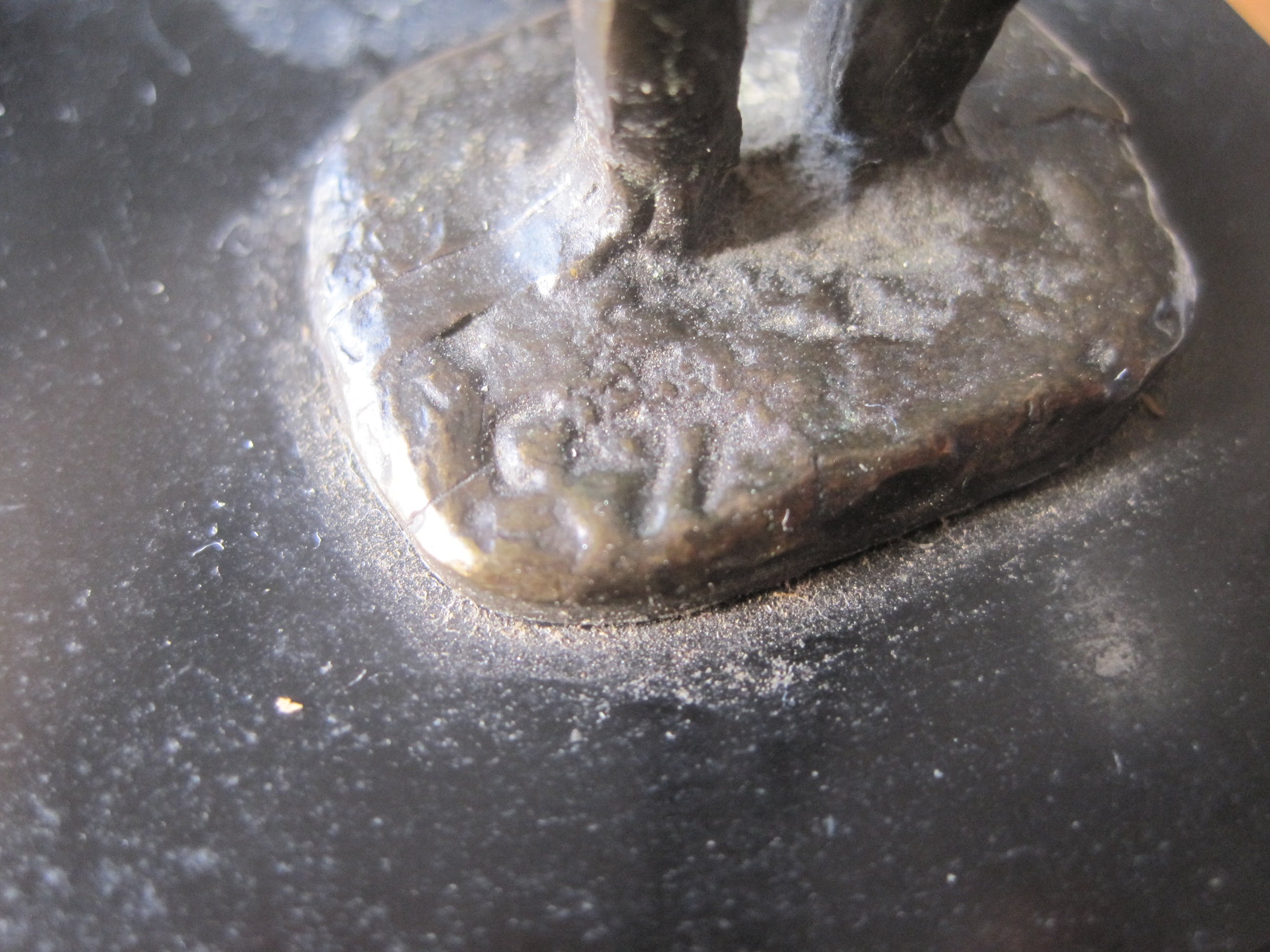 Verbronsde sculptuur met monogram op marmeren sokkel. De totale hoogte inclusief sokkel is 25 cm. De marmeren sokkel heeft lichte gebruikssporen.