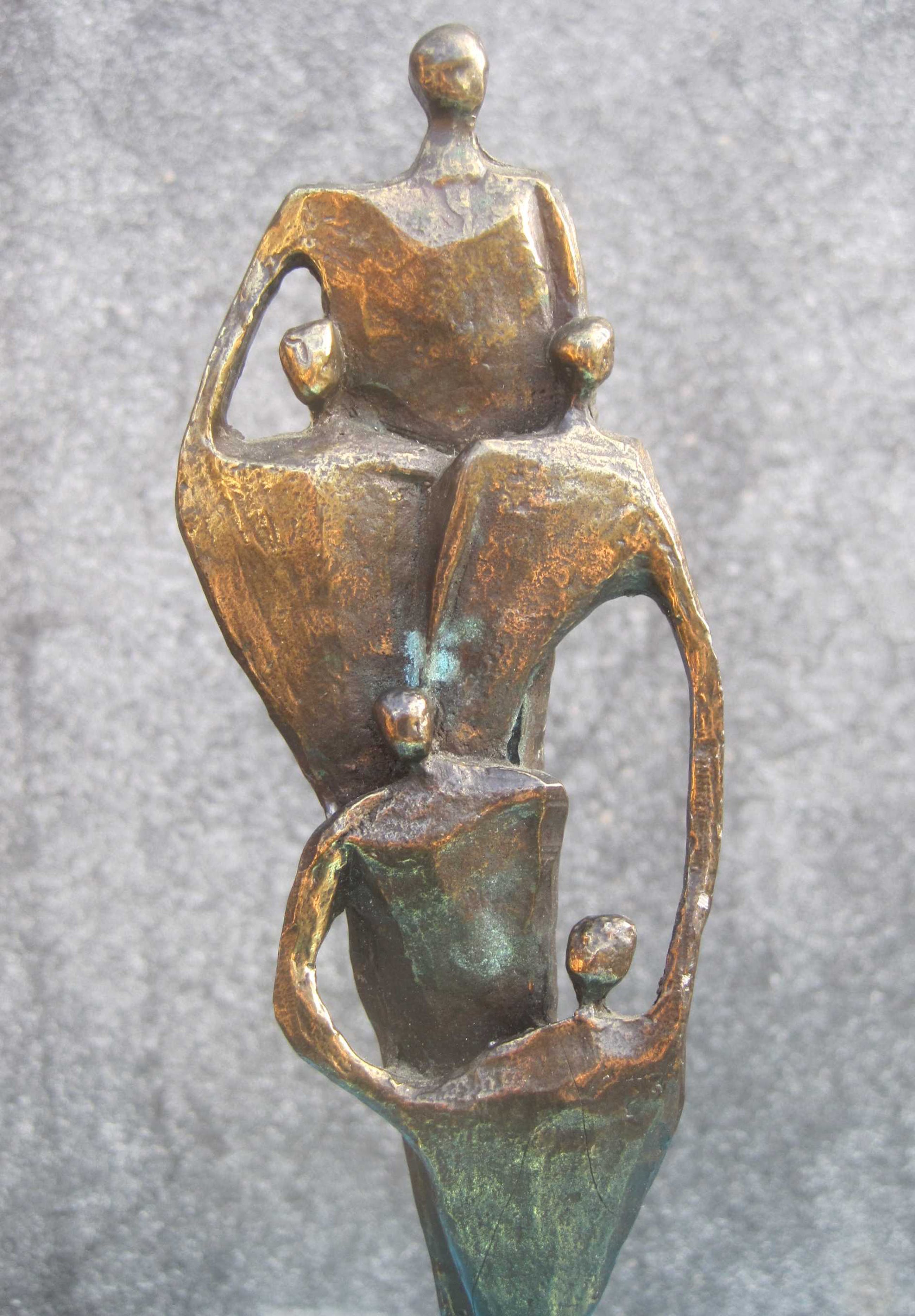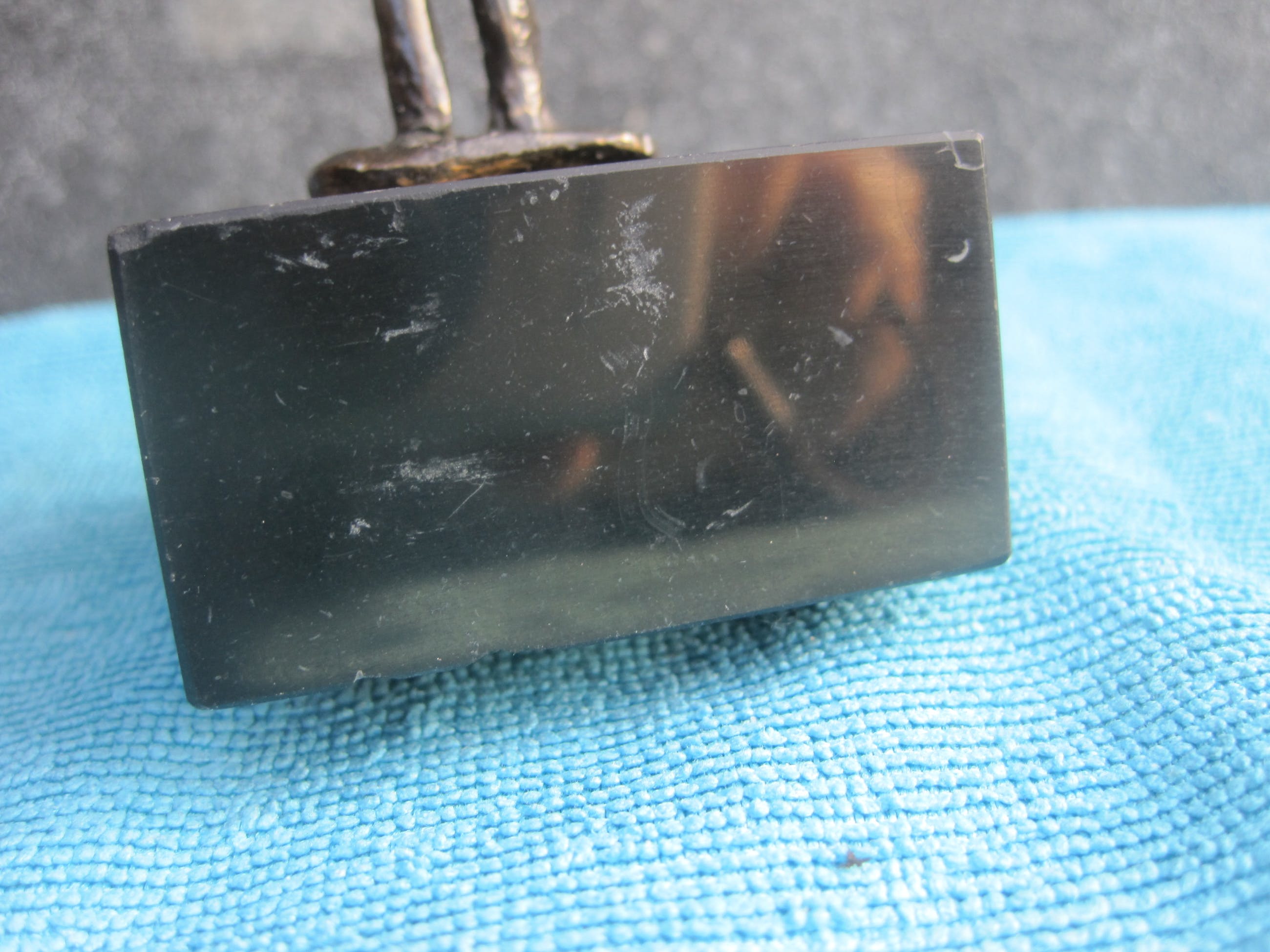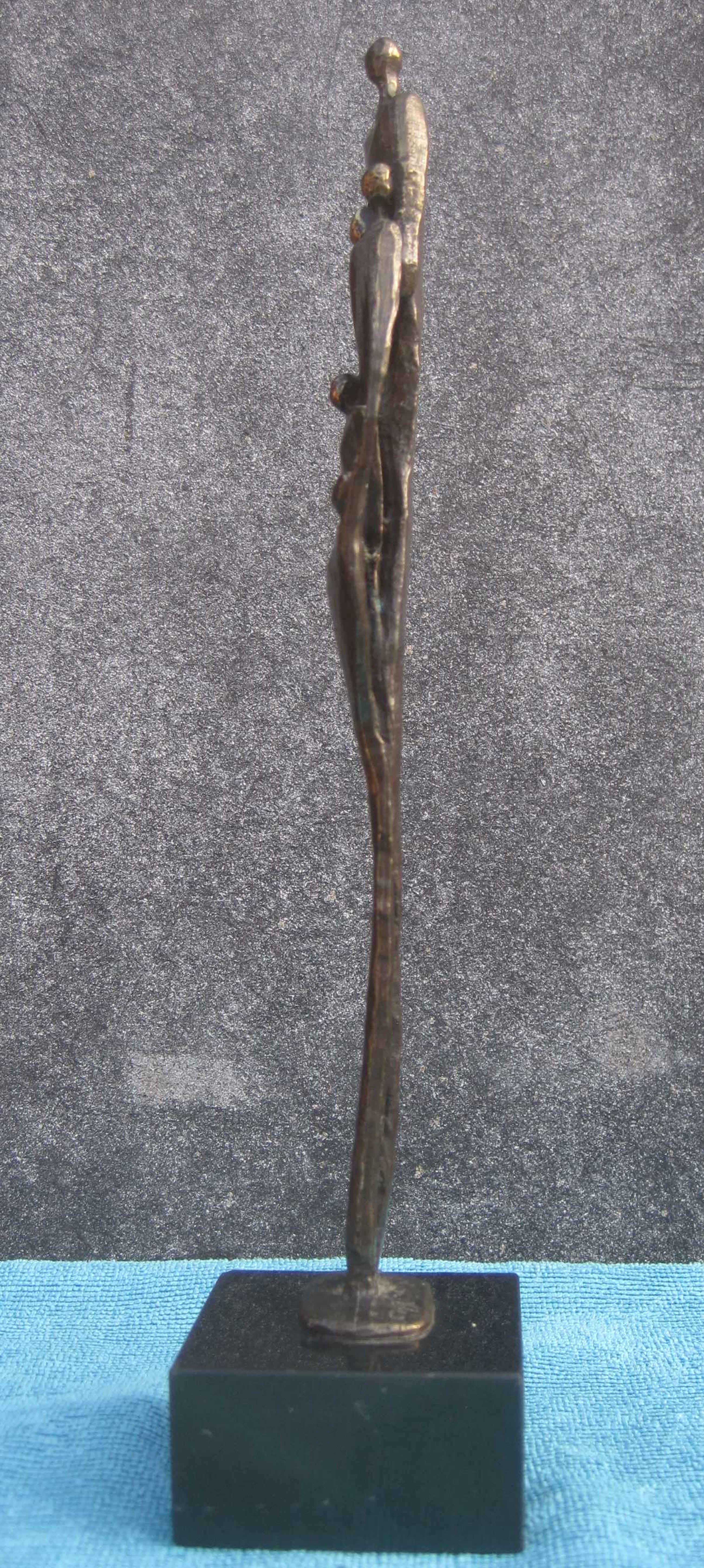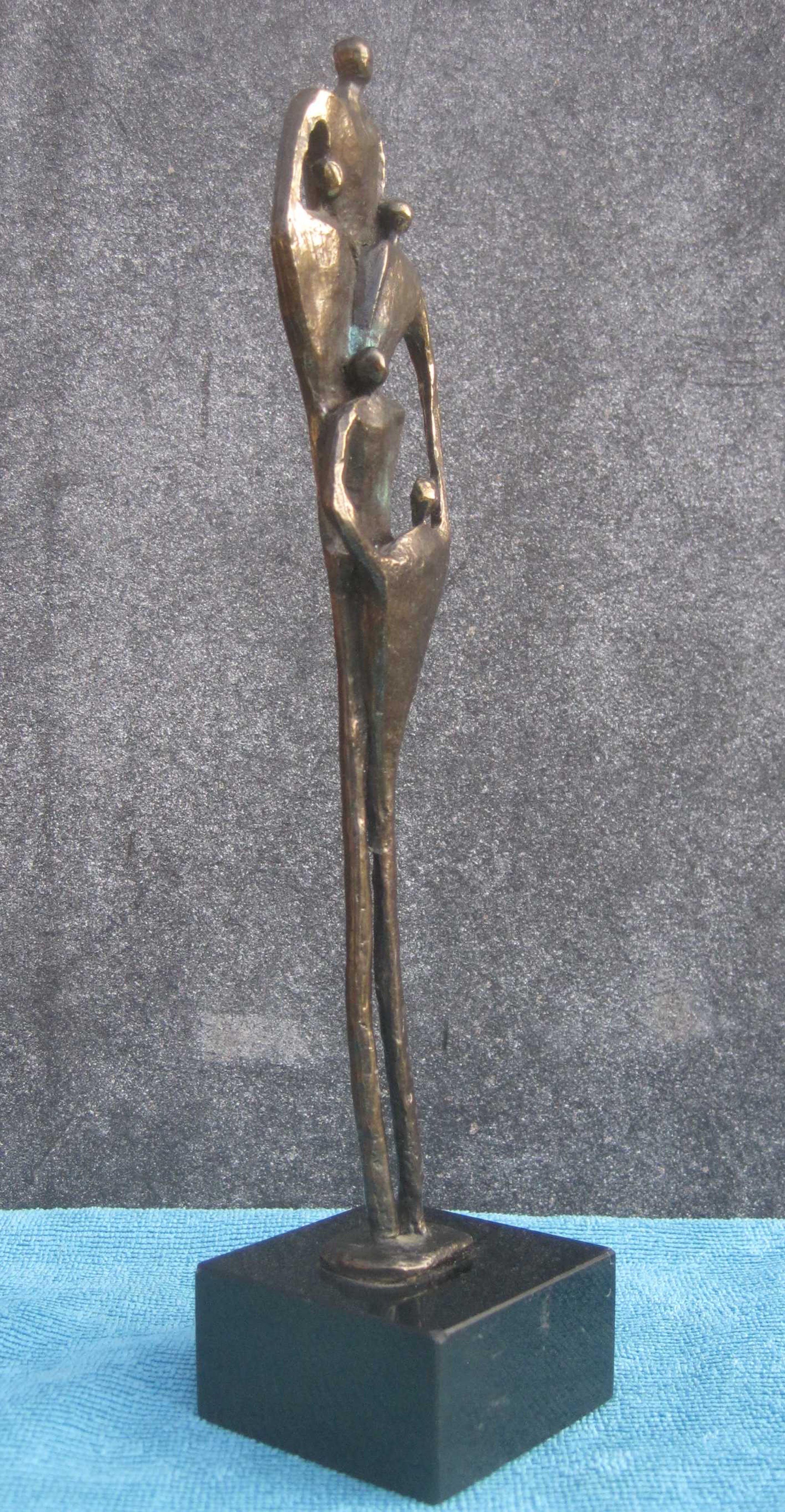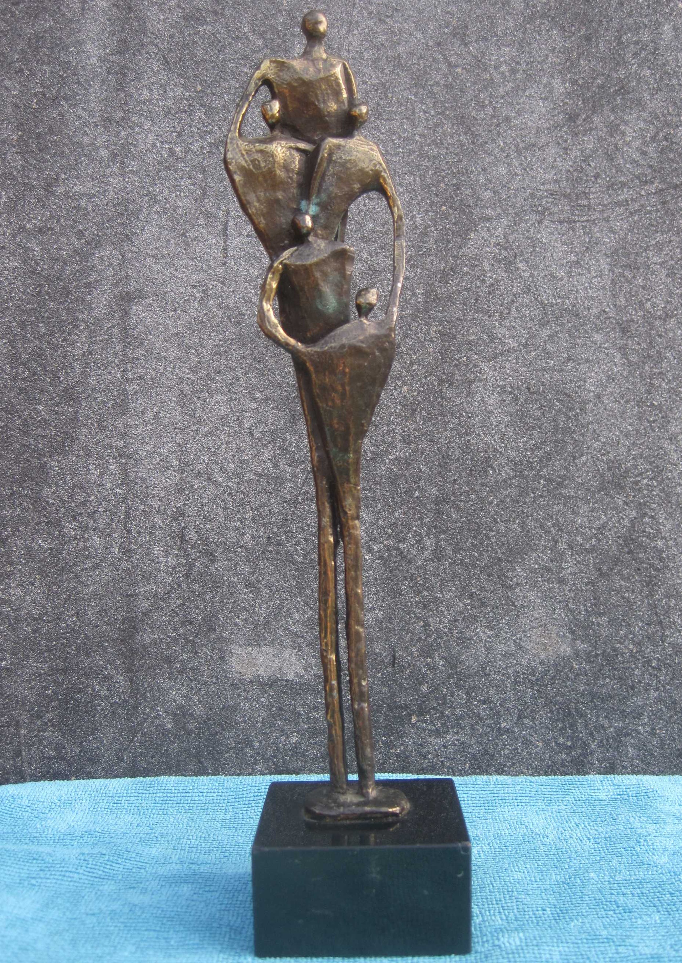 Verbronsde sculptuur met monogram op marmeren sokkel. De totale hoogte inclusief sokkel is 25 cm. De marmeren sokkel heeft lichte gebruikssporen.