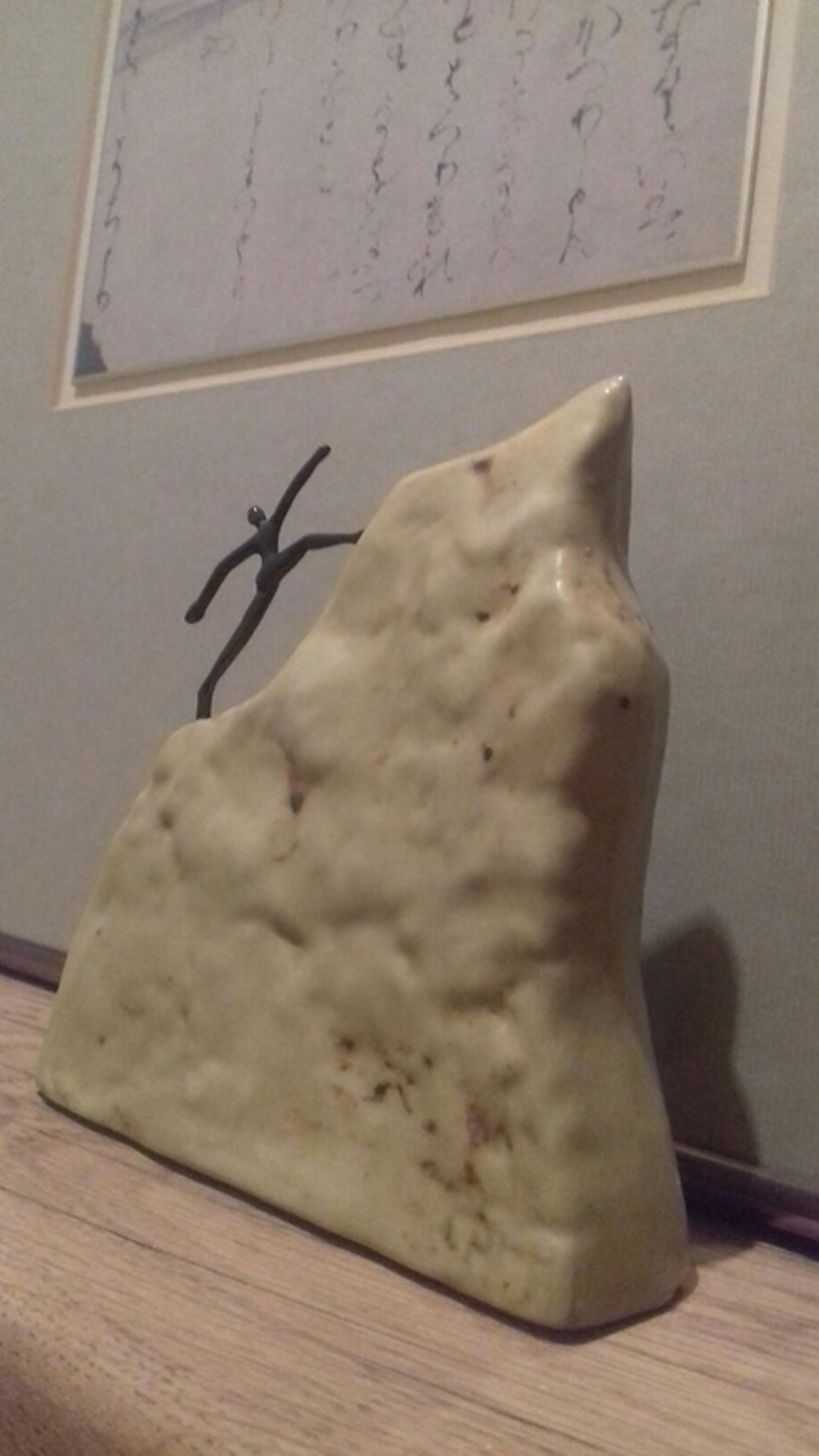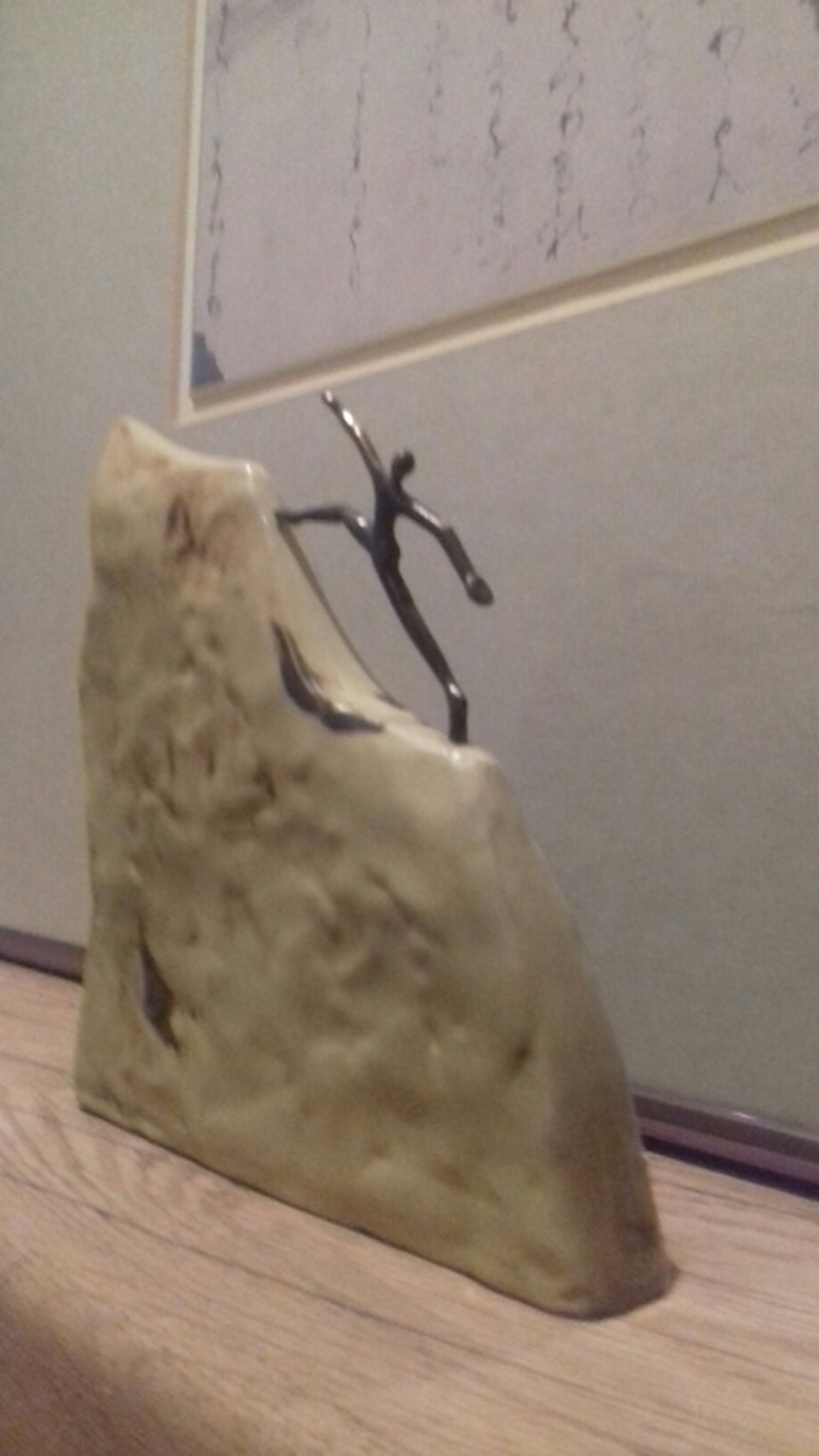 Unieke sculptuur uitgevoerd in Brons en Keramiek **NAAR DE TOP ** Komt u zelden tegen!